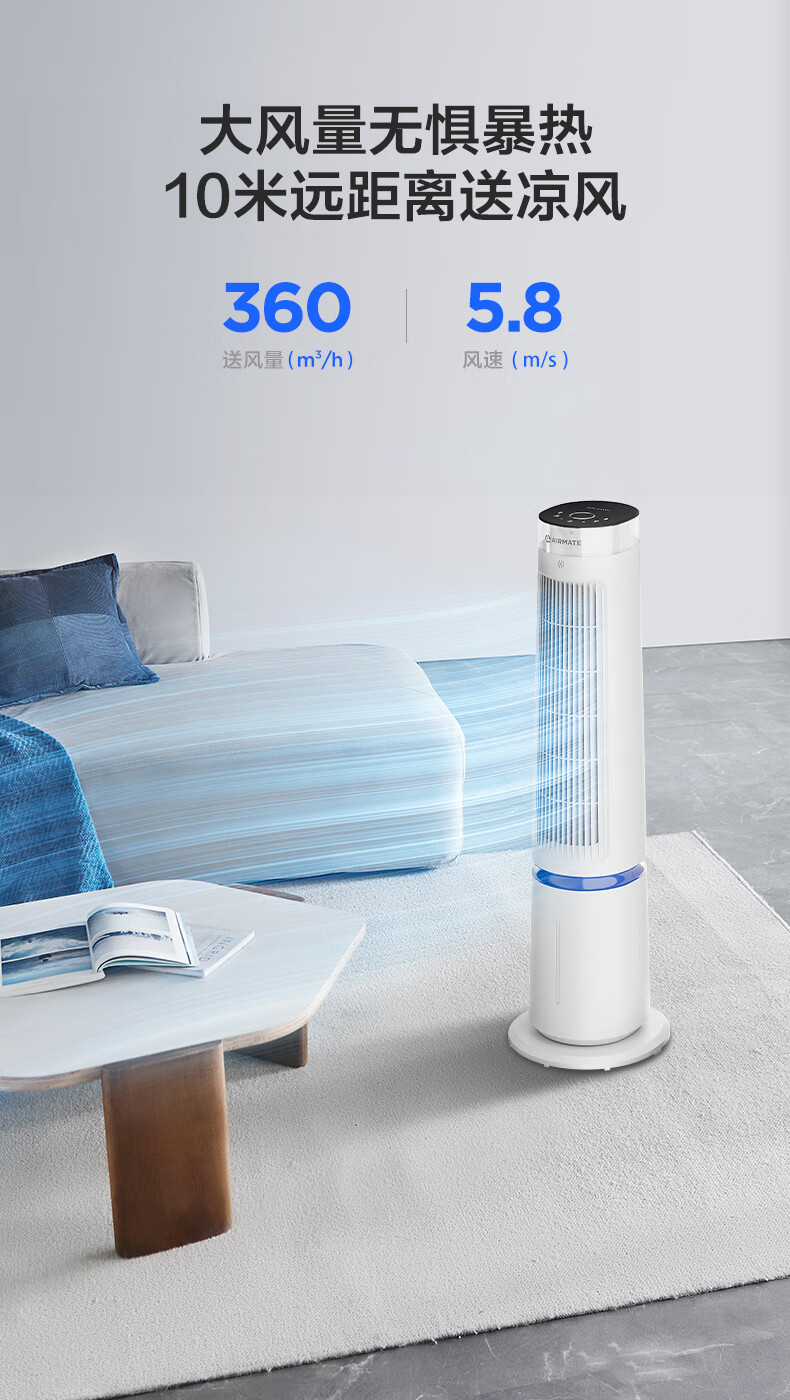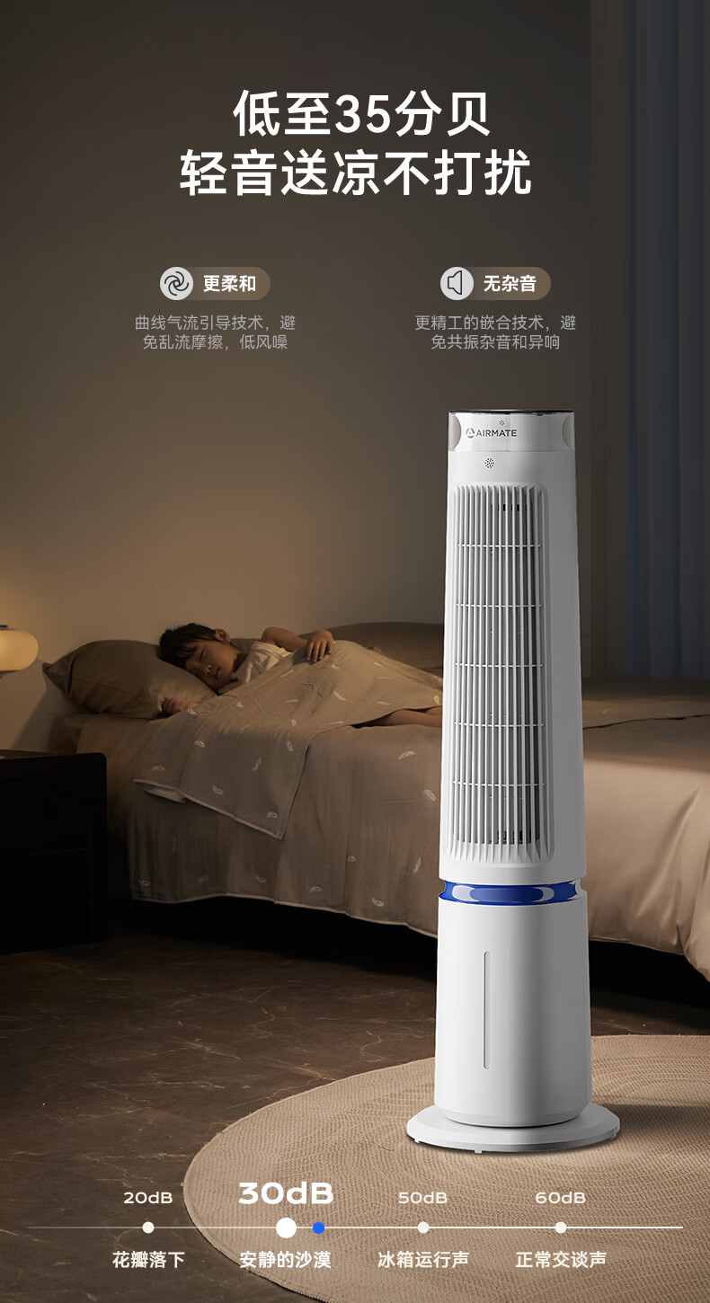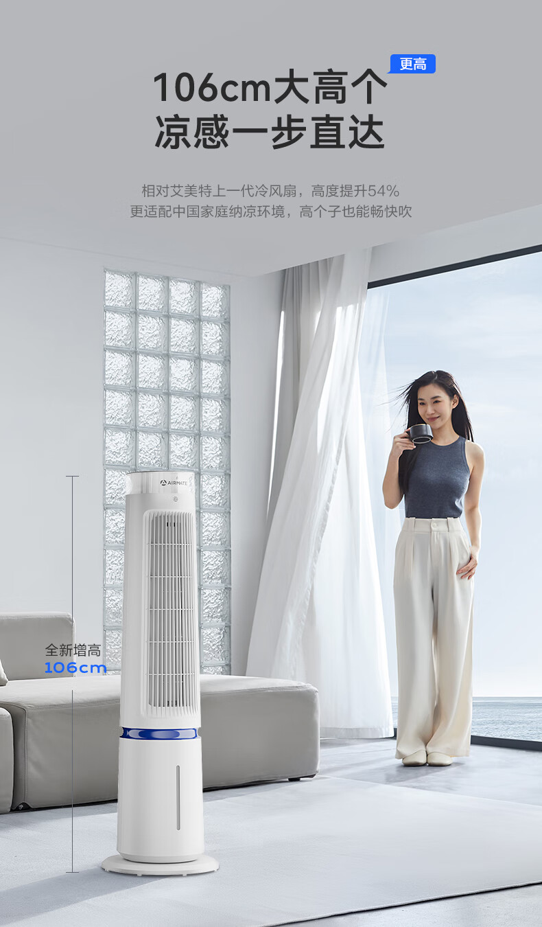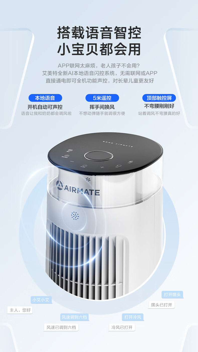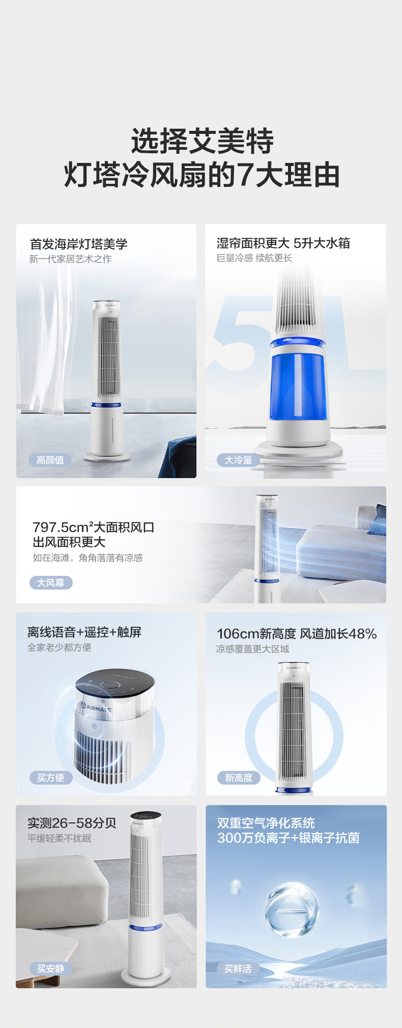 艾美特(AIRMATE)【百万负离子】灯塔冷风扇空调扇家用语音智能水冷塔扇柔风制冷电风扇落地扇加湿定时小空调 SRI39