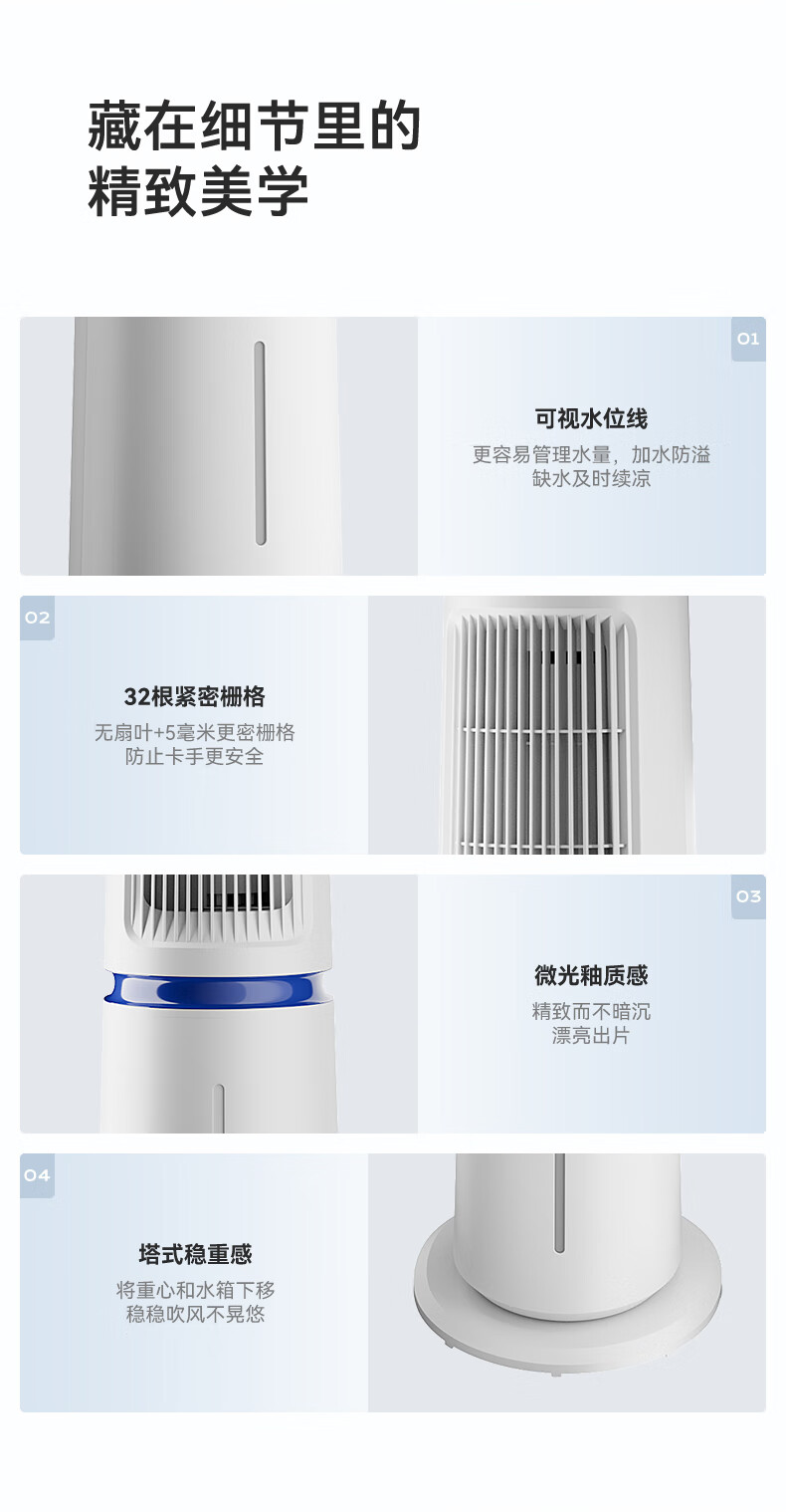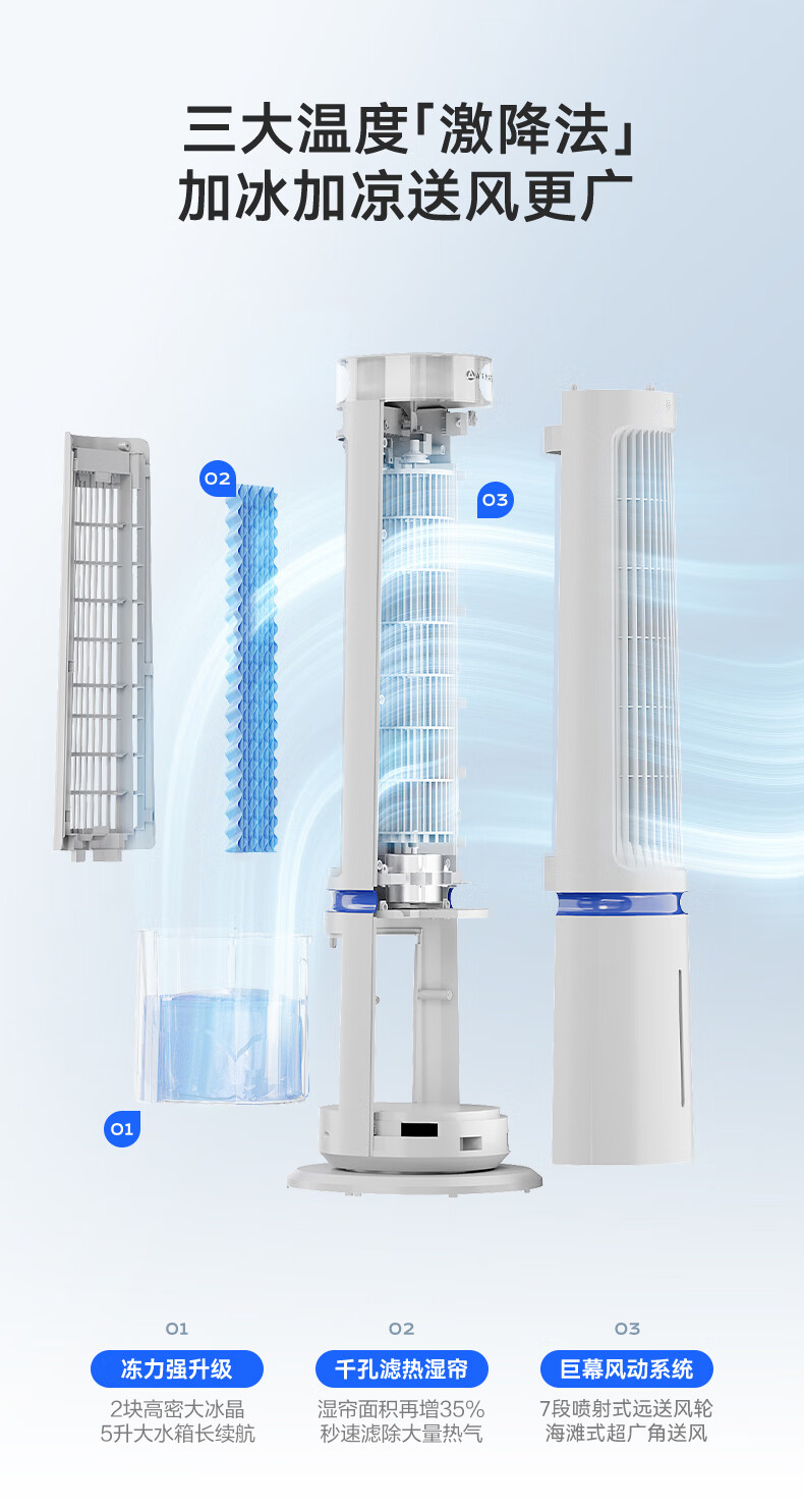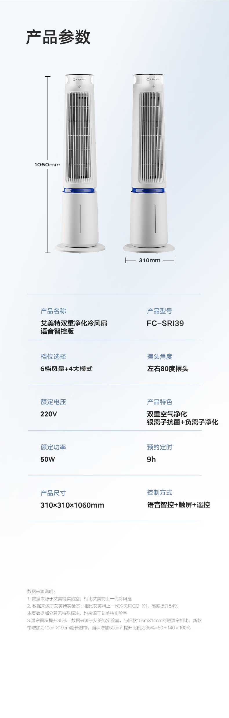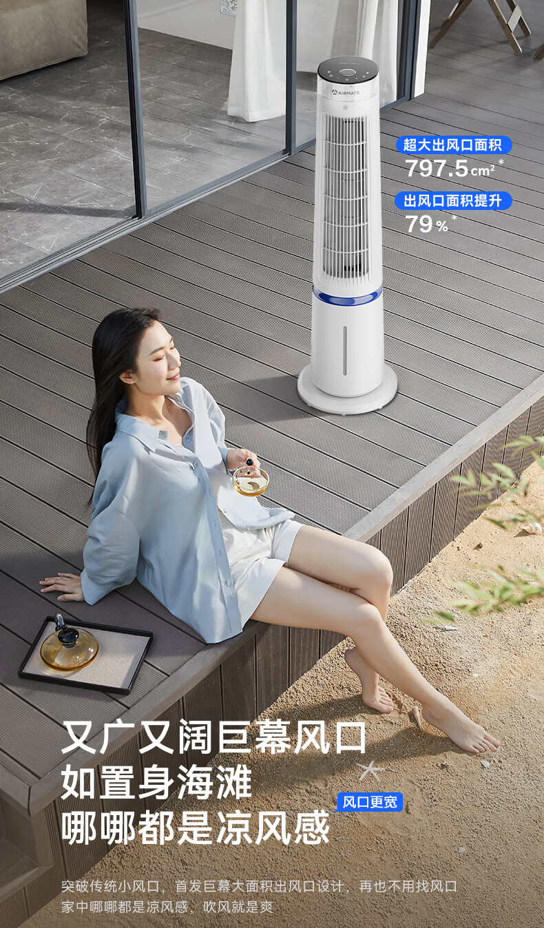艾美特(AIRMATE)【百万负离子】灯塔冷风扇空调扇家用语音智能水冷塔扇柔风制冷电风扇落地扇加湿定时小空调 SRI39