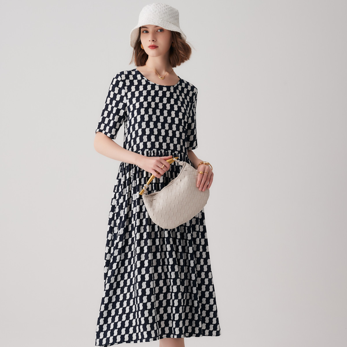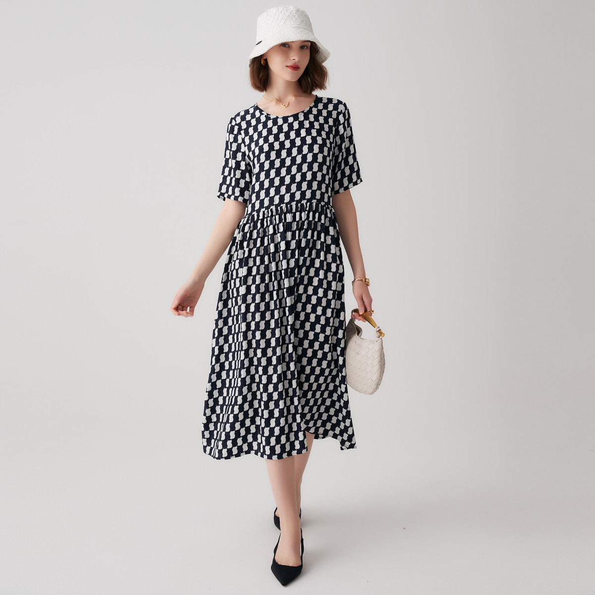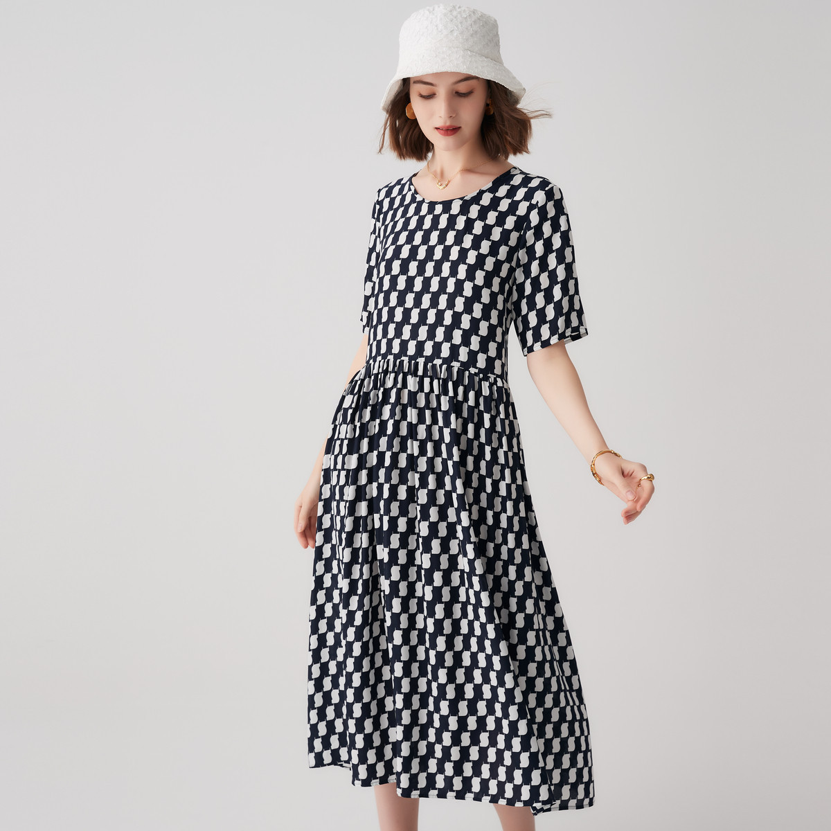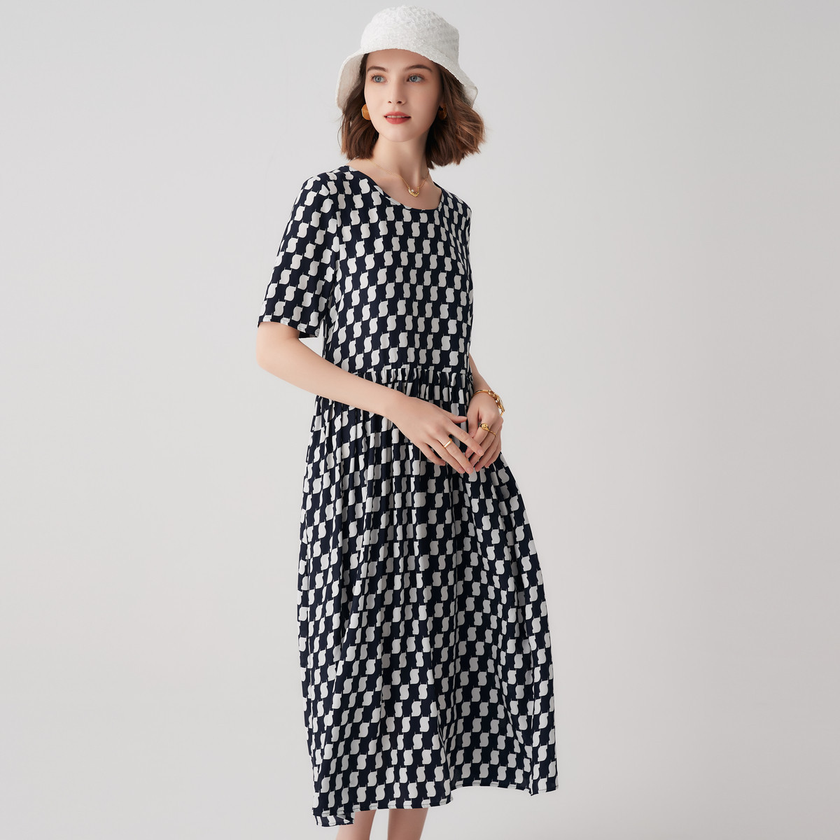 【帕罗】B3F | 100%桑蚕丝短袖连衣裙