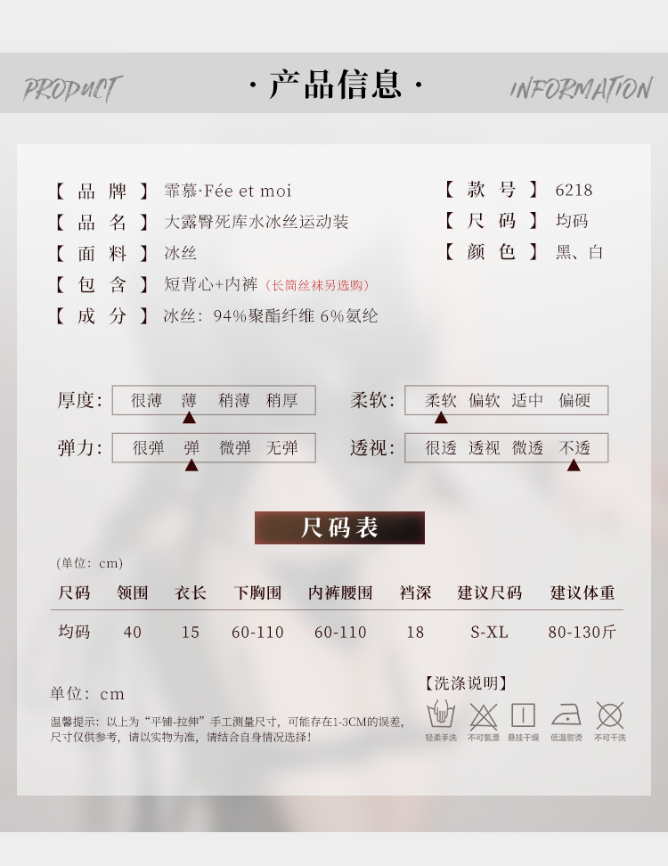 霏慕大露臀死库水冰丝运动装6218 动感青春运动服性感情趣内衣 均码