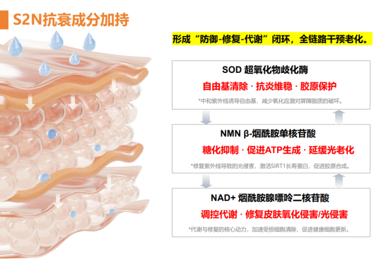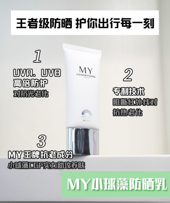 独家生物活性配方,在高效防晒的同时: 构筑“修护盾”: 抵御蓝光/红外引发的氧化损伤,即时修护,强韧保湿。 按下“抗老键”: 针对性对抗 光老化 (色斑皱纹)、热老化 (松弛垮脸) —— 防晒即抗老! 运用MY光能滤转技术(通过C.G.F因子),智能过滤 UVA/UVB/蓝光等有害光,逆转部分刺激光,变成养护肌肤的美肤光。