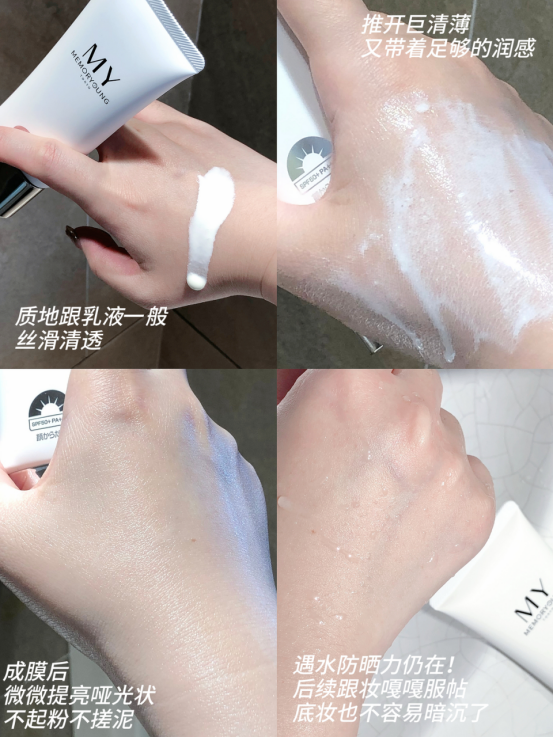 MY防晒乳!四季出门必备!防+养 防得了紫外线、蓝光、空气污染,养得了肌肤,不怕黑、不长斑、不泛红! 水感清透 ,3秒成膜,在肤感上我们可谓是下足了功夫,被油腻、假白、闷痘伤过的姐妹们一定不能错过!!!
