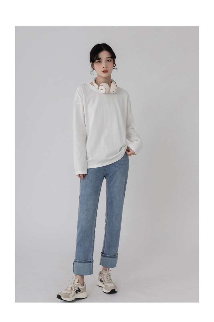全能打底【严白小白T长袖】长袖小白t 基础款情侣长袖T恤上衣衣服服饰 0308返团