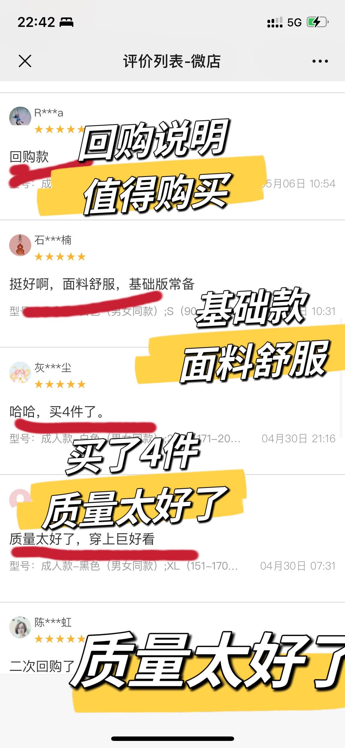 全都是好评回购