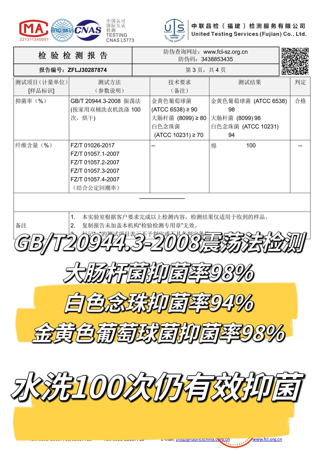水洗100次仍有效抑菌