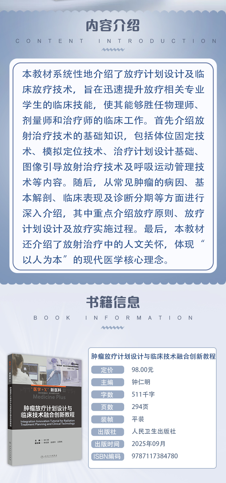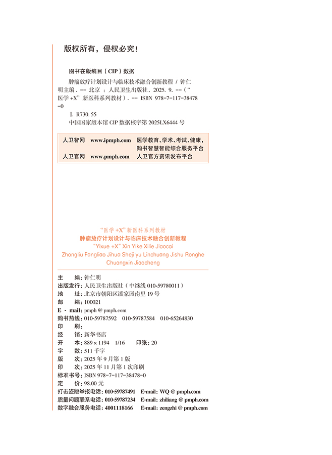 肿瘤放疗计划设计与临床技术融合创新教程 医学+X新医科系列教材 钟仁明 主编 供医学影像技术 医学物理等专业用 人民卫生出版社