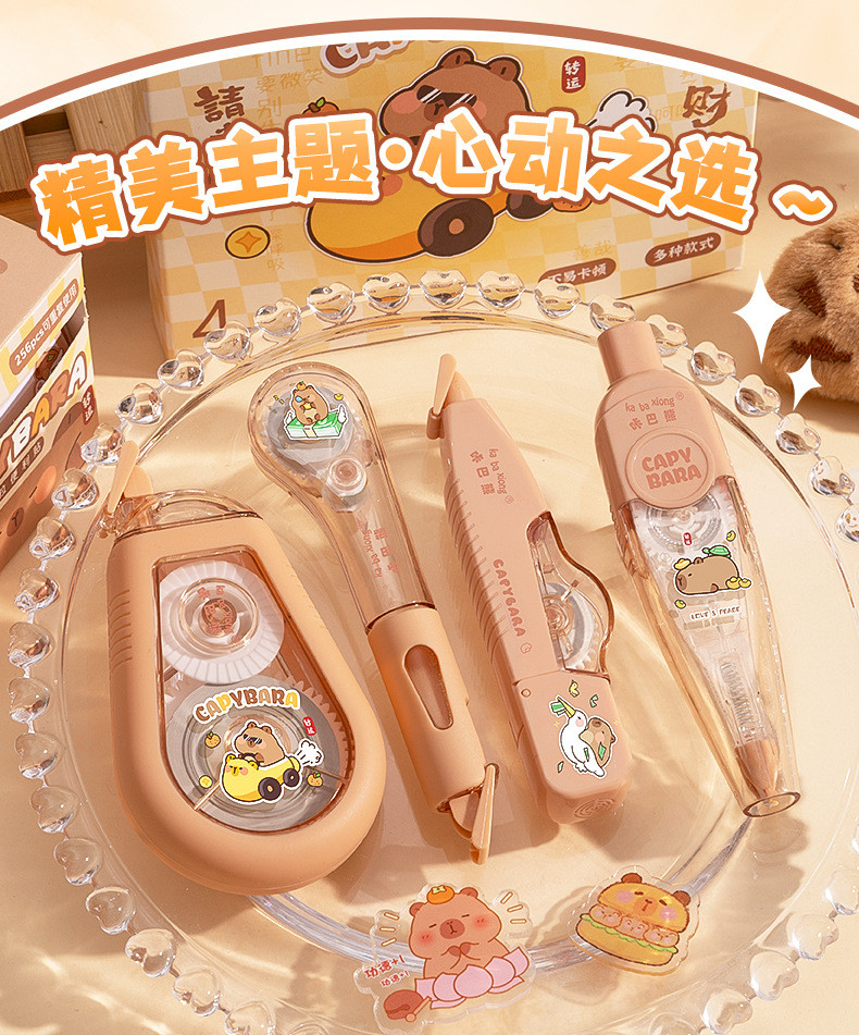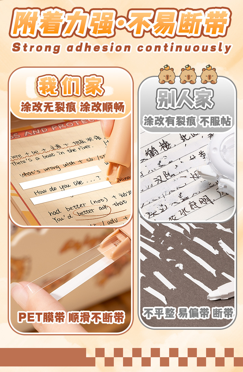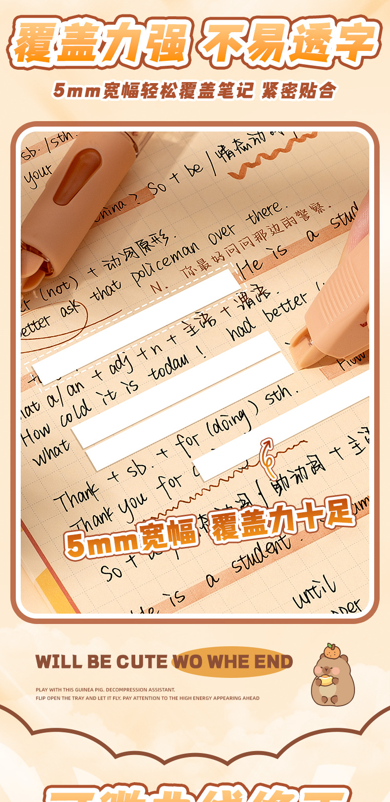 【老师推荐❗️高颜值修正带套装】每支都有"小心机",附着力强不易断带,双重保护防尘防摔,小学生卡通按动涂改带用可爱大容量便携改正带L