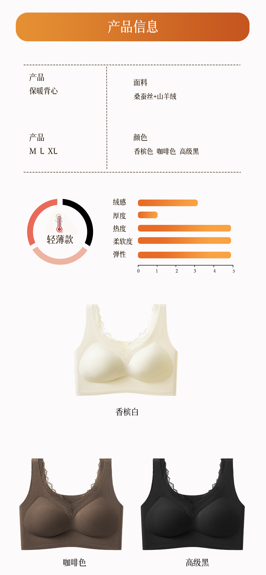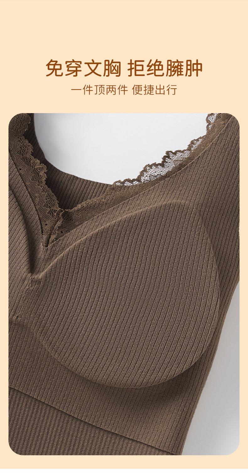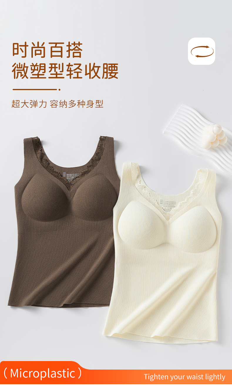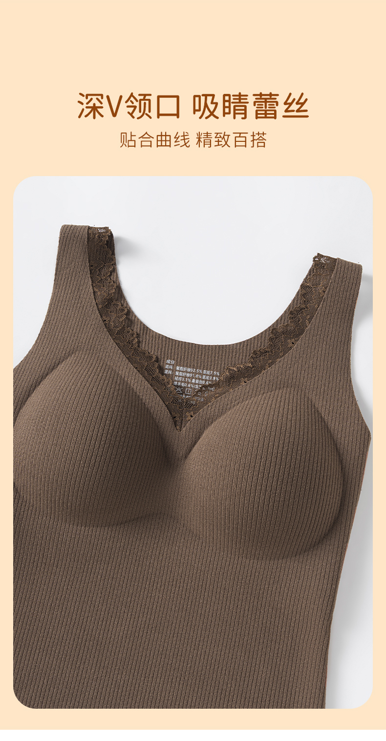 现货【GZ】无忧购绵羊毛桑蚕丝发热背心保暖固定一体杯文胸短款长款(截单后7天发货)