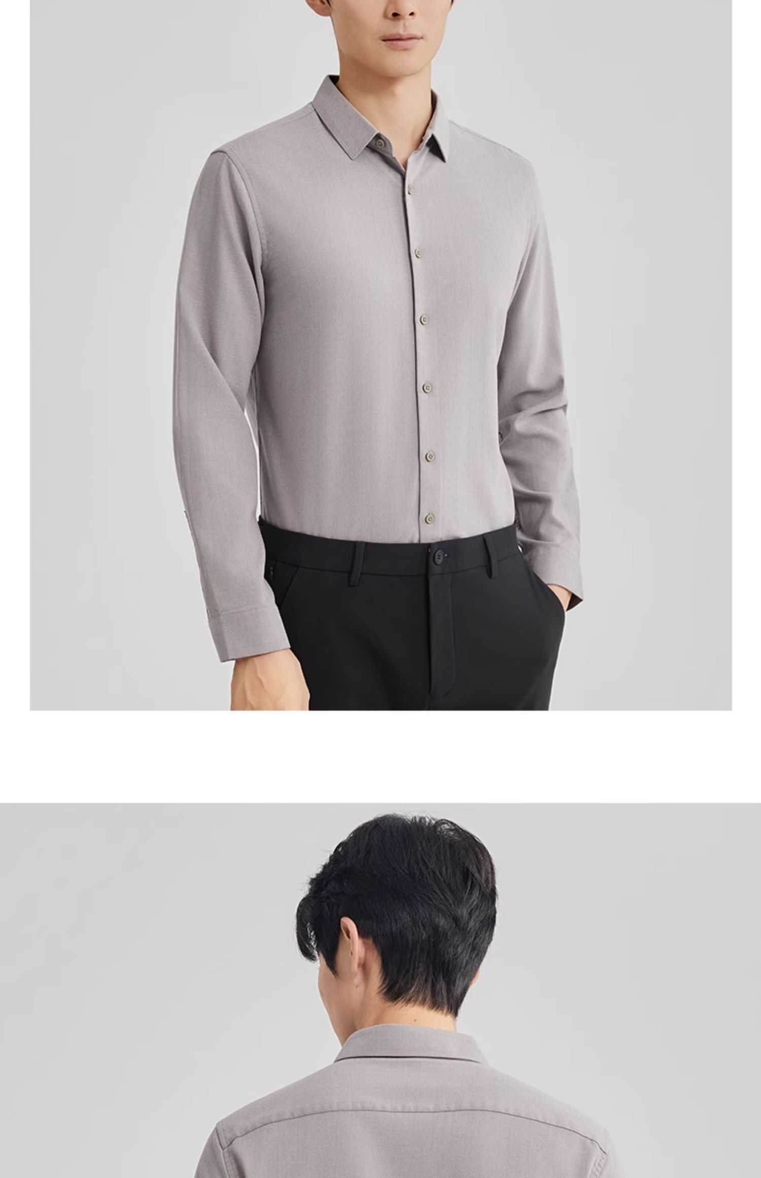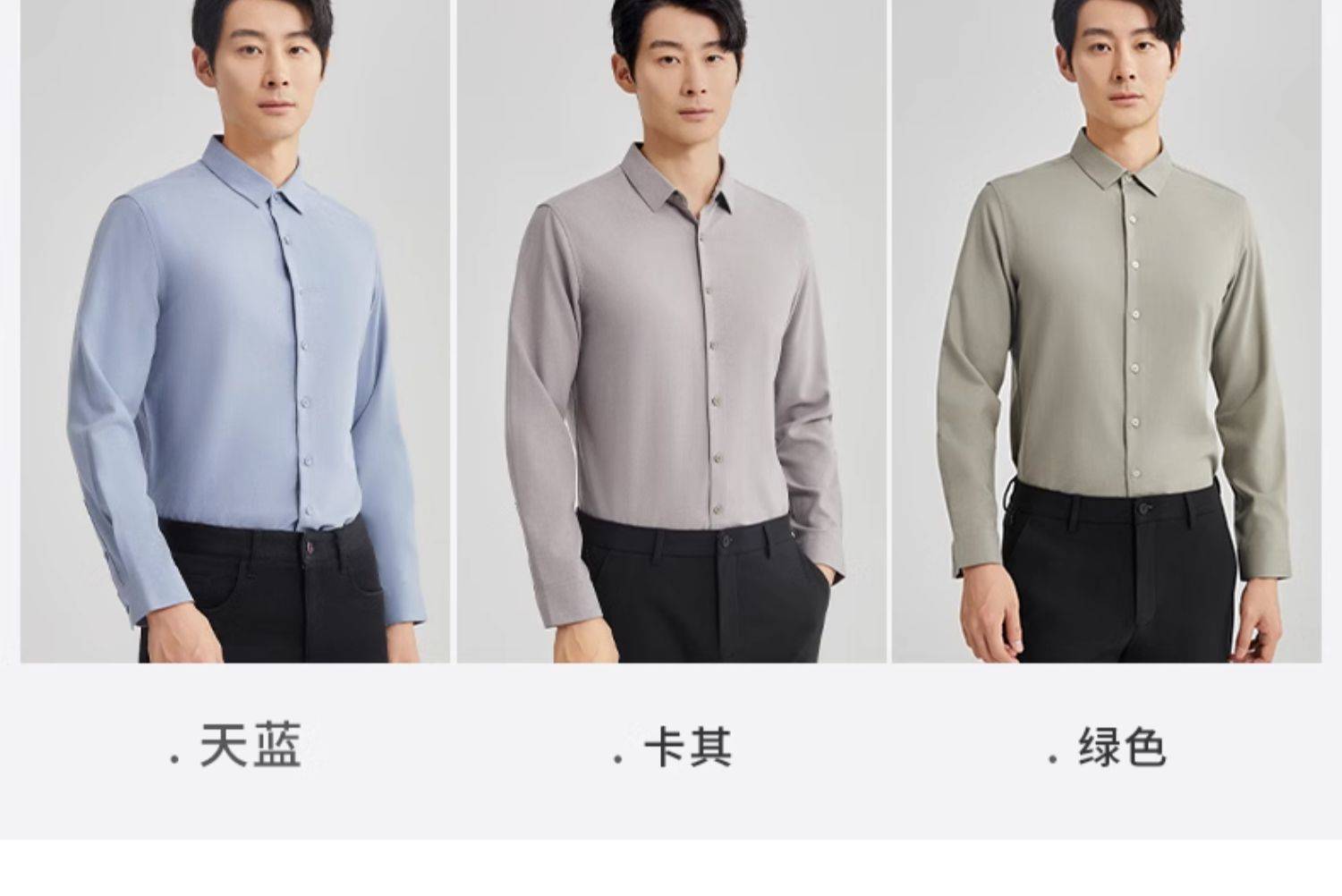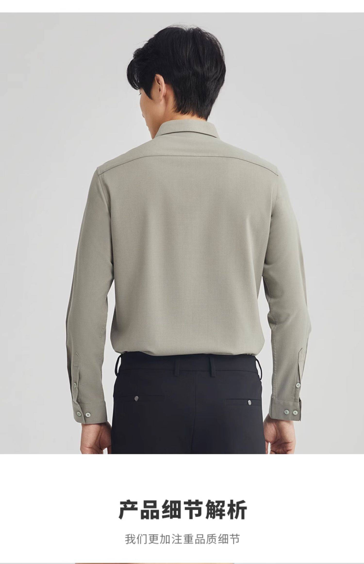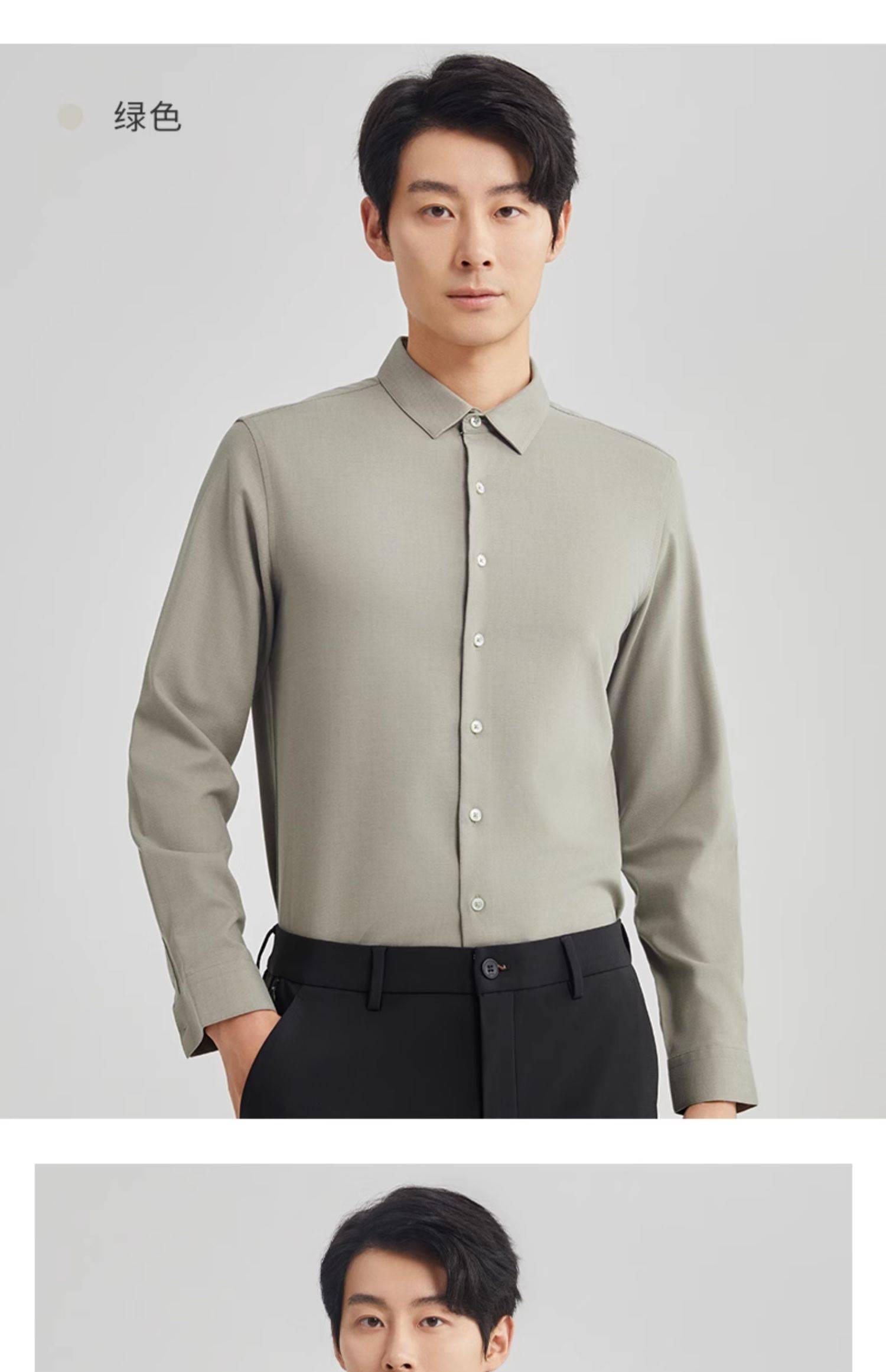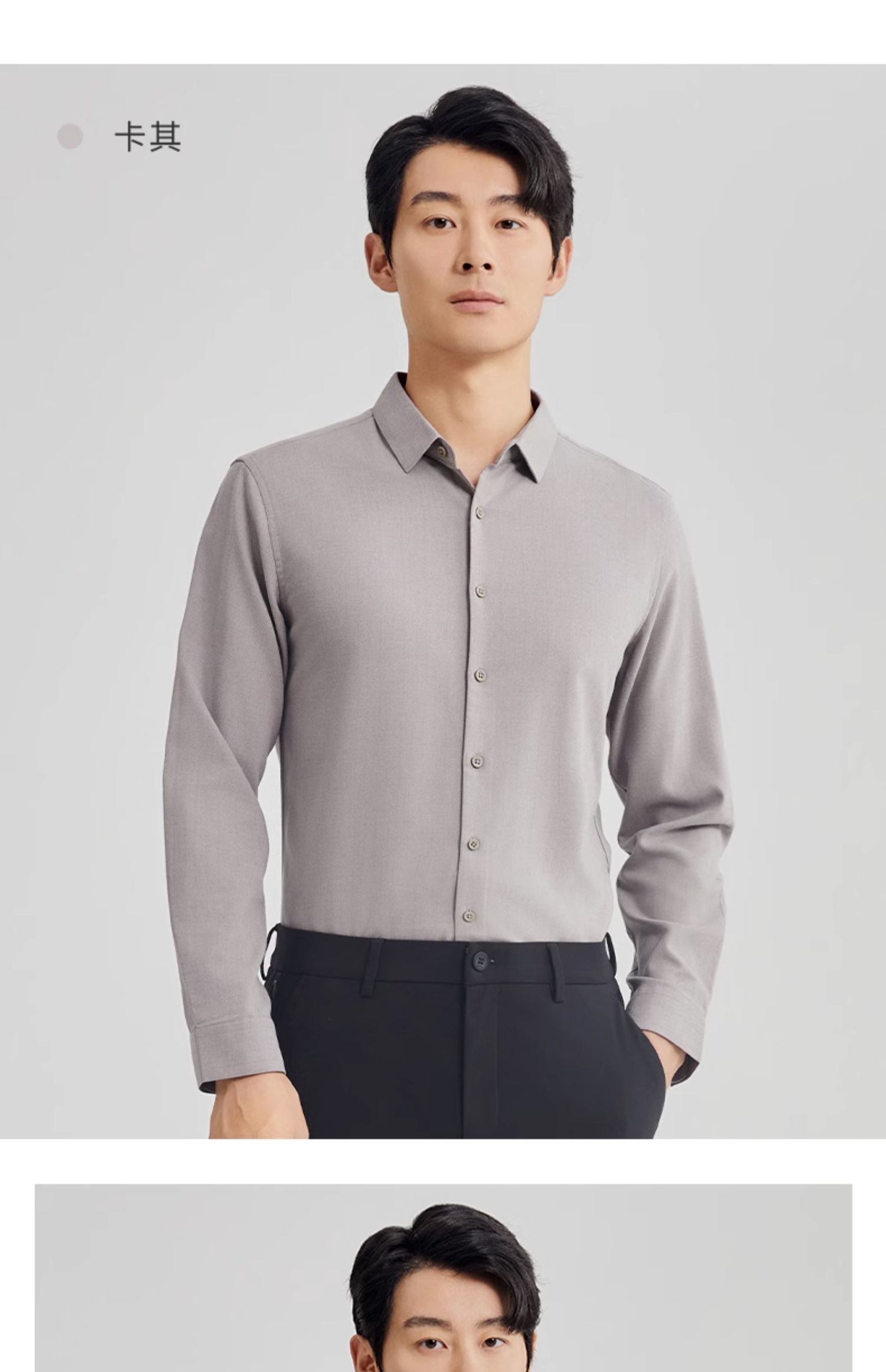 圣得西含绵羊毛弹力商务休闲长袖衬衫秋款都市通勤衬衣2412952005A