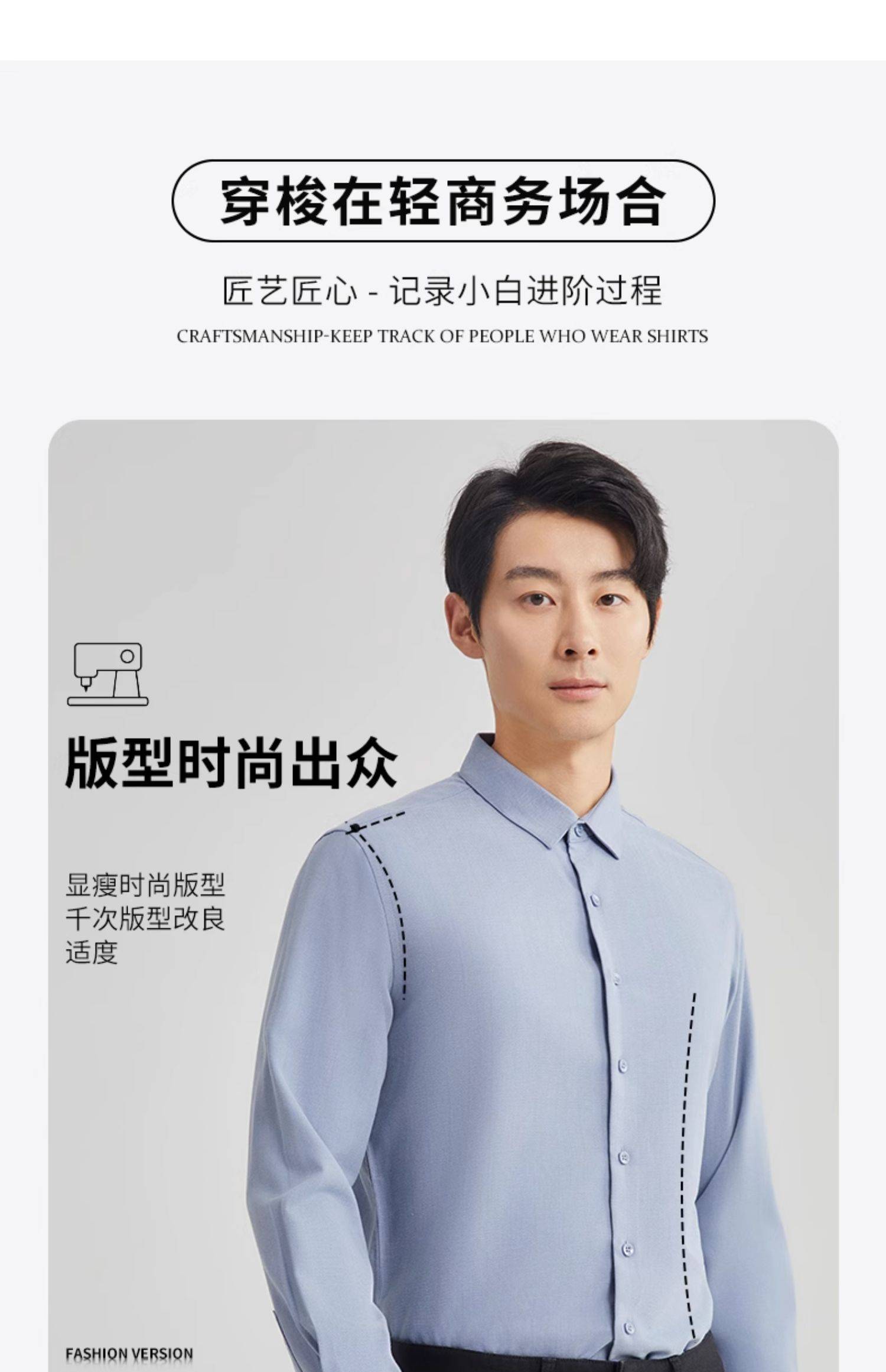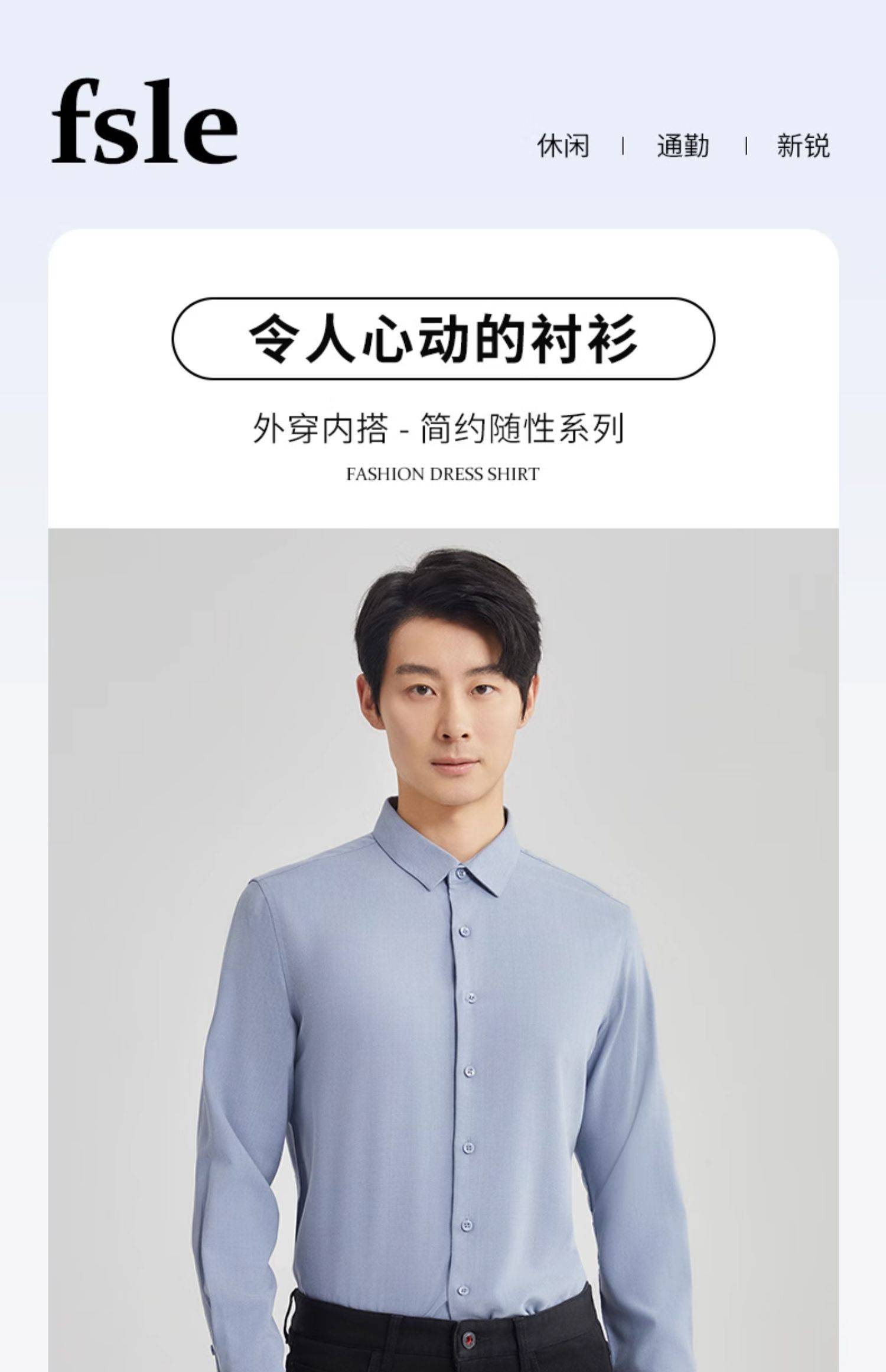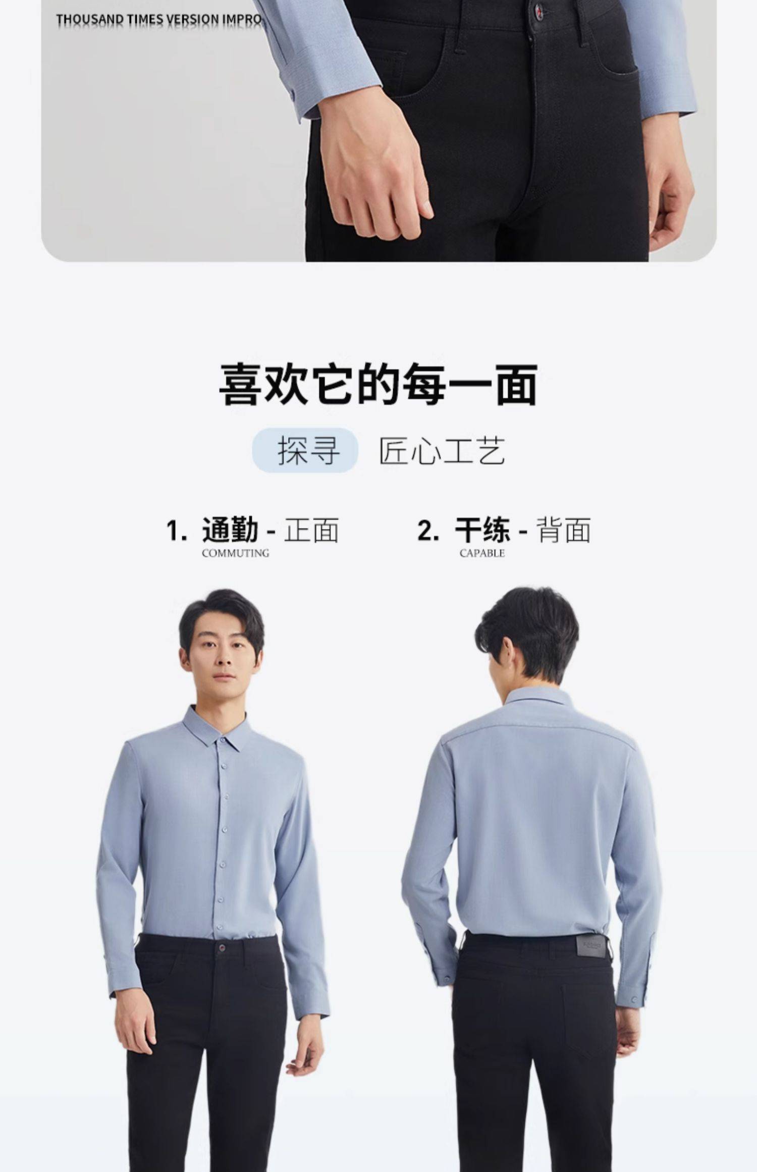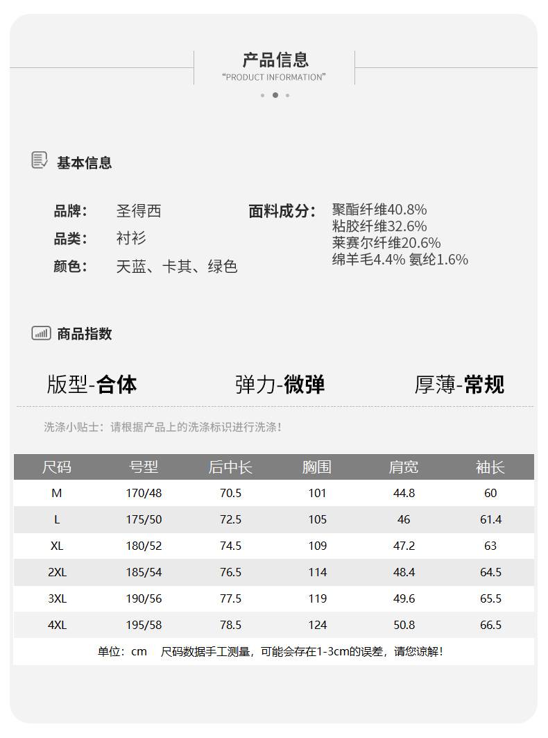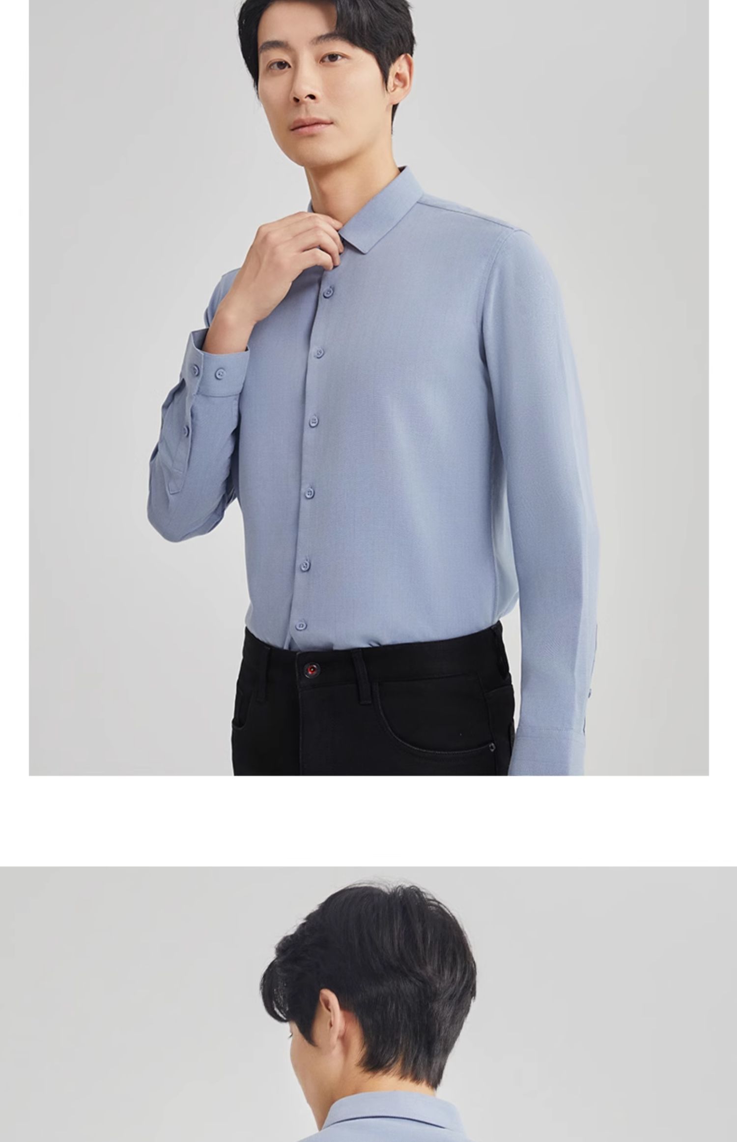 圣得西含绵羊毛弹力商务休闲长袖衬衫秋款都市通勤衬衣2412952005A