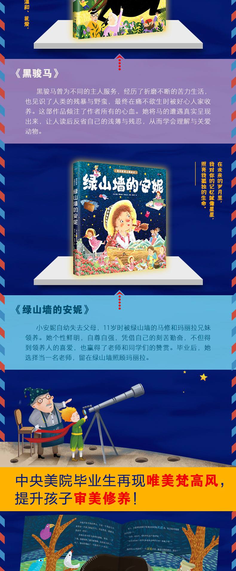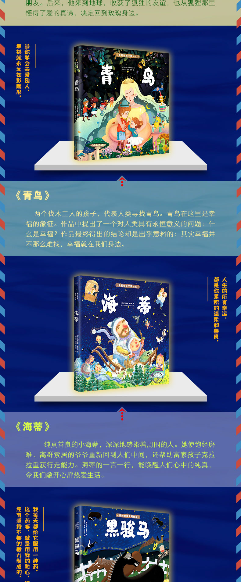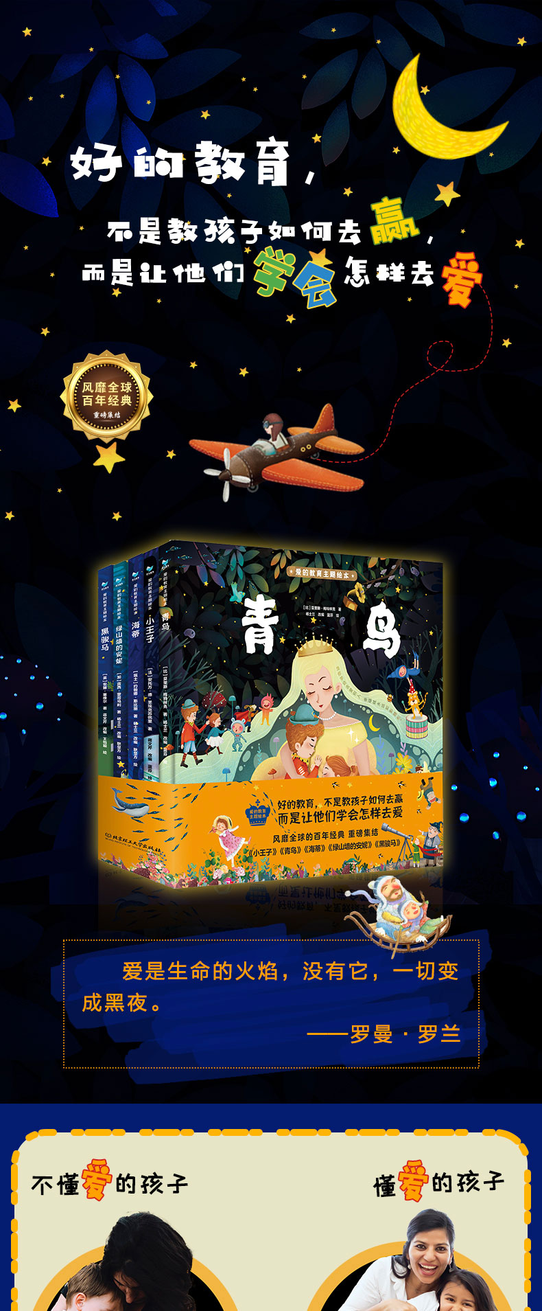 【3-10岁】《小小孩的大名著:爱的教育主题绘本》硬壳精装函套5册 小王子+青鸟+海蒂+黑骏马+绿山墙的安妮