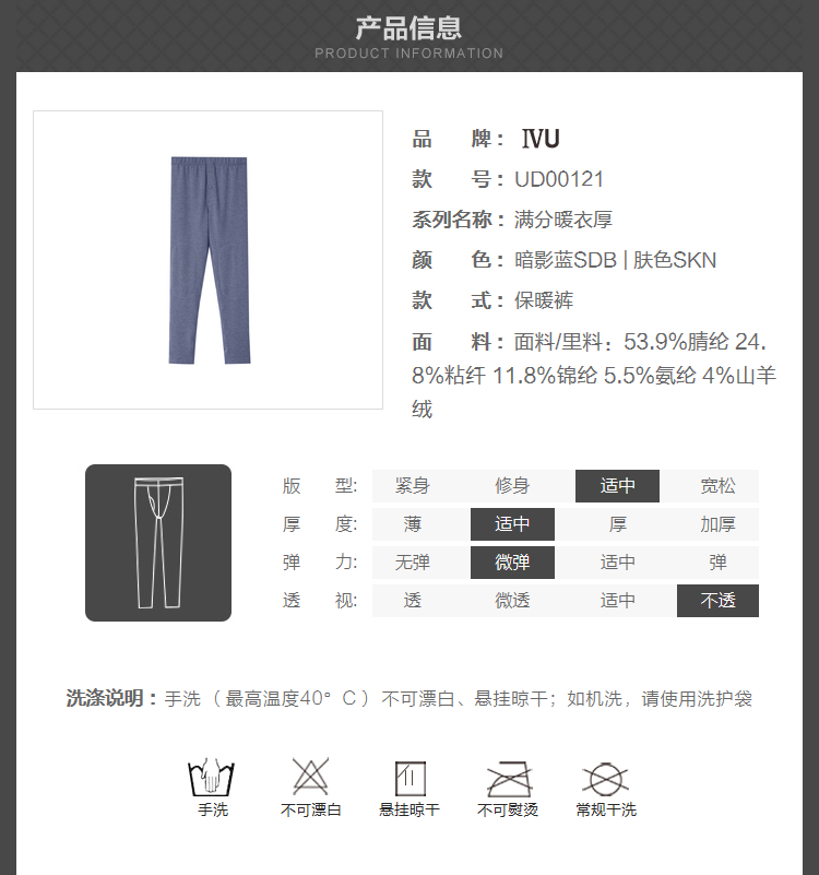 6FIVU男士无痕双层护膝暖裤舒适修身打底家居裤(11.16)