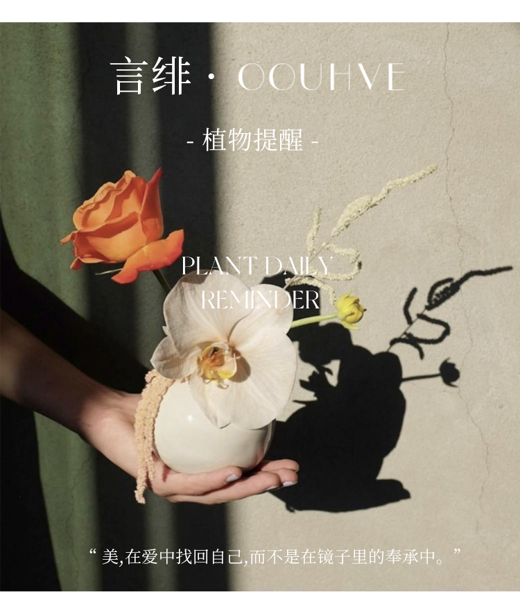 - OOUHVE无添加护肤品,以内养外精准护肤 译为“更像自己”通过肌肤是有生命,学会倾听肌肤声音的探讨 赋予产品精神意义与力量,通过优选原料品质温和精纯有效的护肤品,让每一位女性在使用后更加独立坚强。
