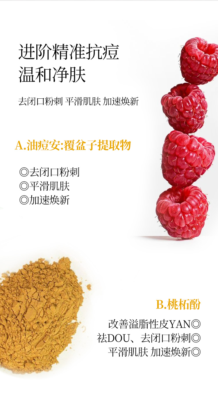 去掉了水杨酸更替为草本杀菌的祛痘成分