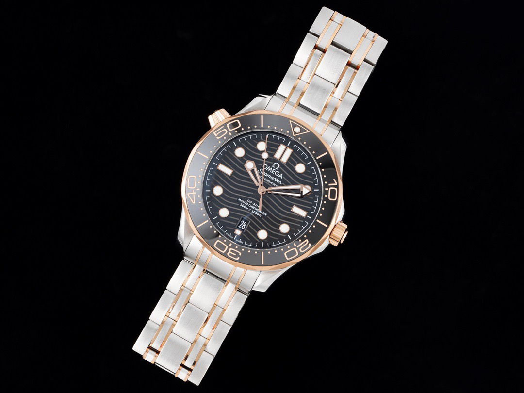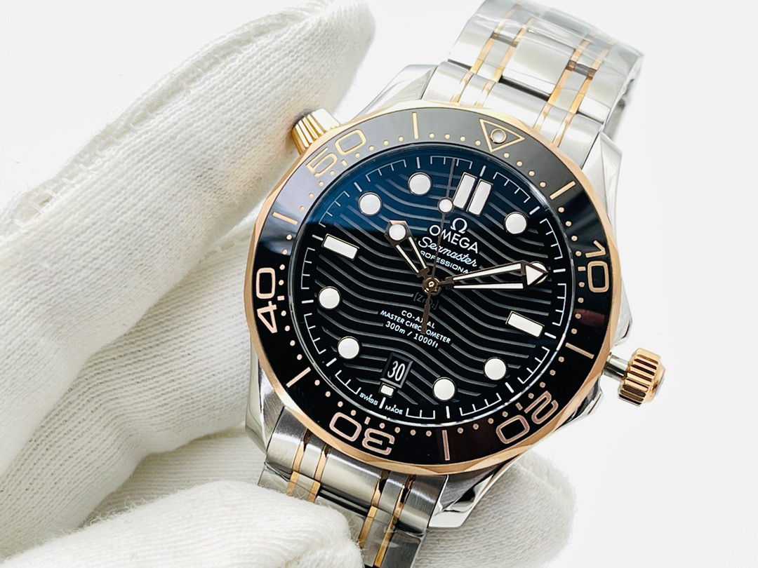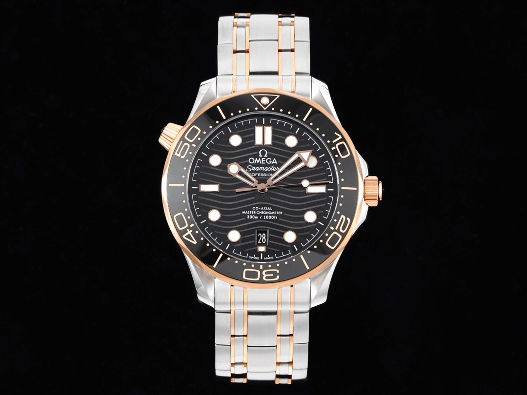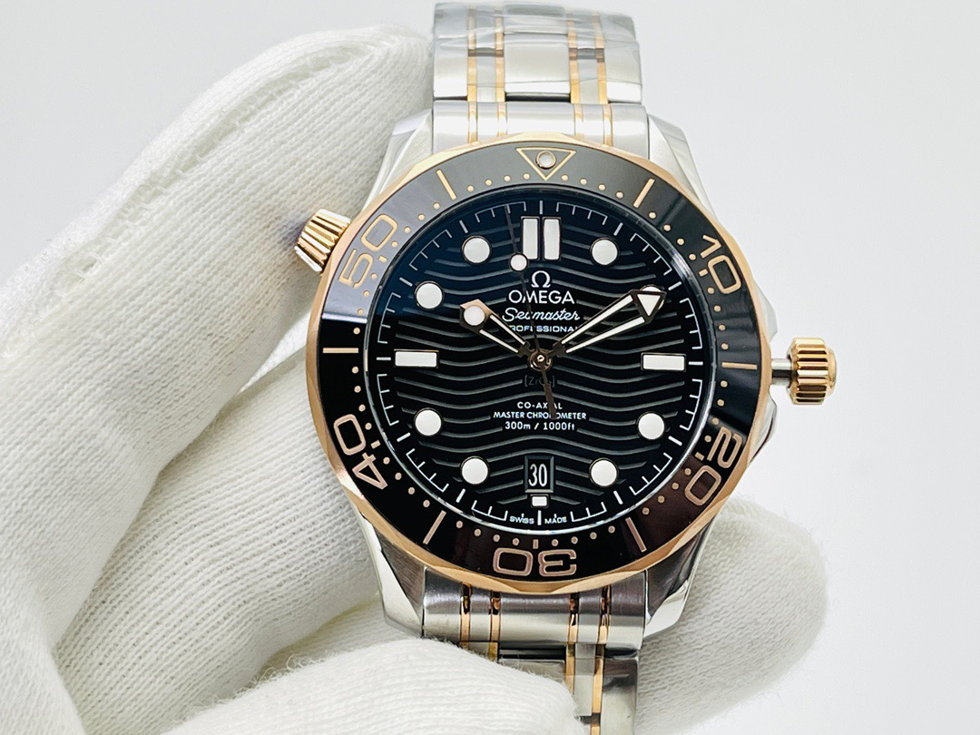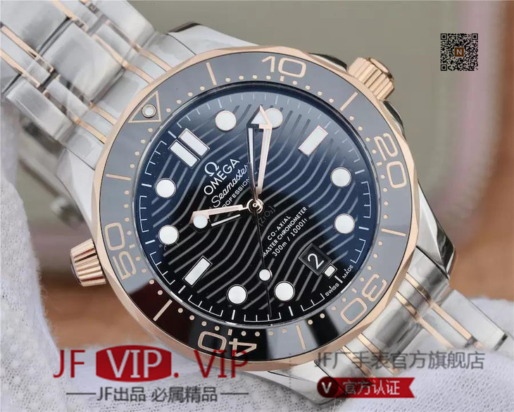 VS欧米茄海马300M间金,选对版本很重要。VS版本和正品在12点位外圈口带有贵金属印记:AU750 、狗头标 、天平秤 、欧logo,可以看是否有这个印记区分出是VS/市面版本。买家、卖家都不用担心打脸的版本