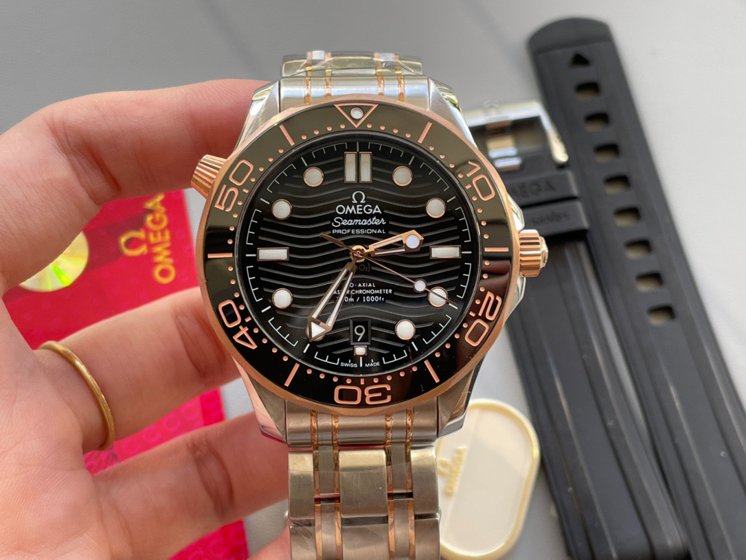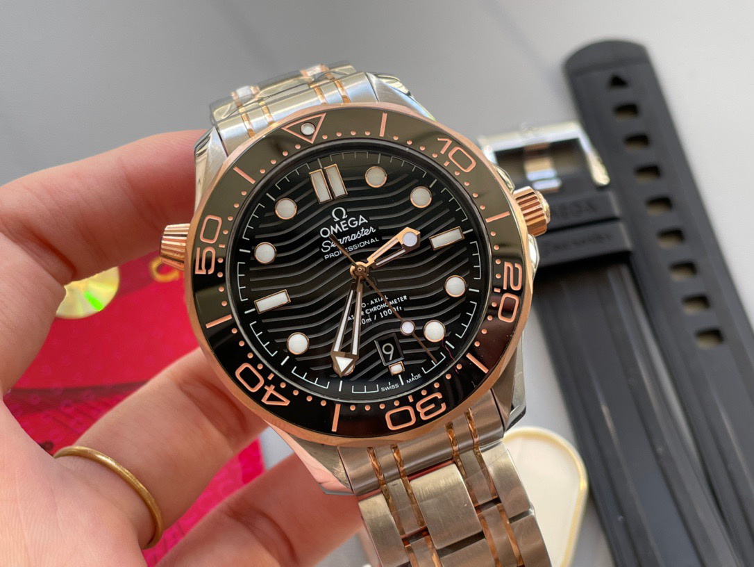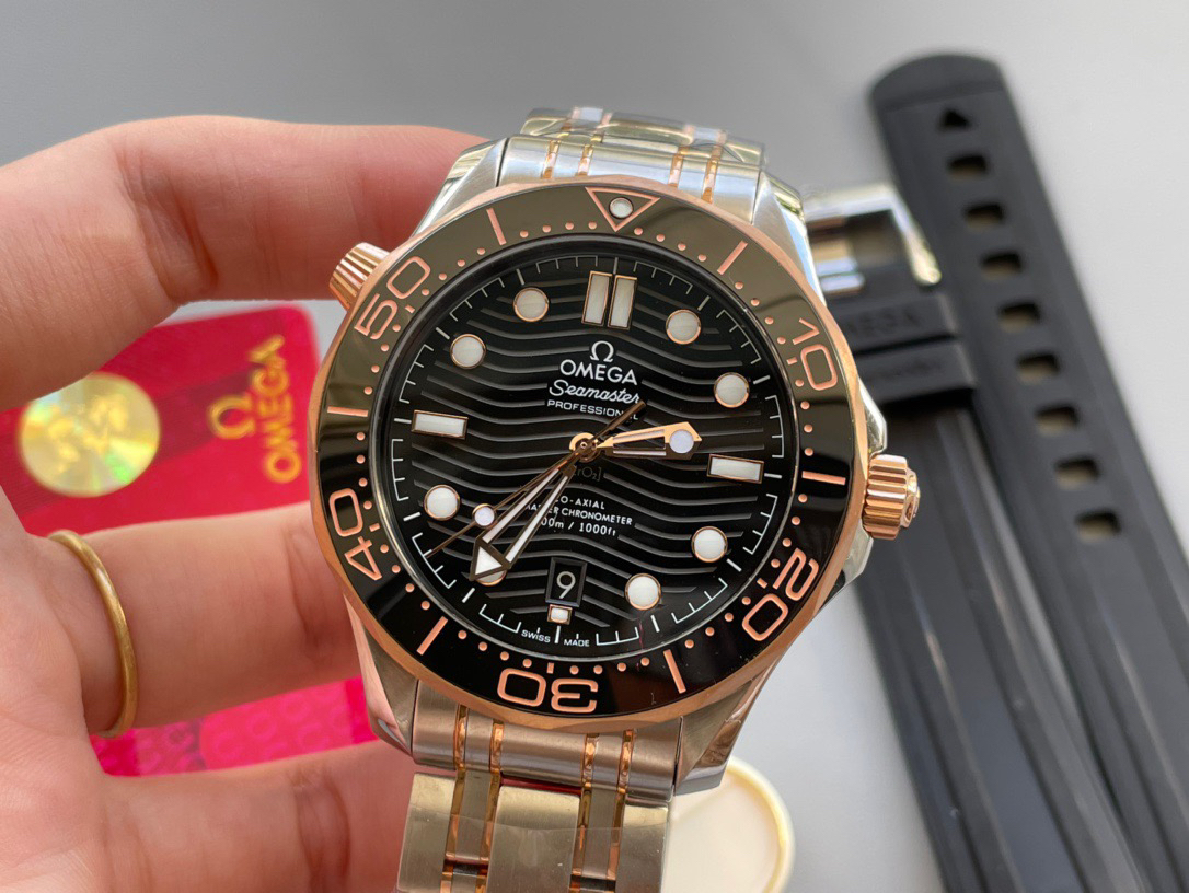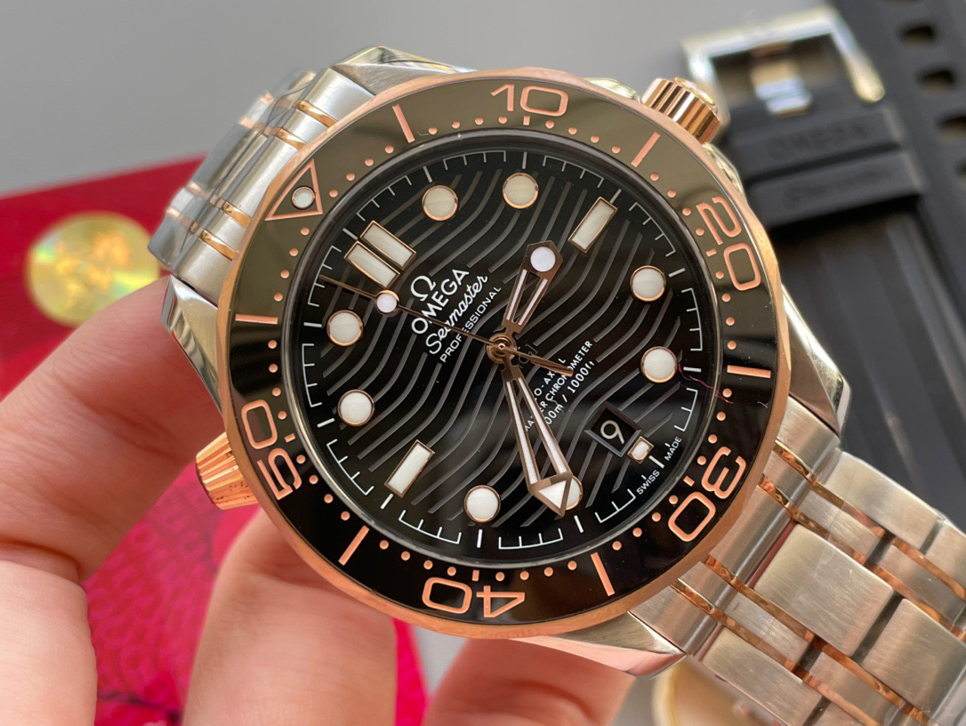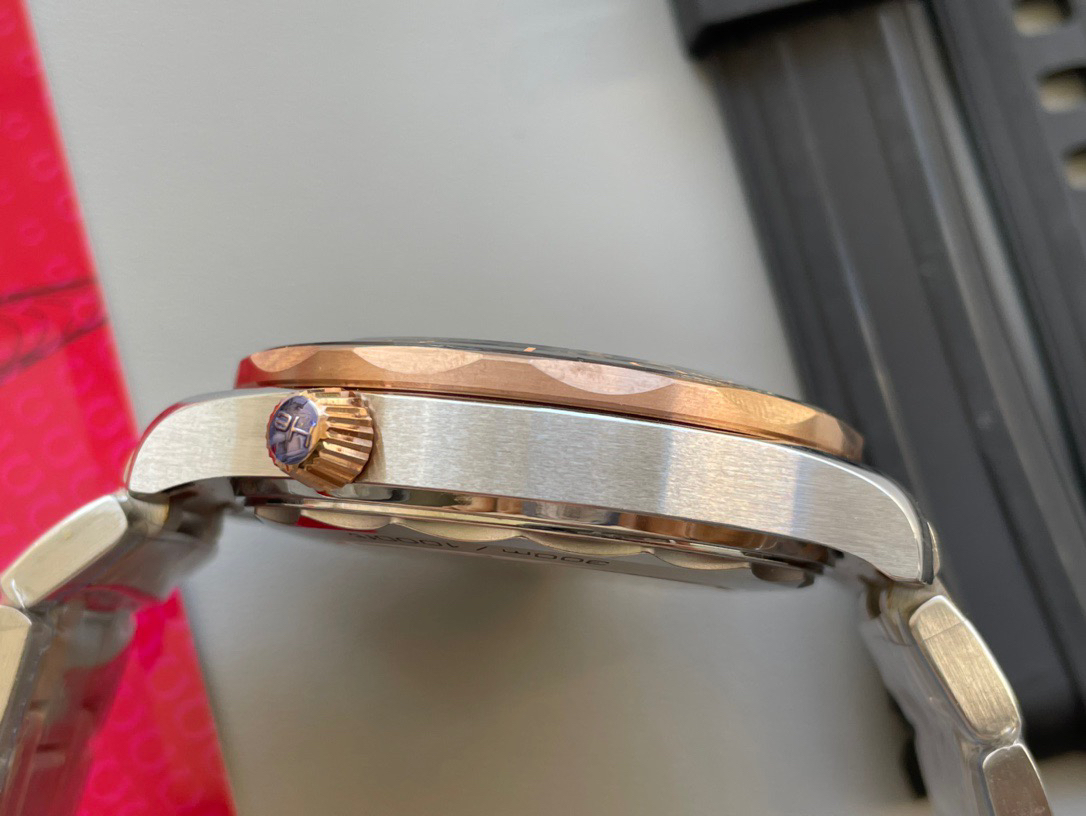 VS欧米茄海马300M间金,选对版本很重要。VS版本和正品在12点位外圈口带有贵金属印记:AU750 、狗头标 、天平秤 、欧logo➕正品原版开模的精品中的精品,无破绽版本❕❕❕
