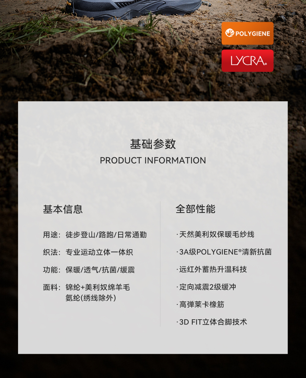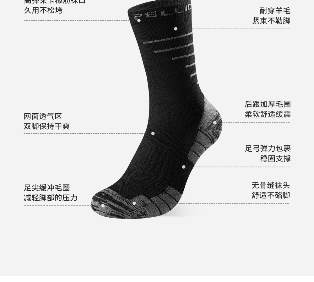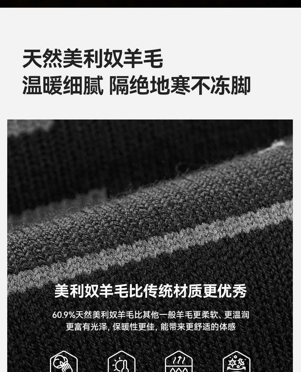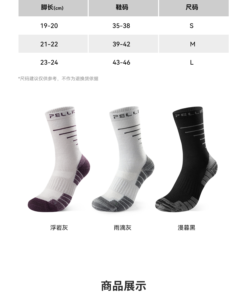 伯希和户外运动袜男美利奴羊毛加厚徒步袜秋冬登山保暖跑步袜子女
