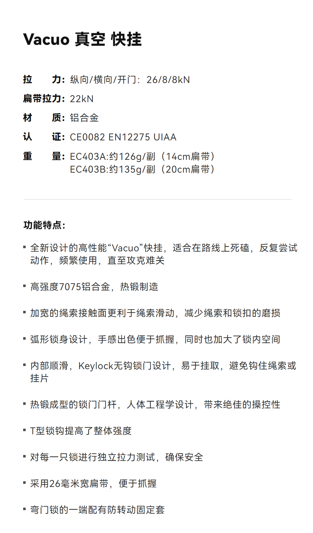 KAILAS凯乐石装备 户外攀登 Vacuo 快挂 EC403A/EC403B/EC403AS【Z】