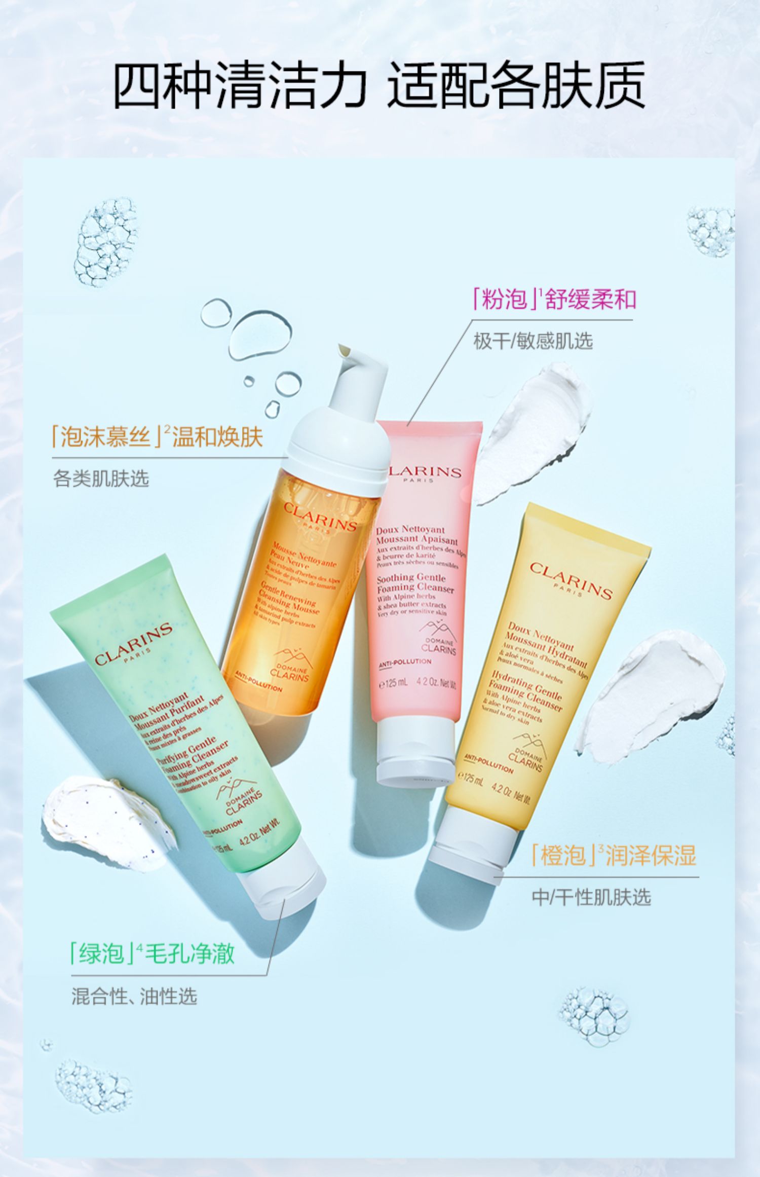 CLARINS 娇韵诗 舒柔保湿泡沫洁面乳125ml氨基酸洗面奶
