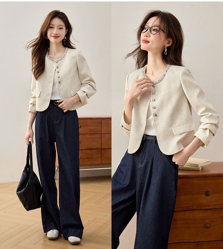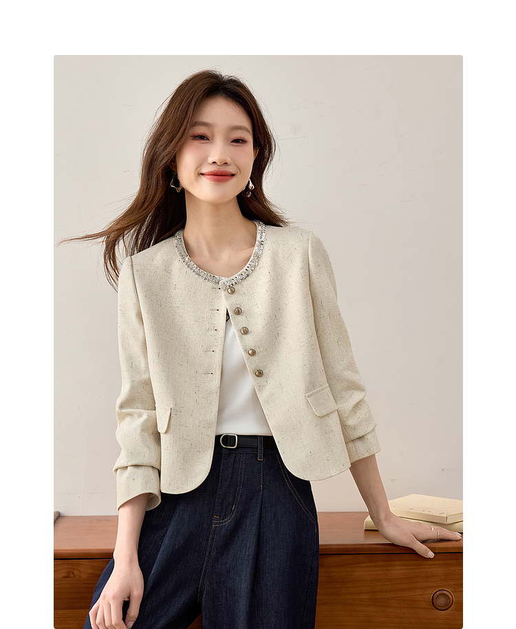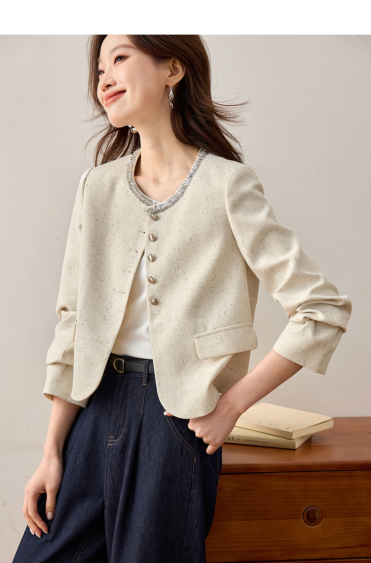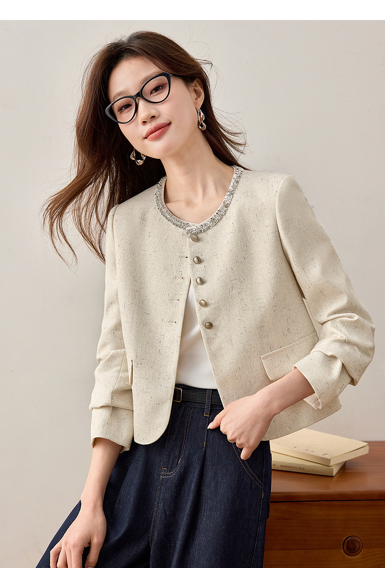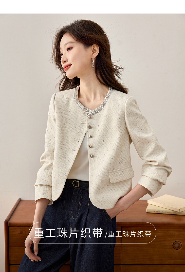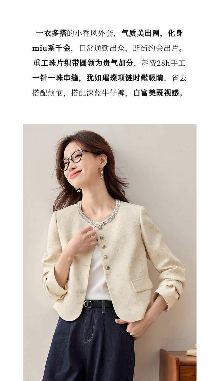 【年货节】熙世界重工珠片圆领小香风外套高级感气质短款上衣2025春秋新款