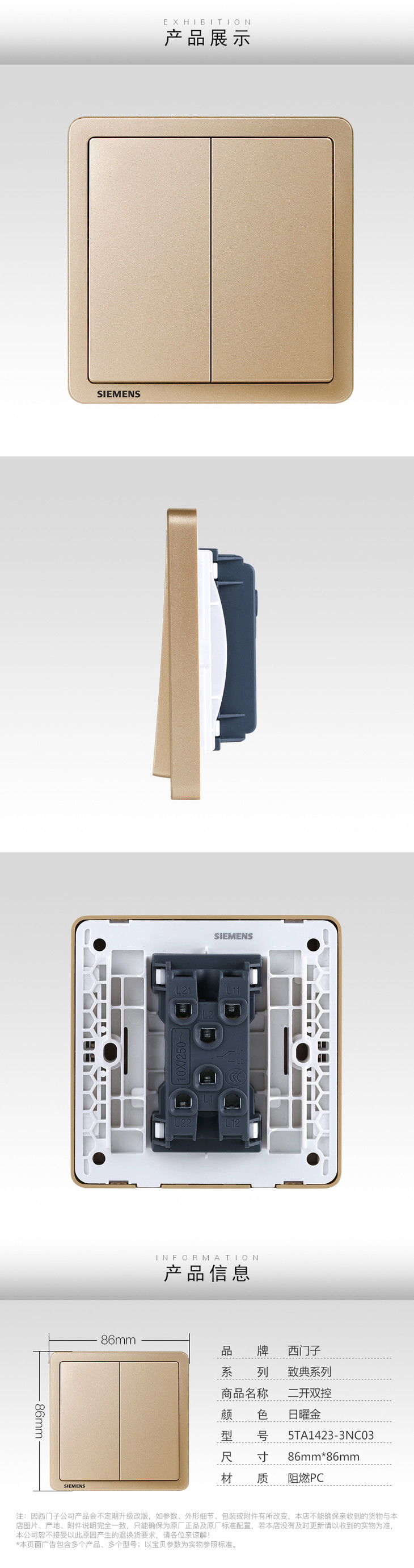 西门子开关插座皓彩日曜金开关插座面板一站式选购