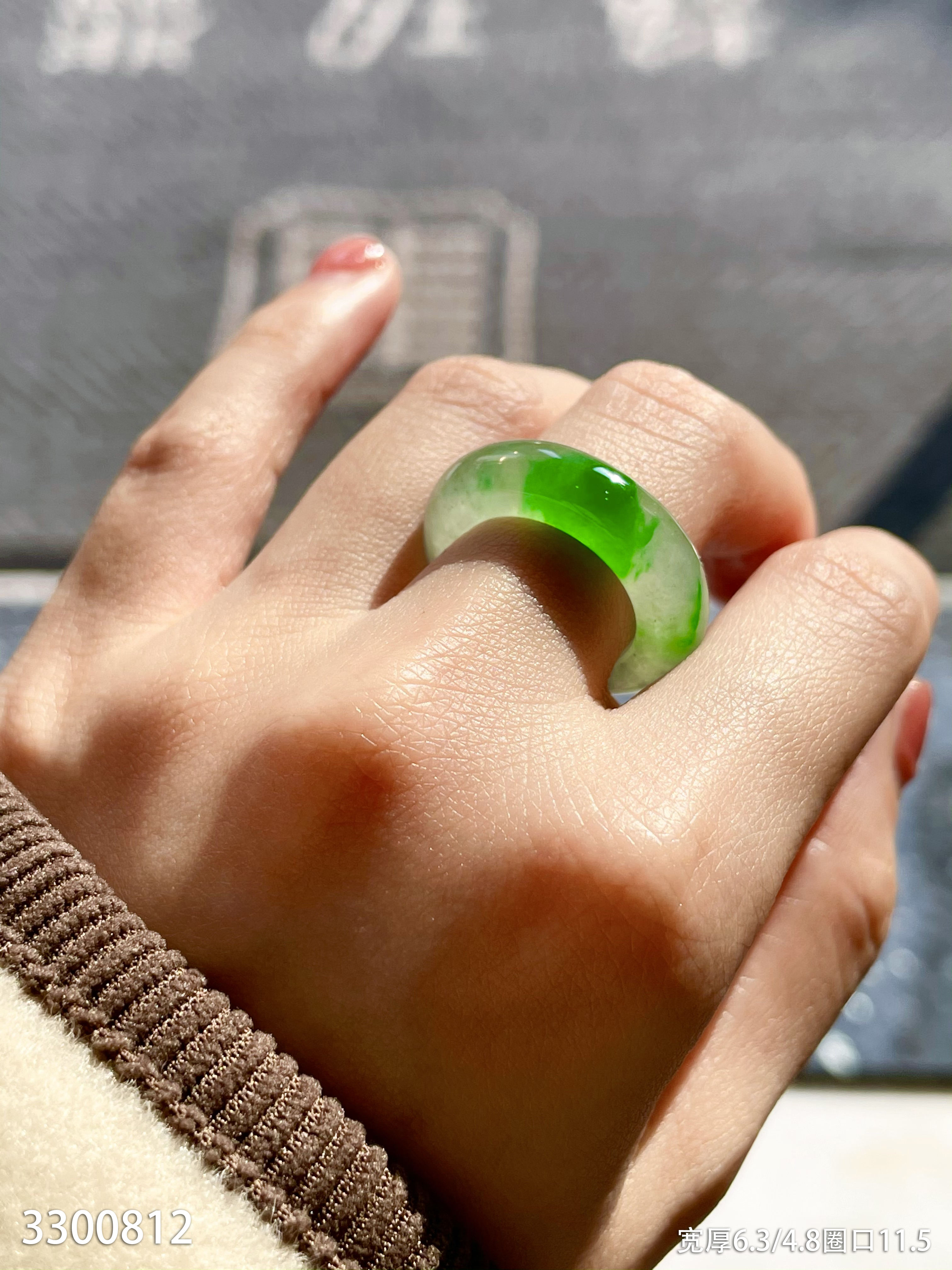 132-2123701,老坑高冰艳绿蛋面戒指,6599