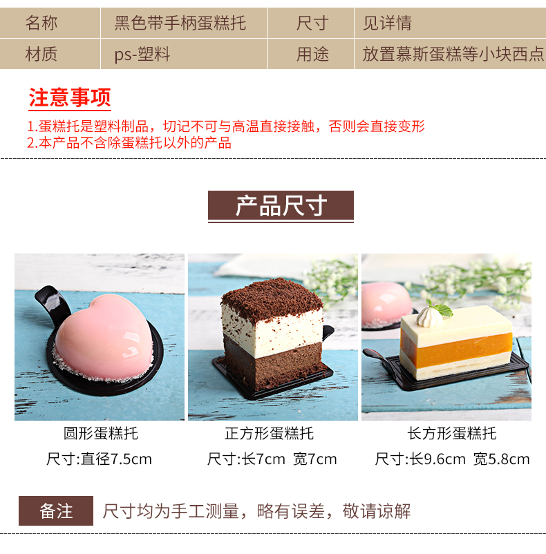 硬质磨砂黑色慕斯托 甜点多形状蛋糕塑料底托垫西点底托 20个装