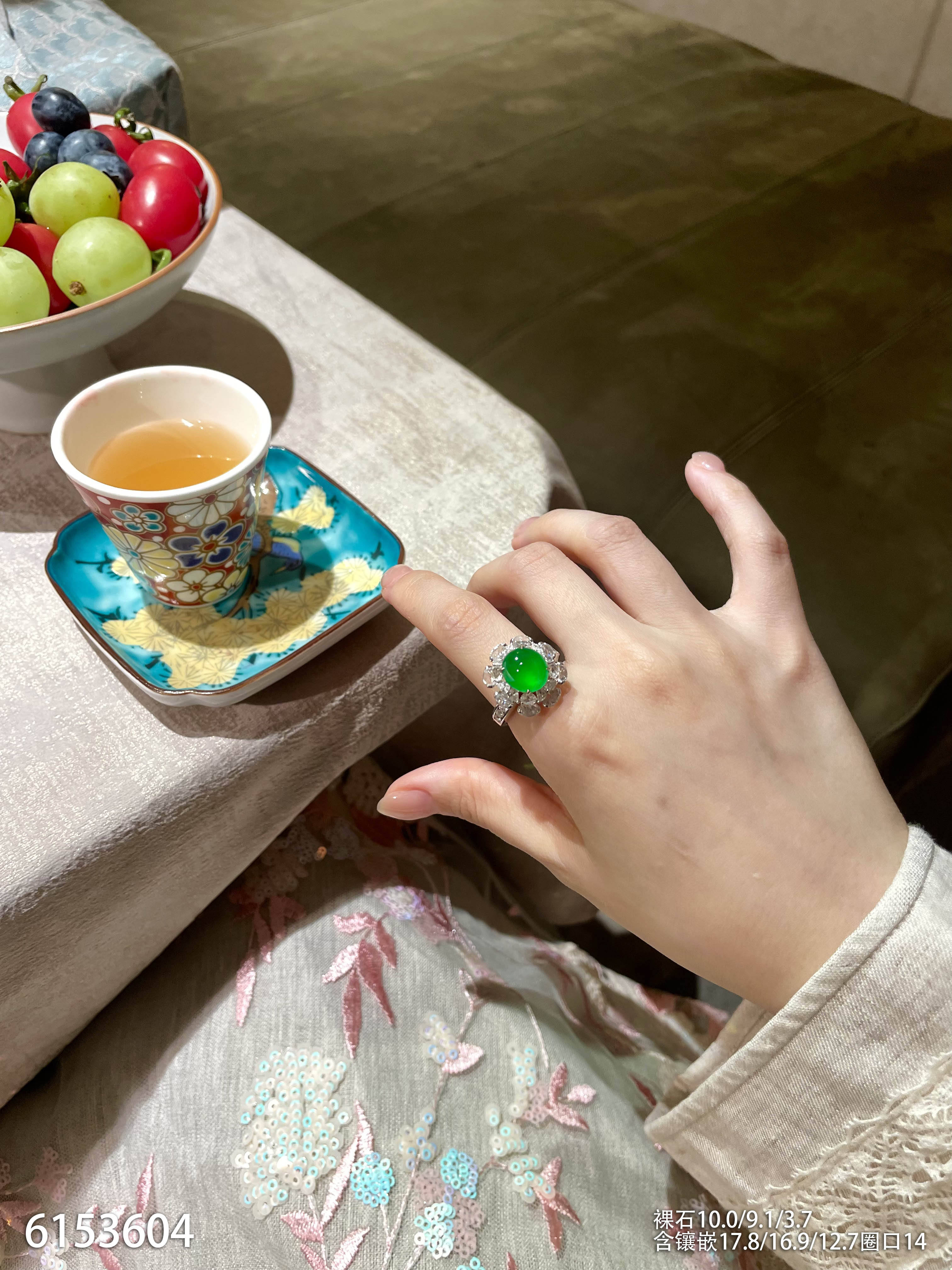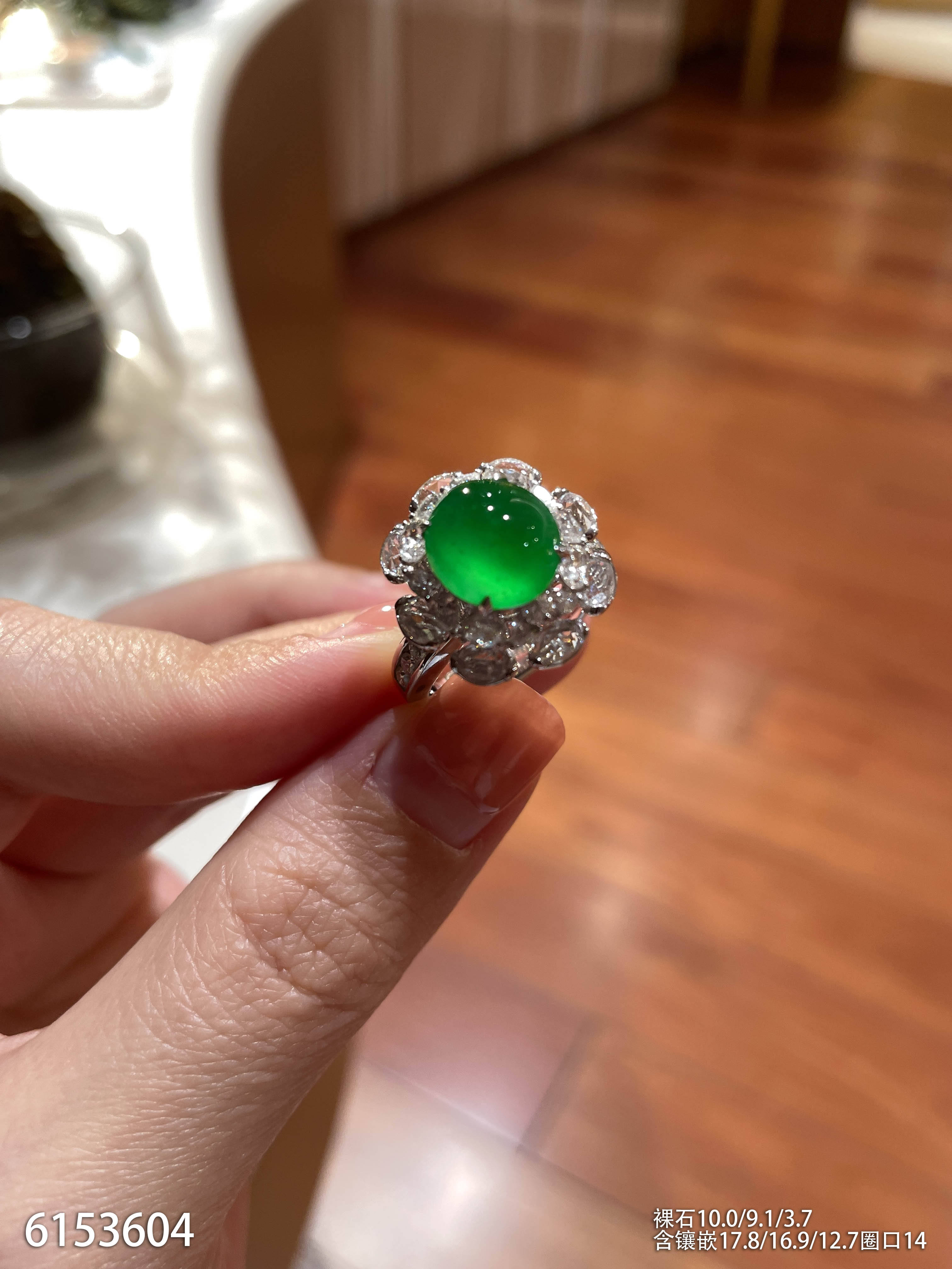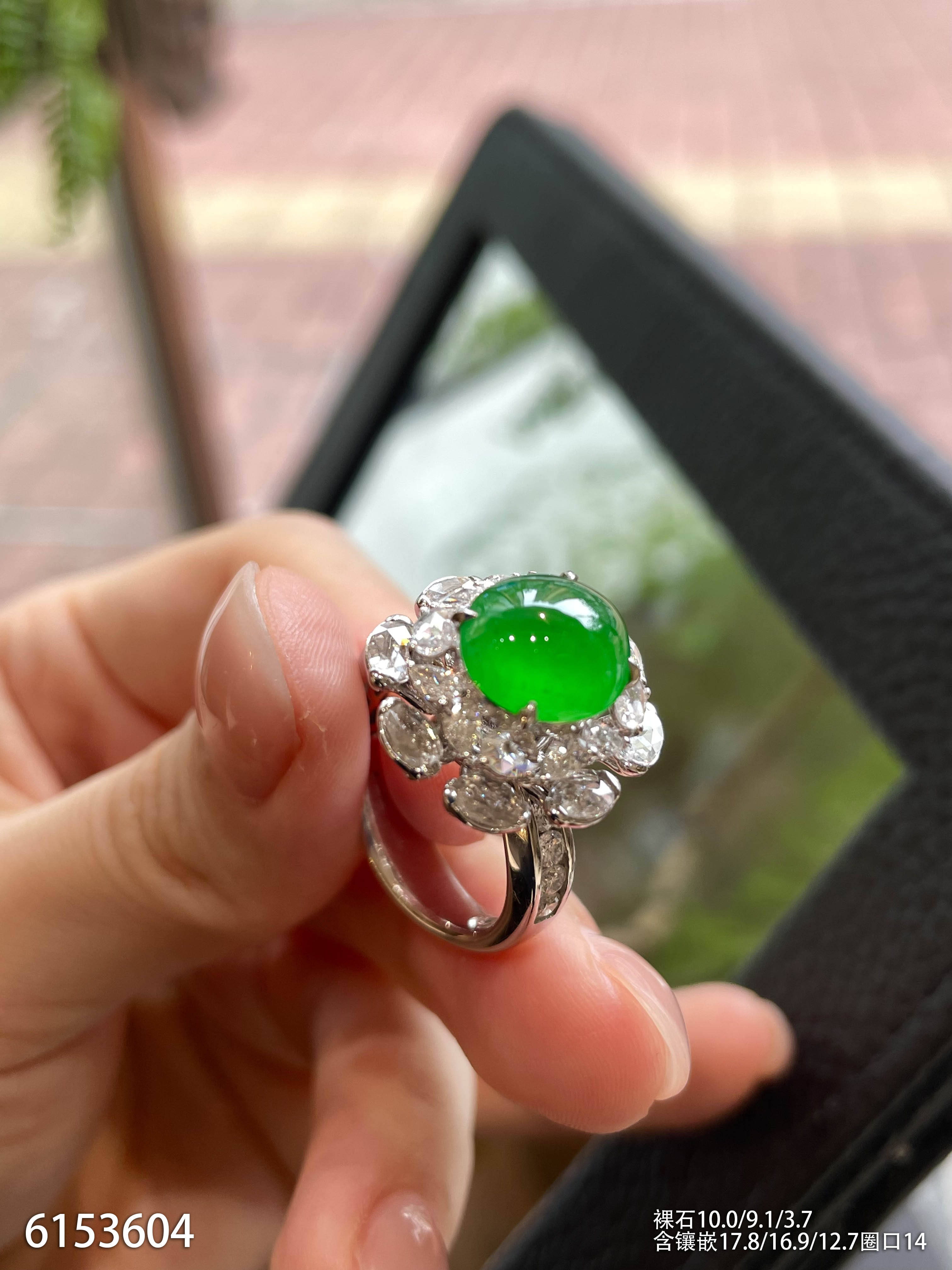 玻璃种黄阳绿蛋戒指【6153604】具体价格微信咨询