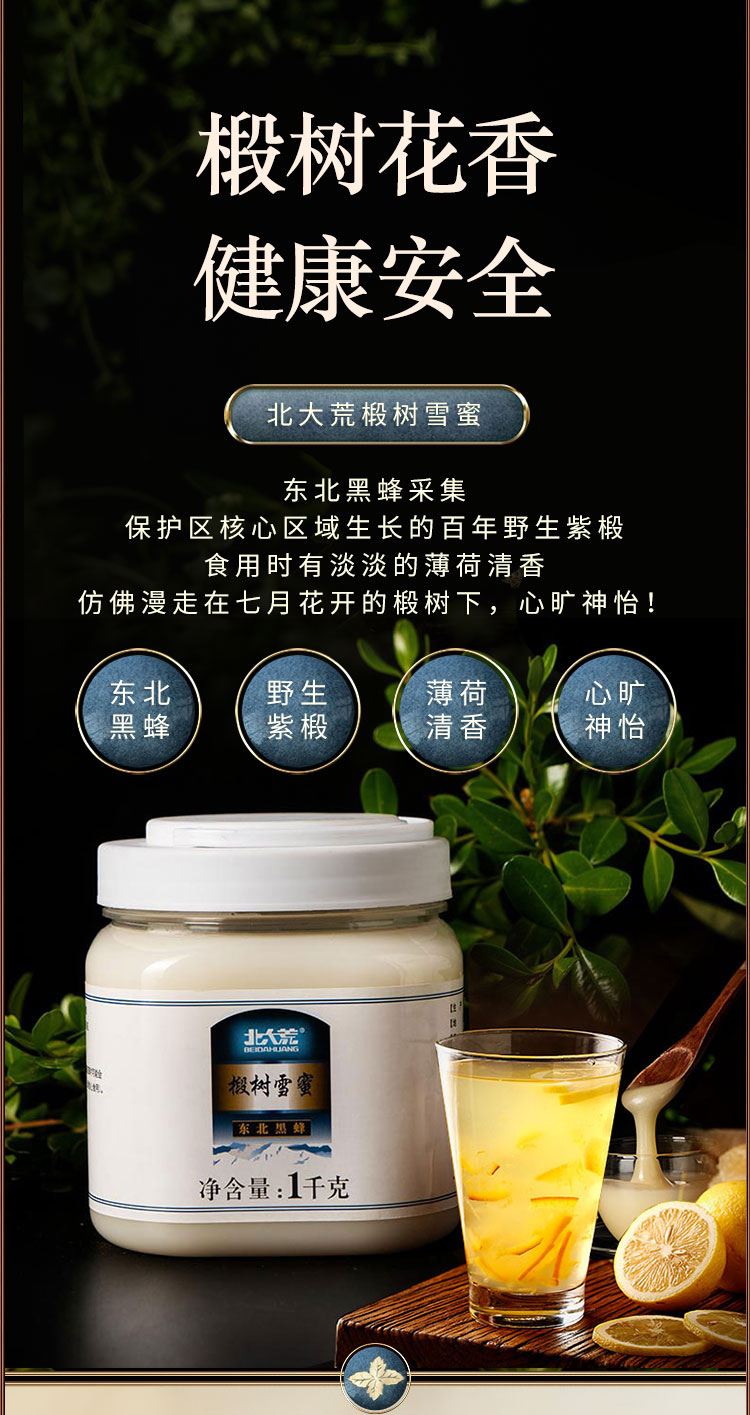 北大荒 东北黑蜂 椴树雪蜜 纯蜂蜜1000g 建三江 冲调水饮(新老包装随机发货)