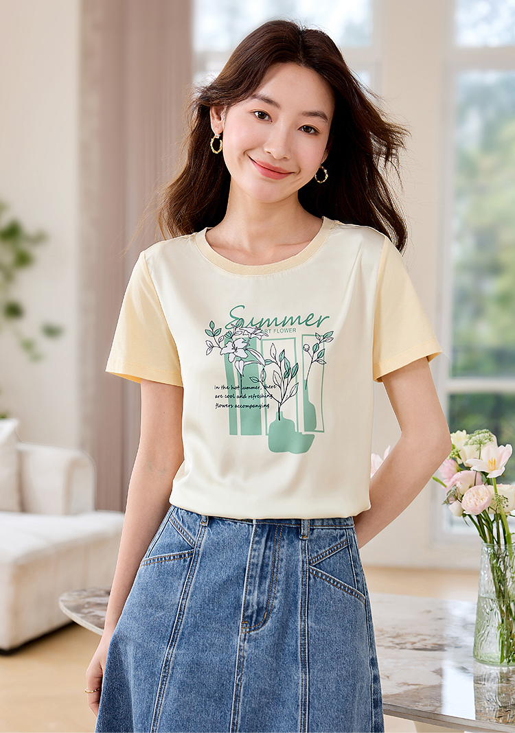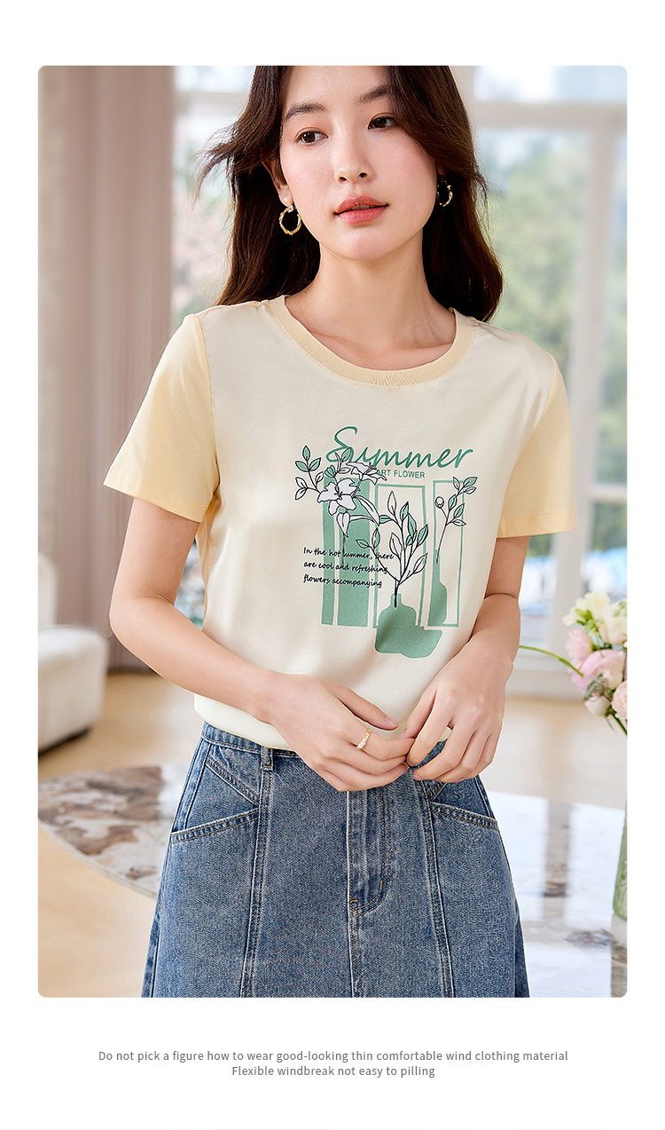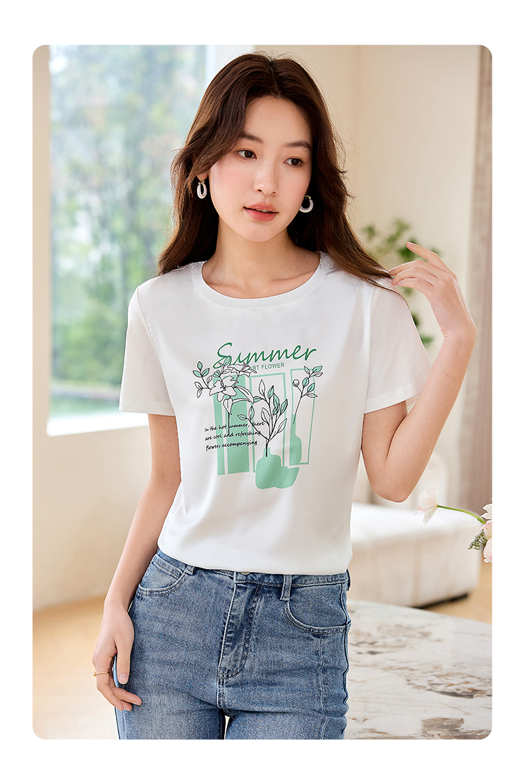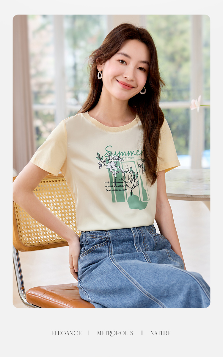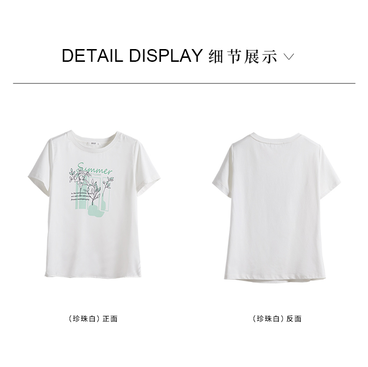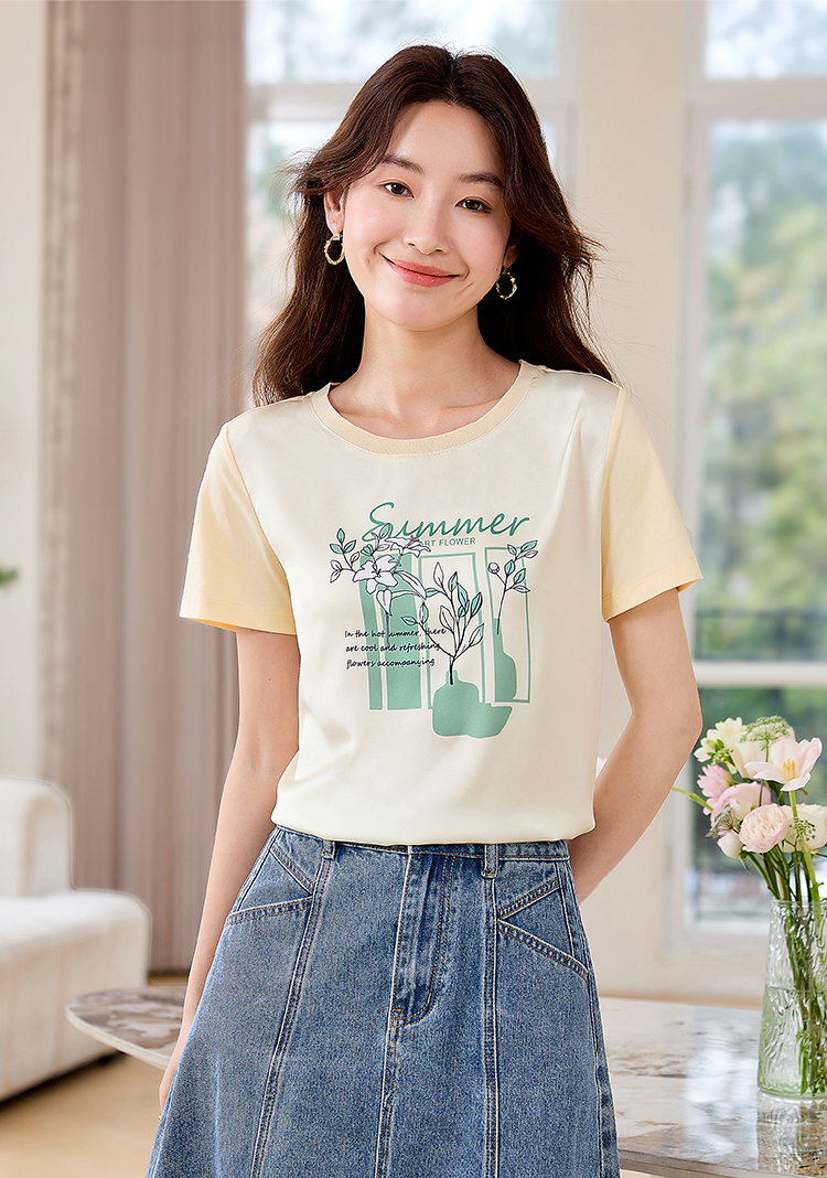 【专属特价】熙世界2025夏季新款小清新植物花卉印花T恤女短袖圆领体恤衫上衣