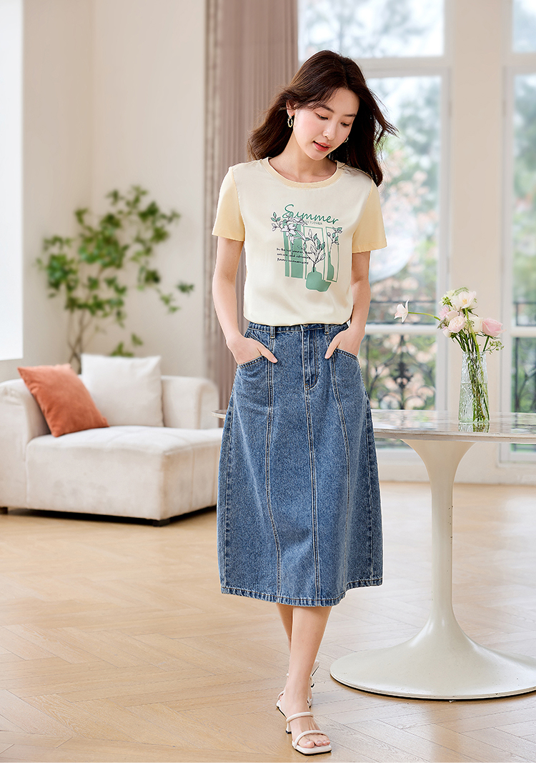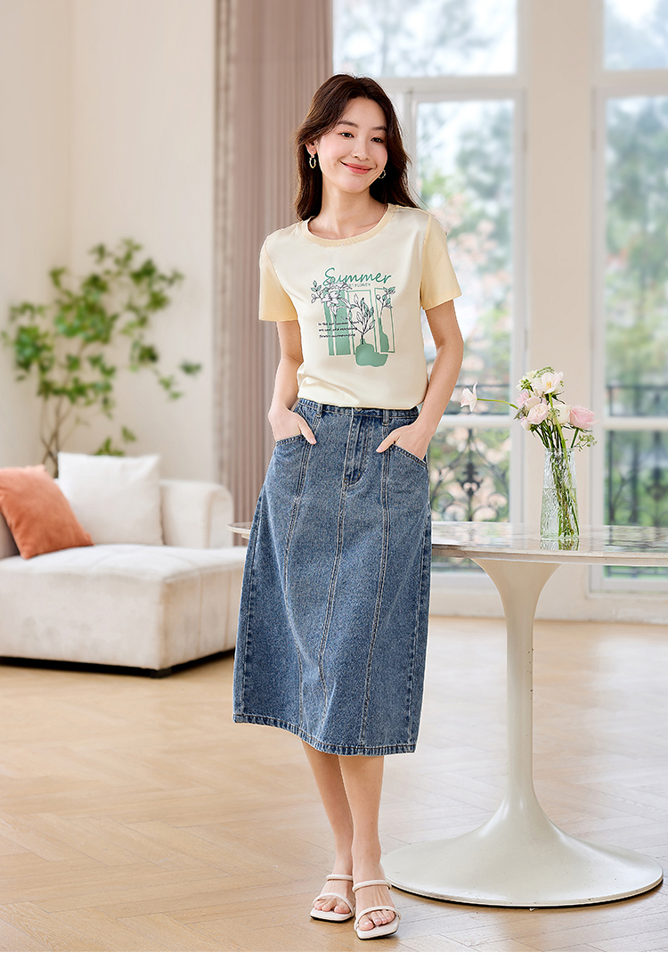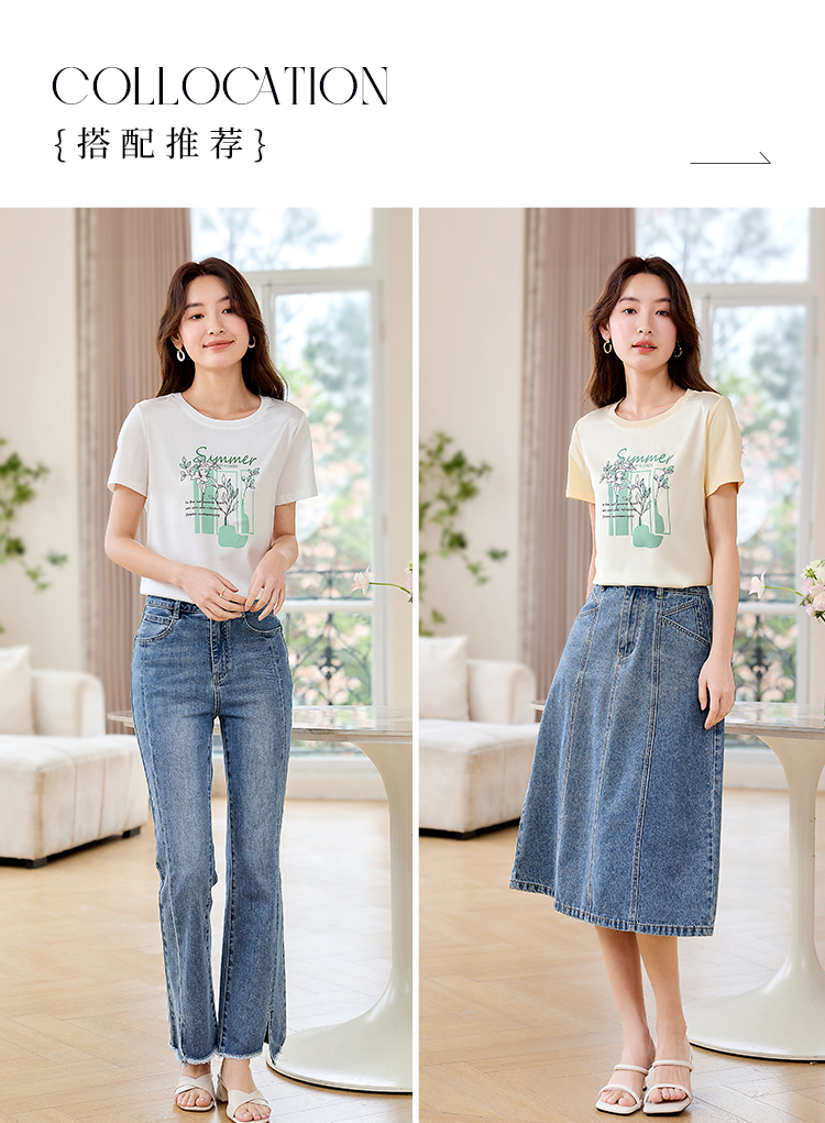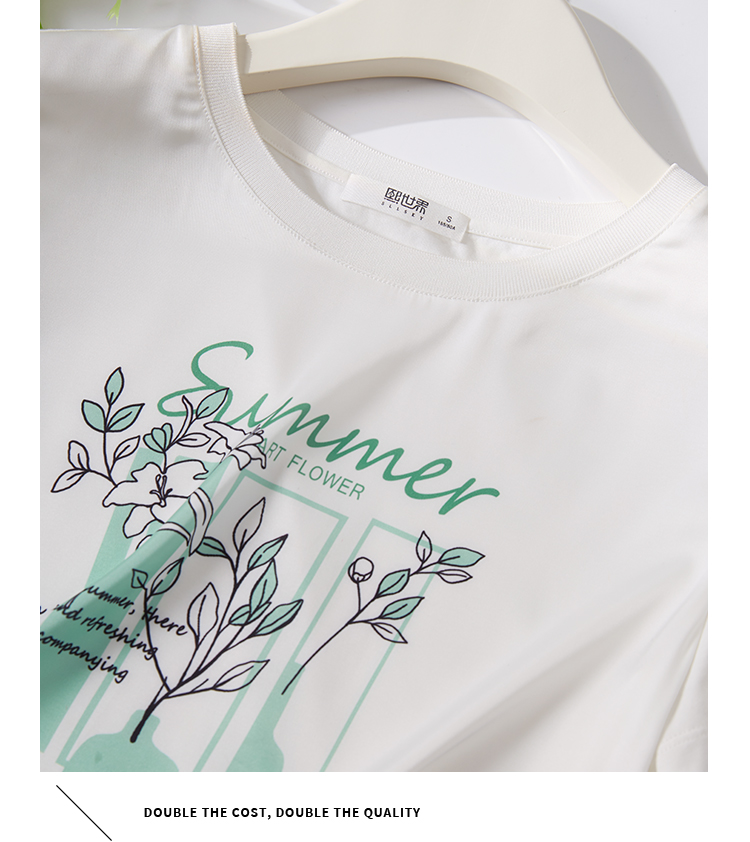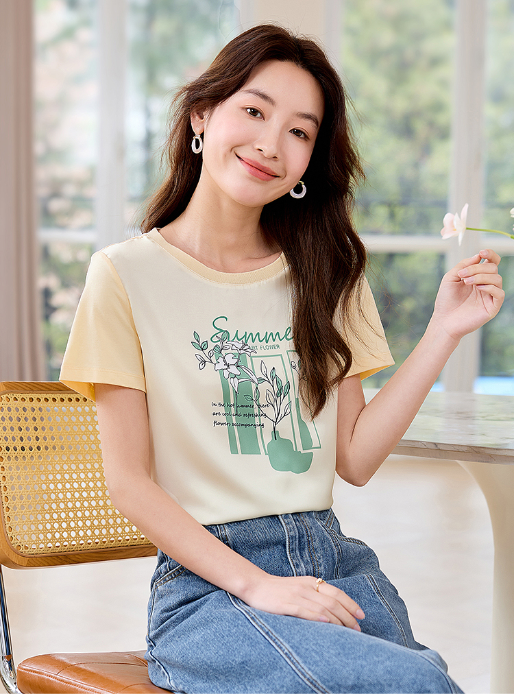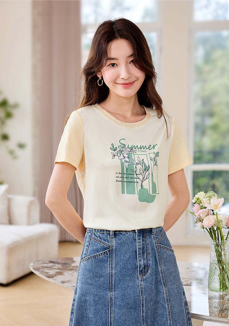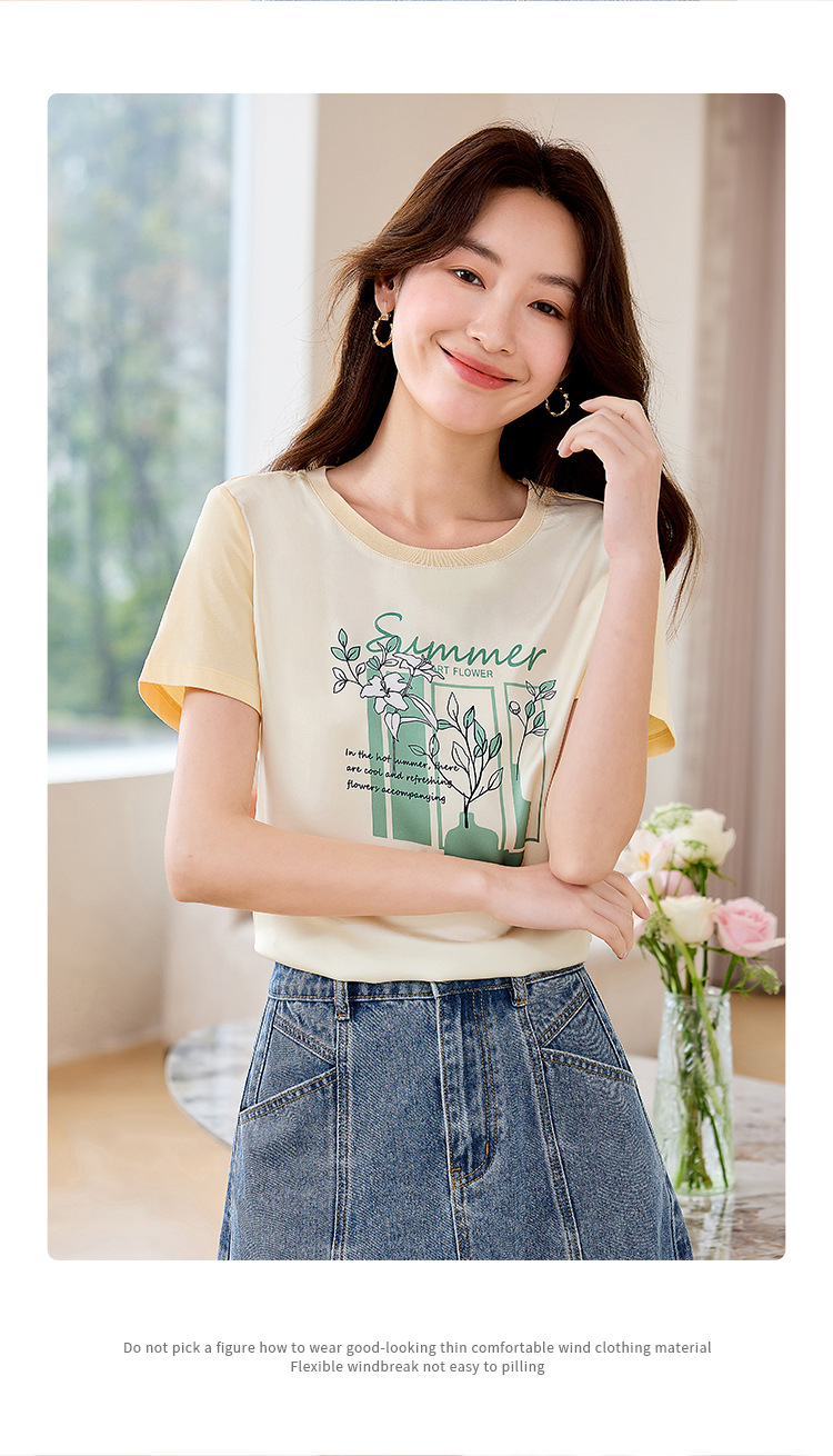【专属特价】熙世界2025夏季新款小清新植物花卉印花T恤女短袖圆领体恤衫上衣
