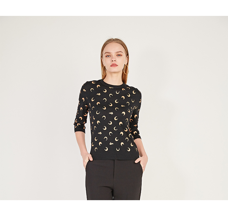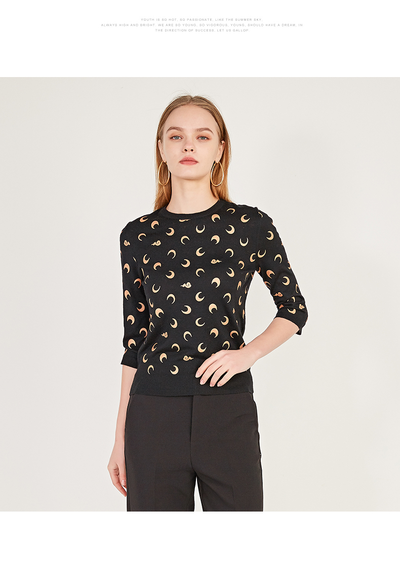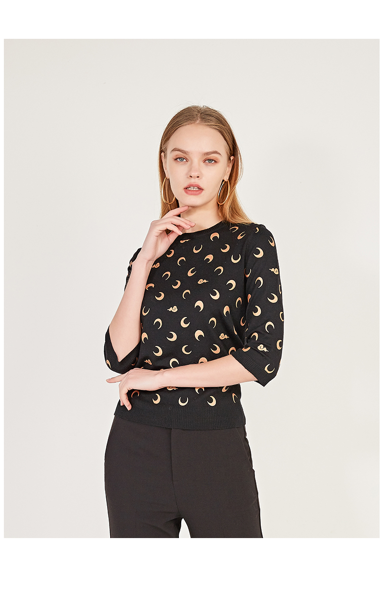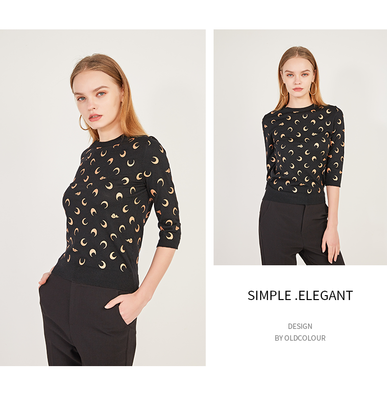 oldcolour春季圆领七分袖休闲短款含羊毛套头针织衫女N12052242