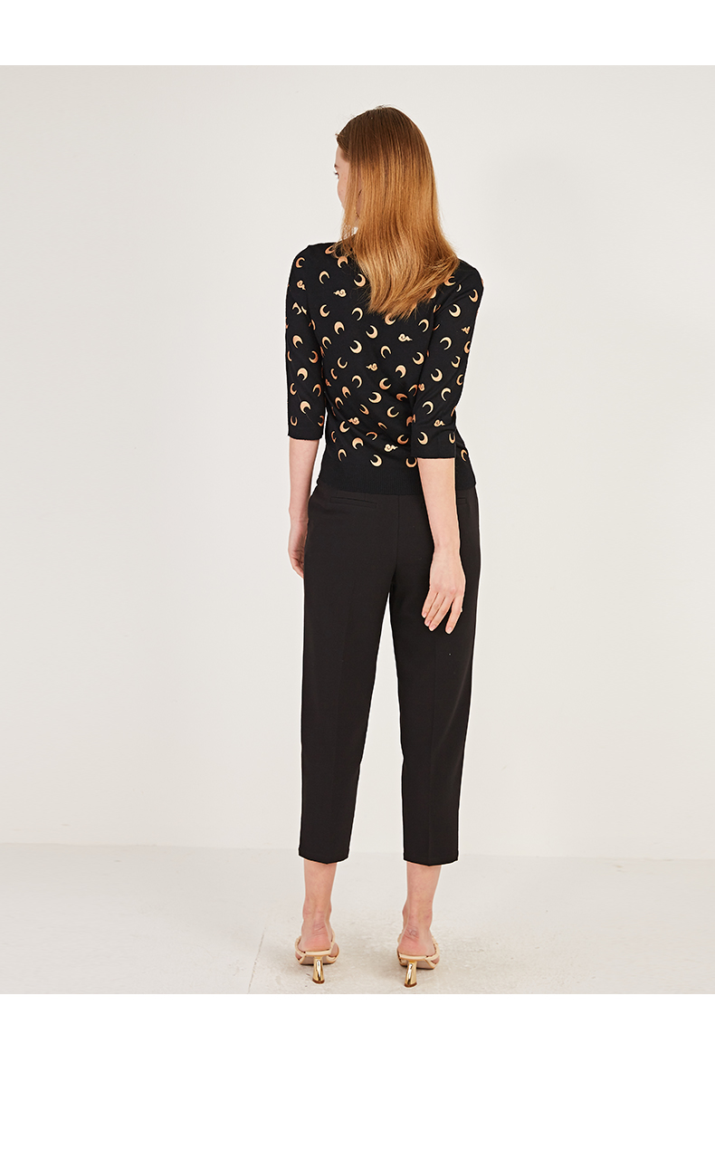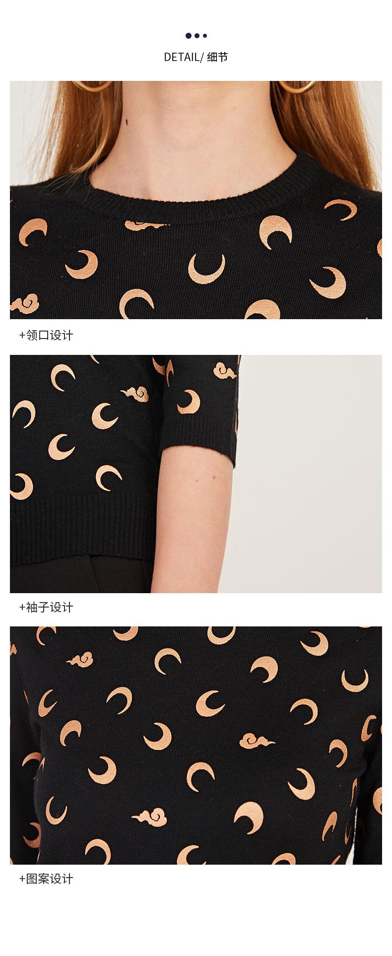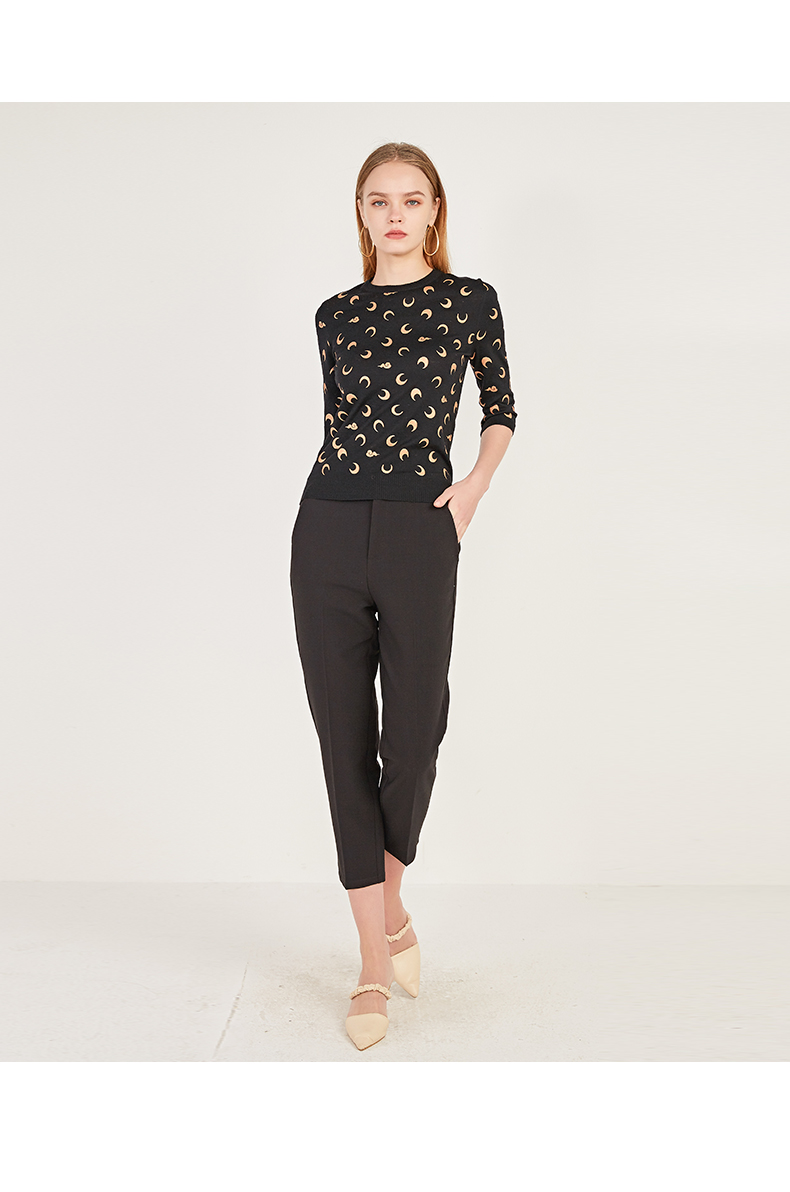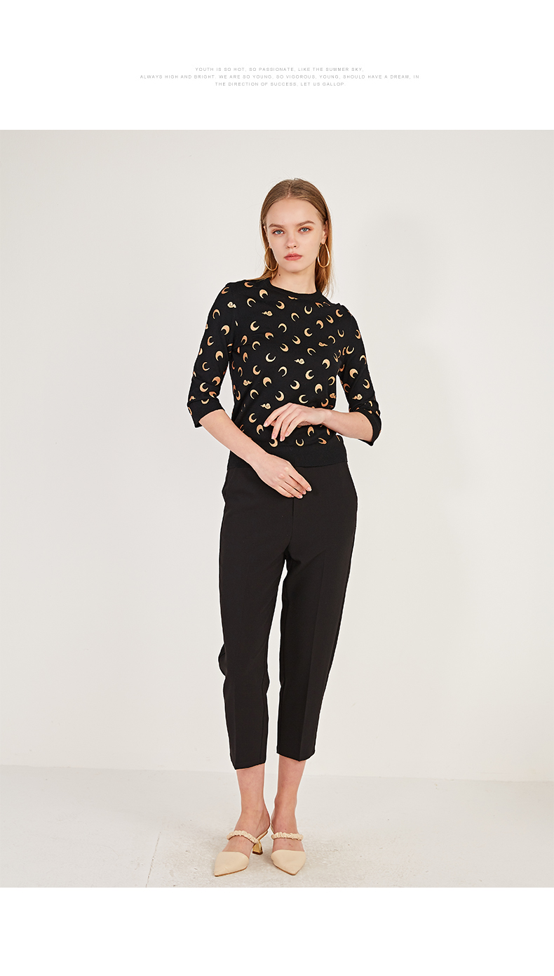 oldcolour春季圆领七分袖休闲短款含羊毛套头针织衫女N12052242