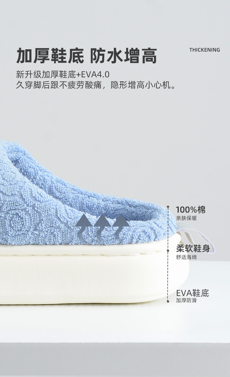 洁丽雅棉拖鞋女毛巾拖厚底蛋糕拖室内保暖产后月子鞋冬可外穿居家