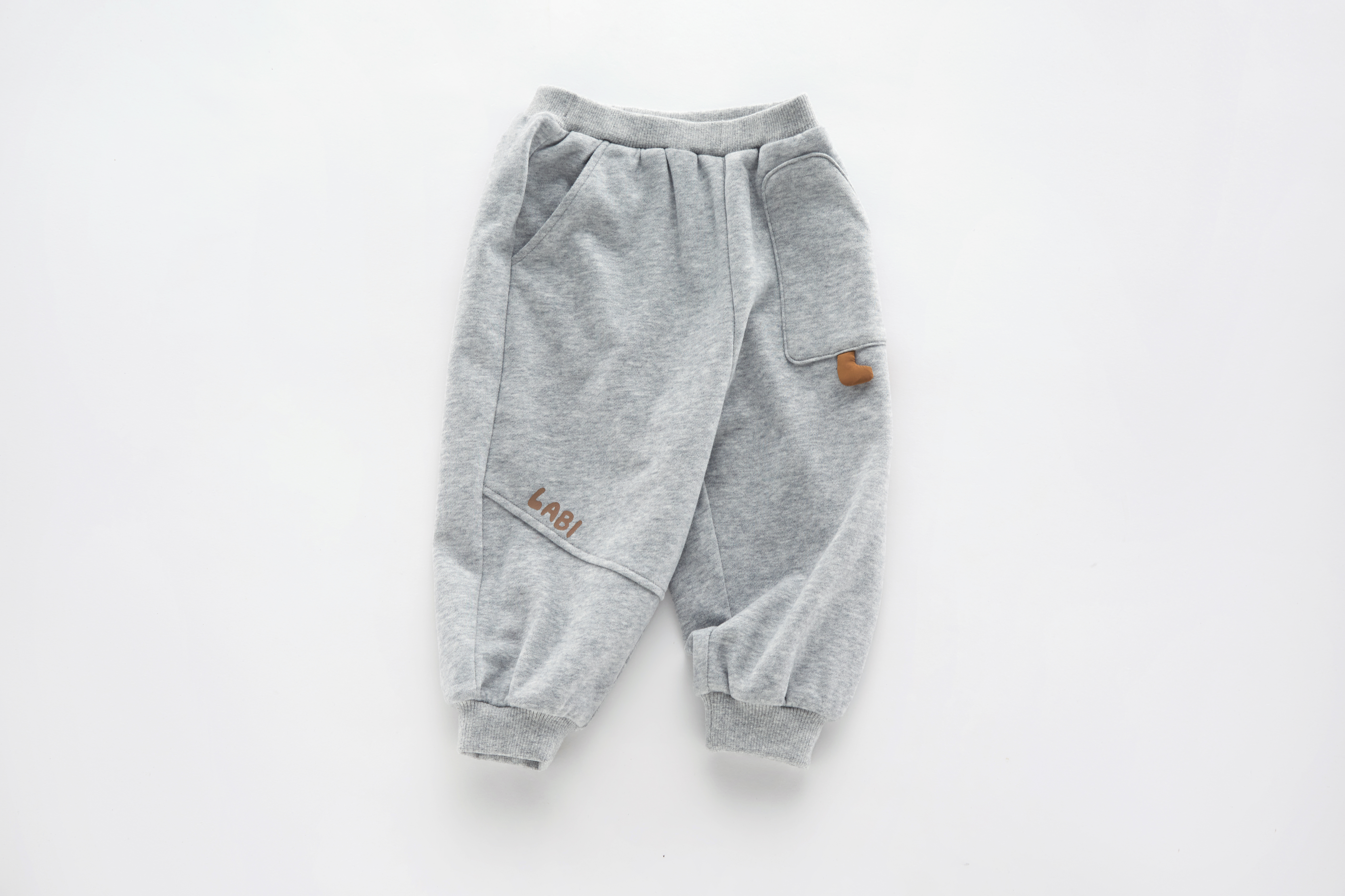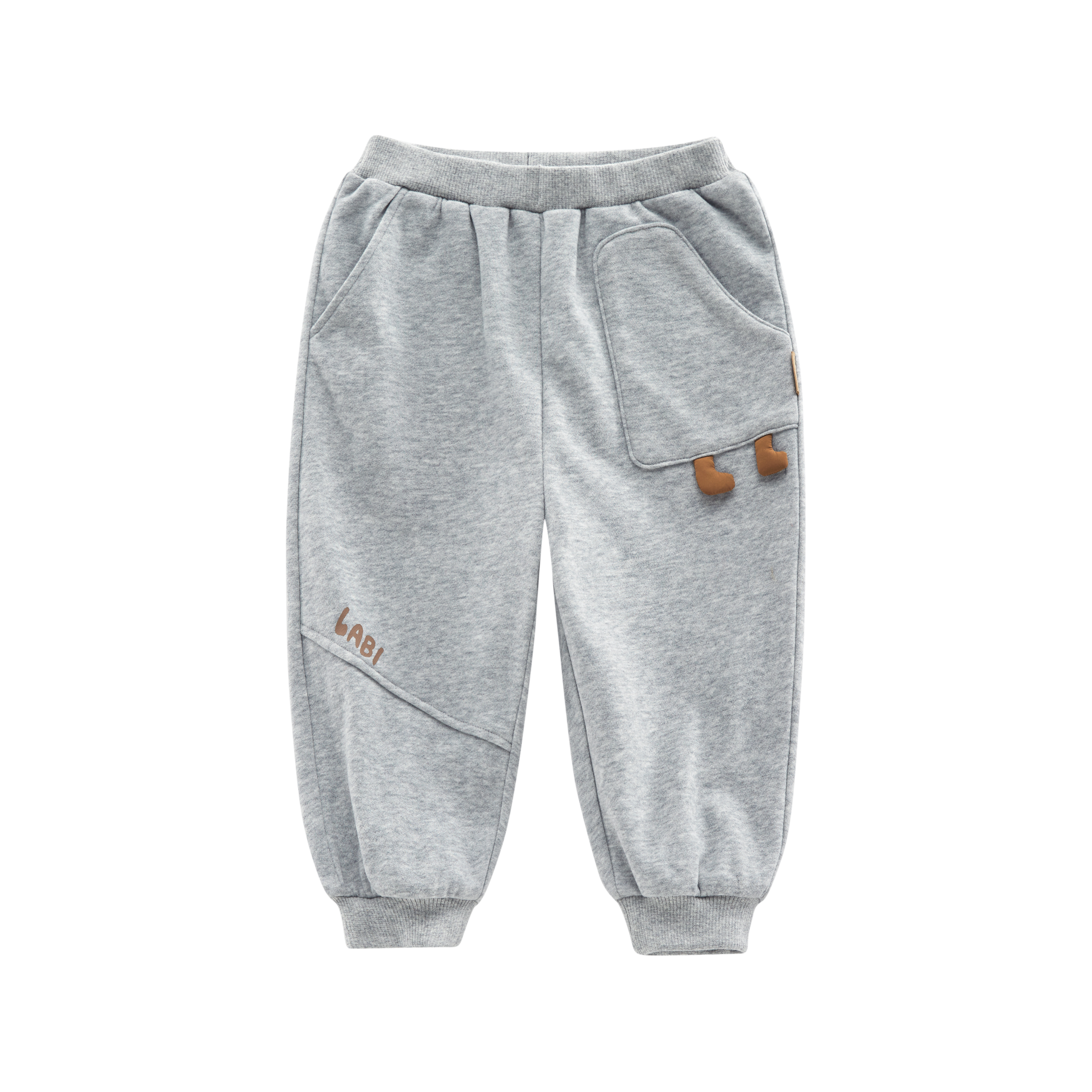 拉比童衣-3休闲i5贴袋束口长裤花灰