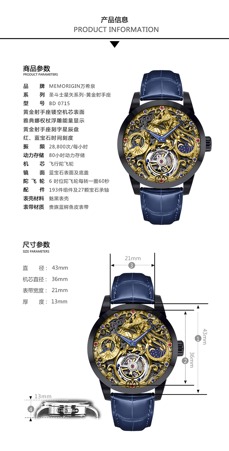 MEMORIGIN万希泉圣斗士星矢黄金十二宫射手座陀飞轮手表限量腕表