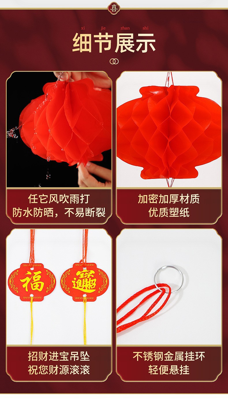 大红喜庆蜂窝塑纸灯笼结婚庆挂饰新年商场开业布置用品折