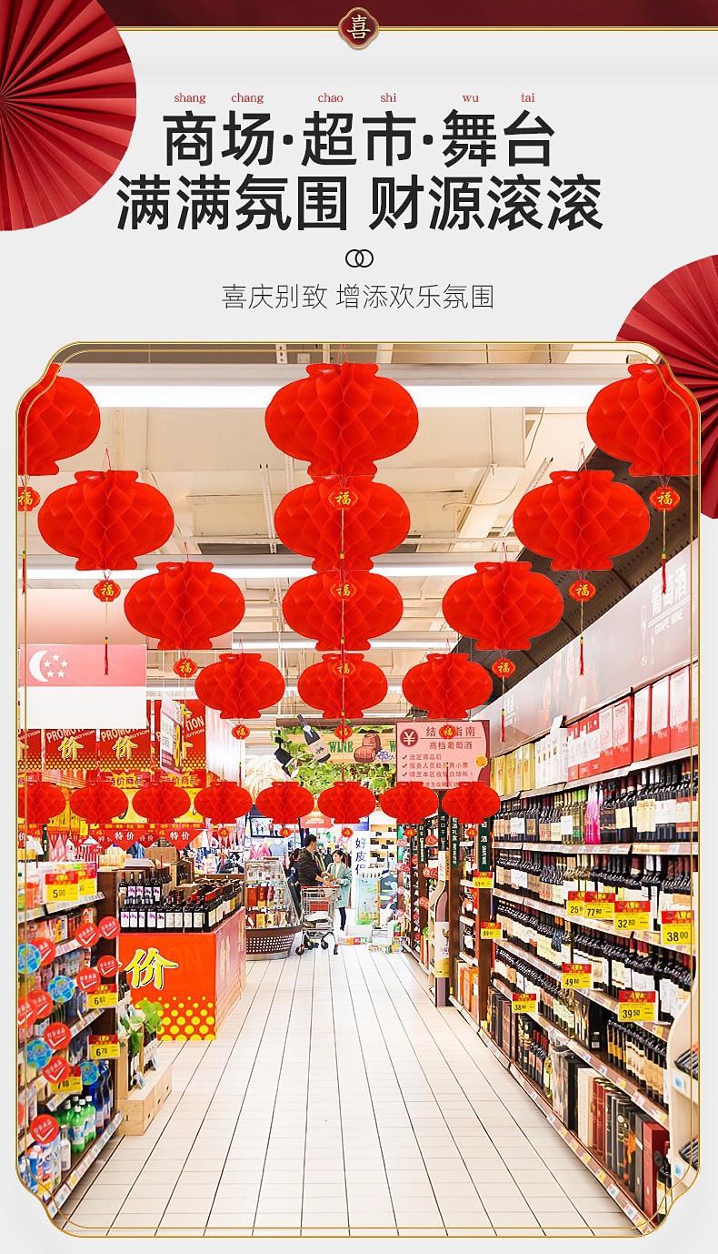 塑纸灯笼喜庆蜂窝大红色小灯笼挂饰开业商场布置新年春节