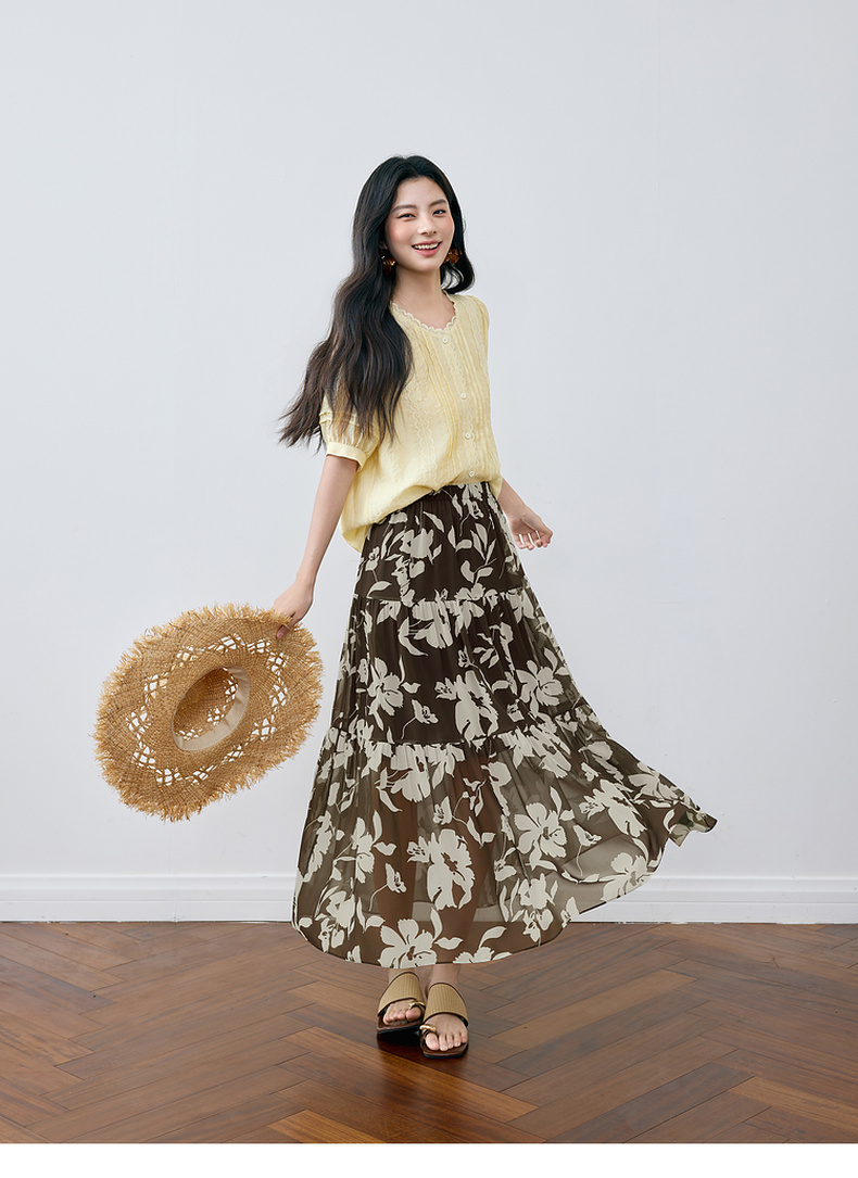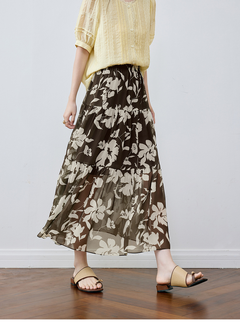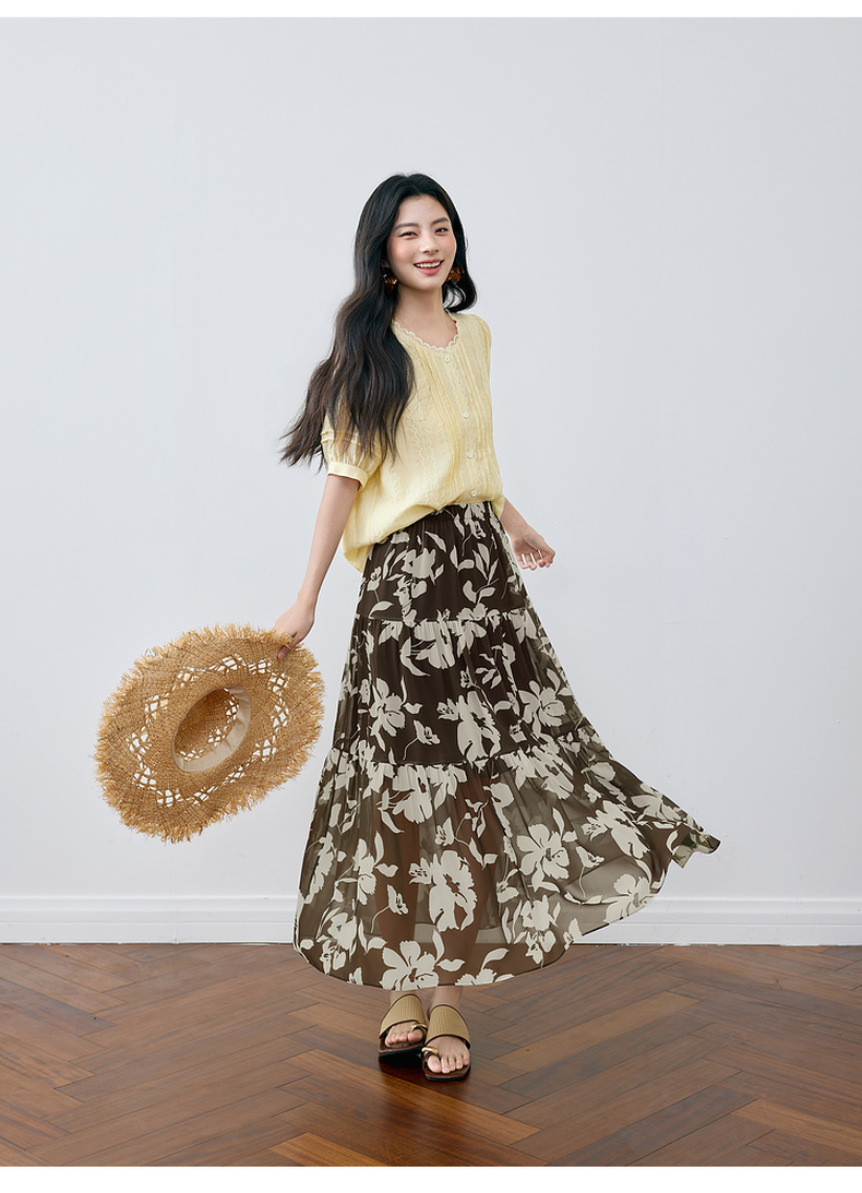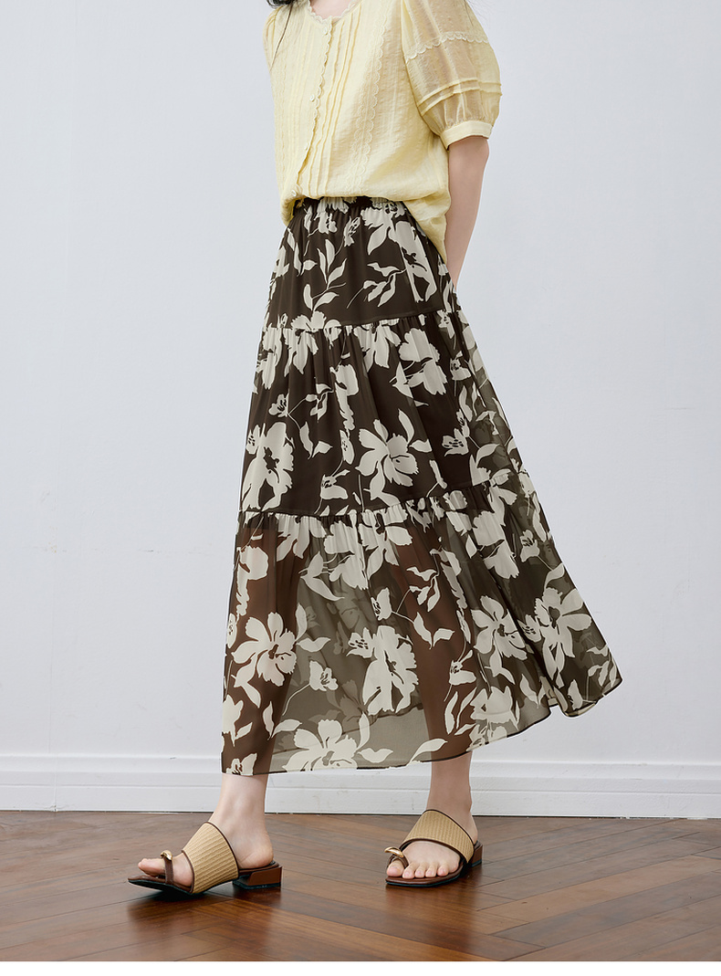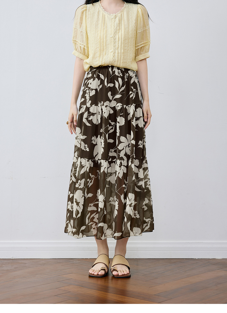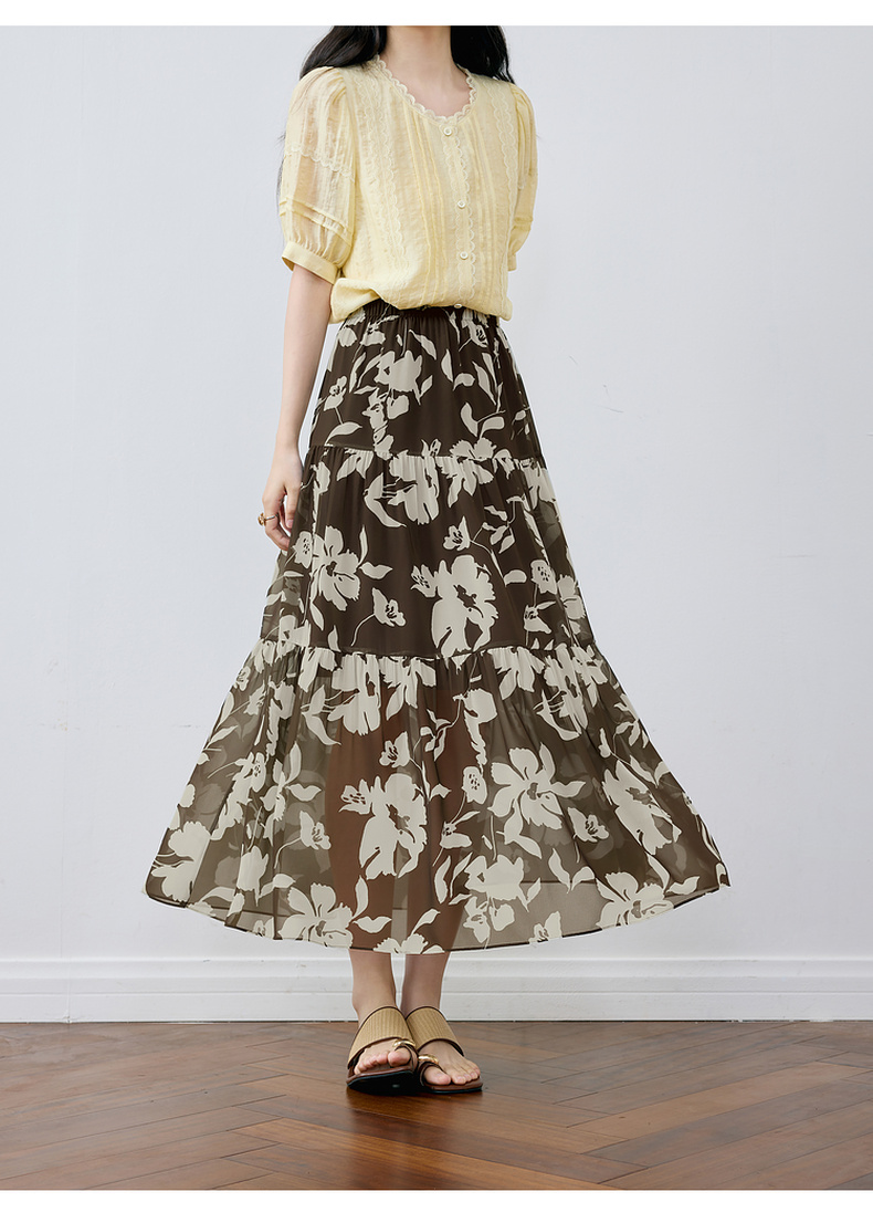 【严选】诗凡黎A字剪影碎花半身裙2025夏新款松紧腰复古气质轻盈飘逸长裙7G6240351