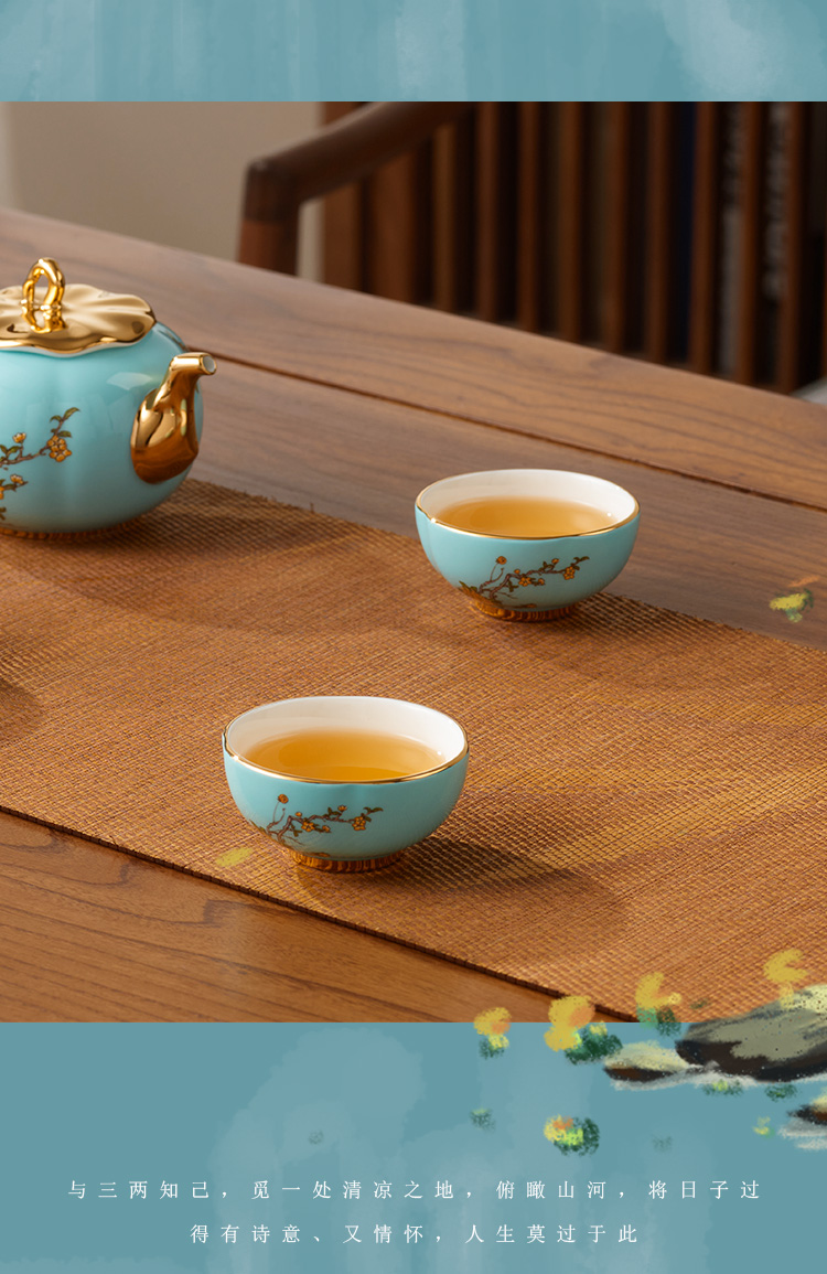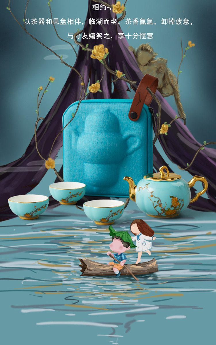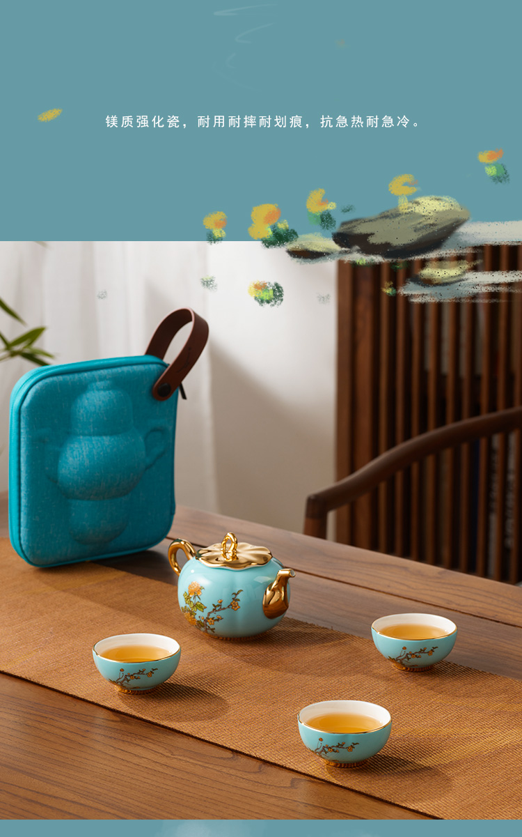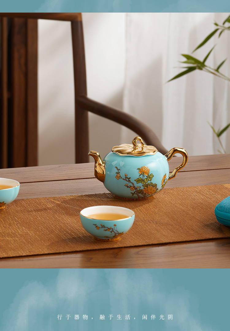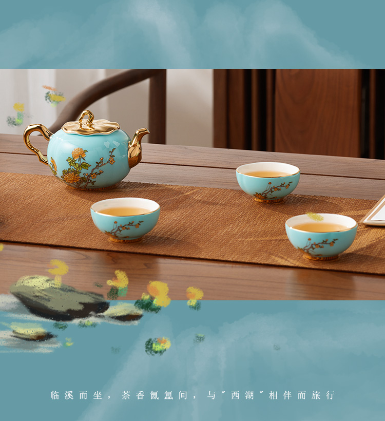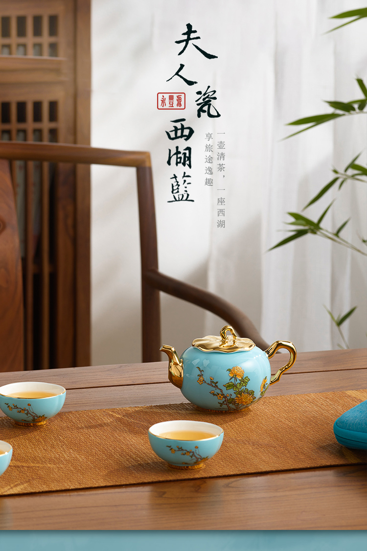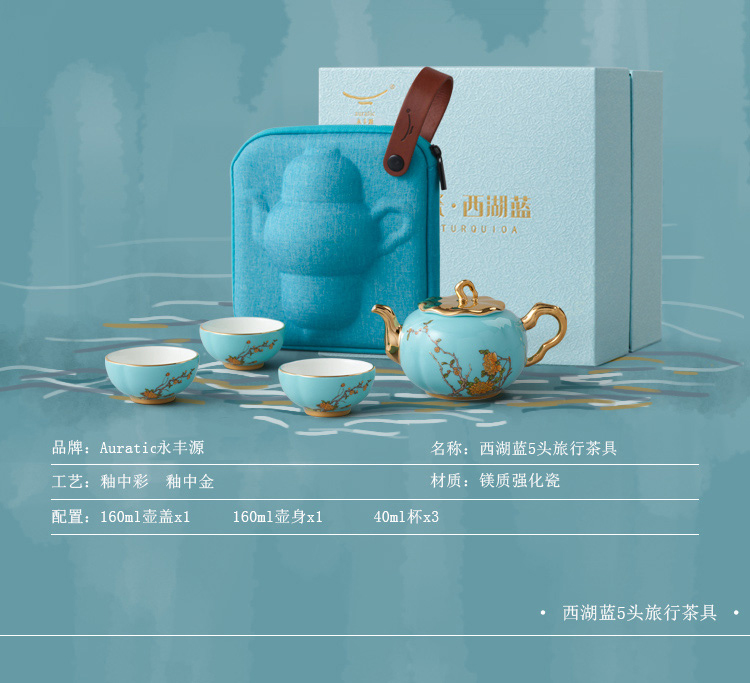【国瓷·永丰源】西湖蓝5头旅行茶具 精致小茶杯旅行套装