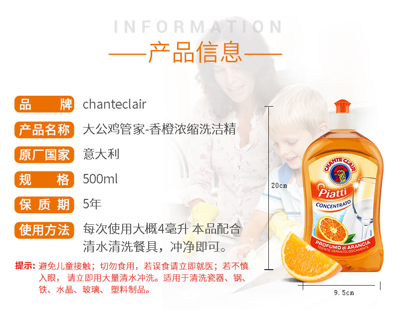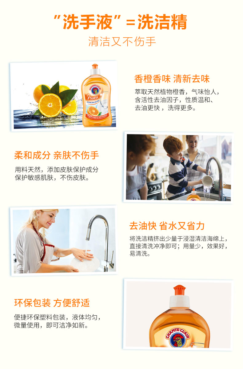 意大利大公鸡浓缩洗洁精 家用厨房果蔬餐具专用洗涤剂 小瓶去油污
