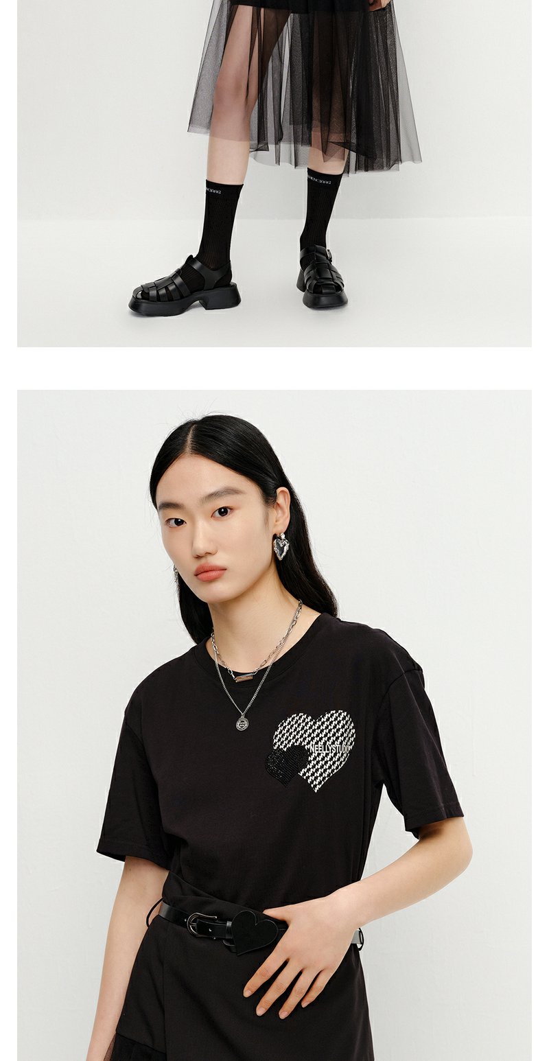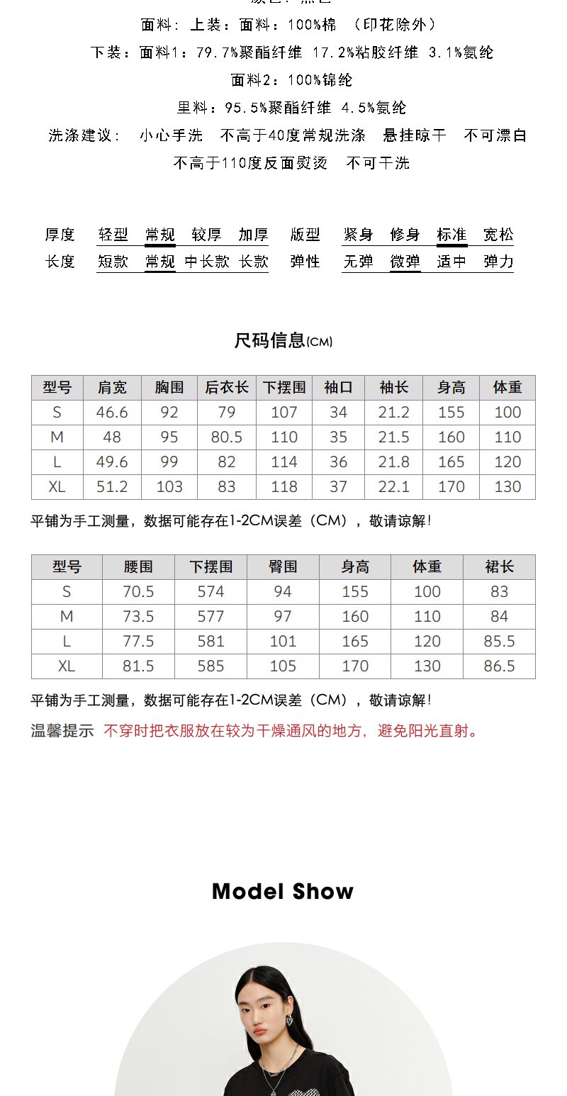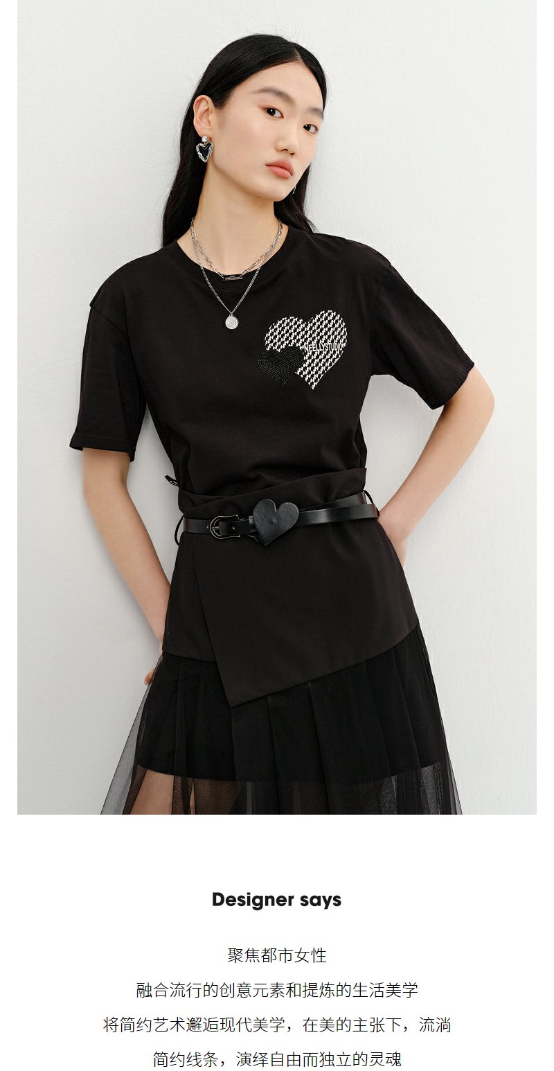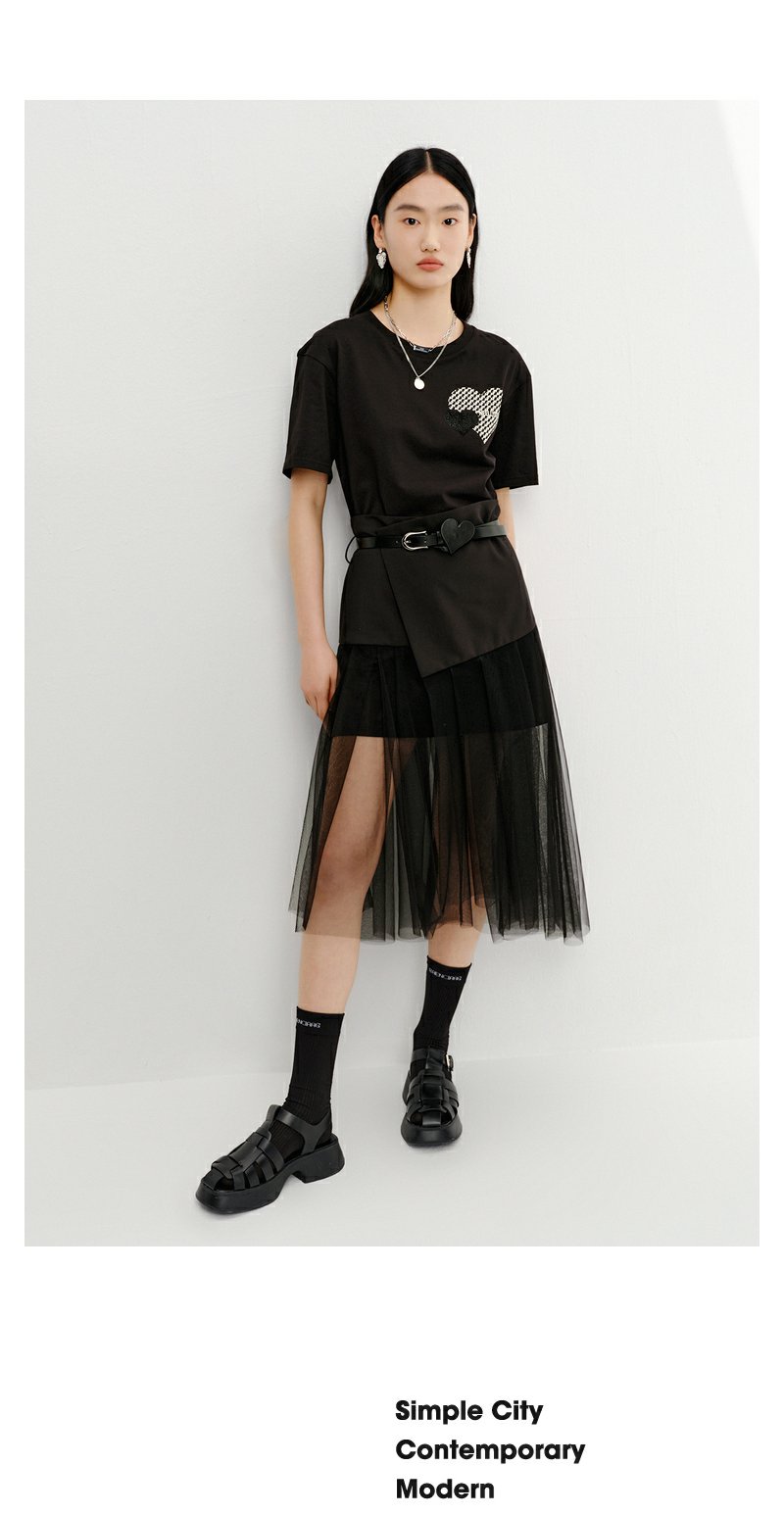 NEELLY纳俪夏季新款黑色圆领T恤女时尚套装不规则纱裙百搭显瘦N23041Z01014