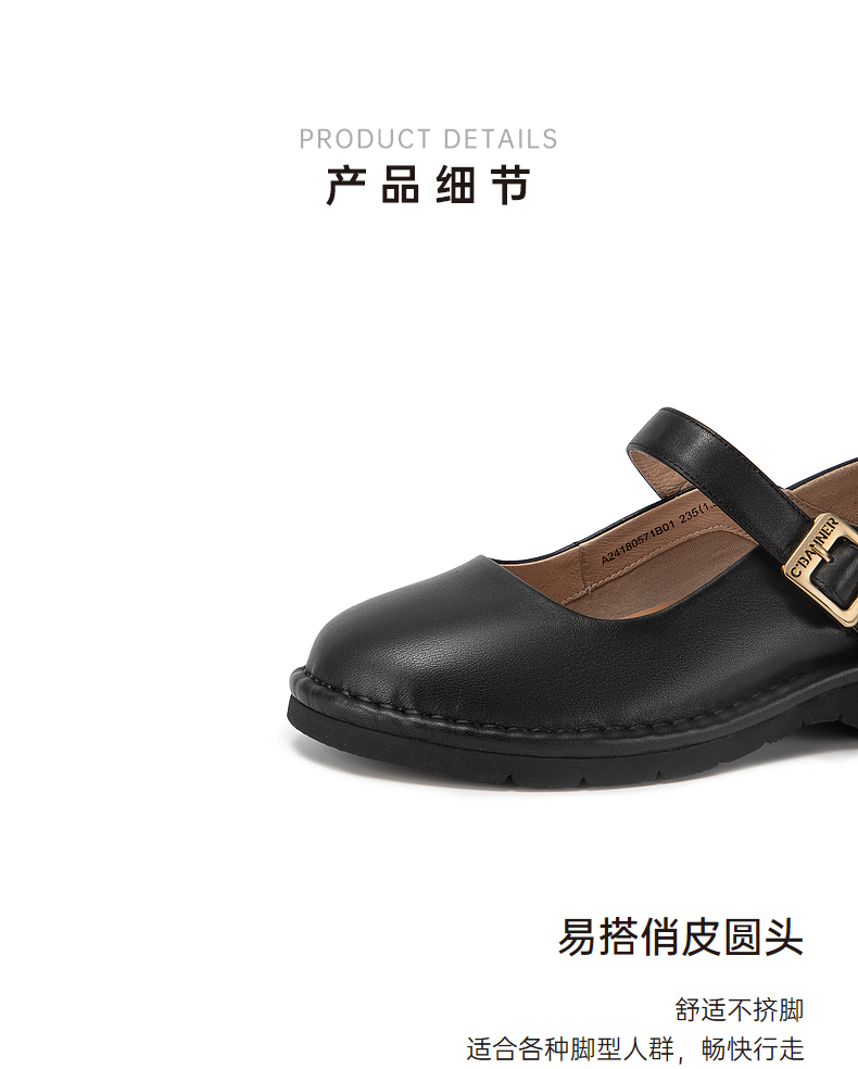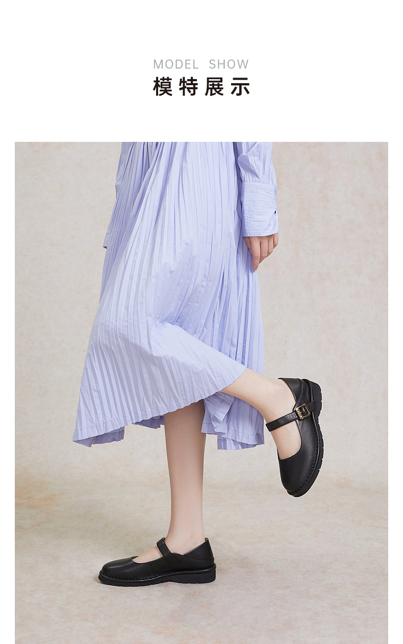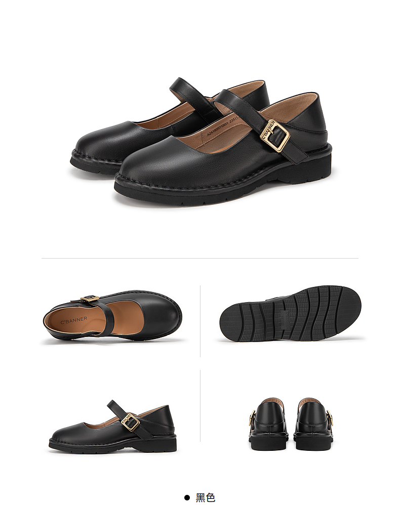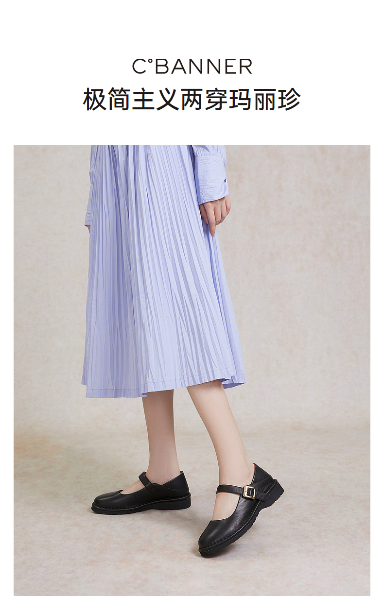 千百度小香风玛丽珍鞋女春季晚晚鞋温柔风单鞋真皮两穿A24180571