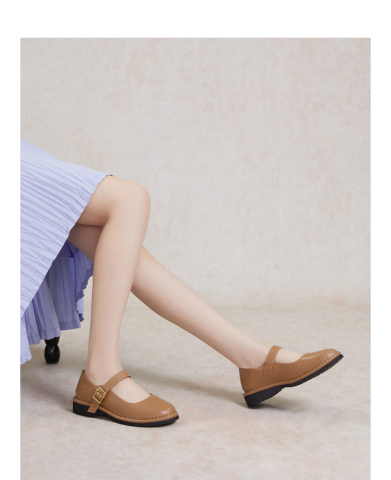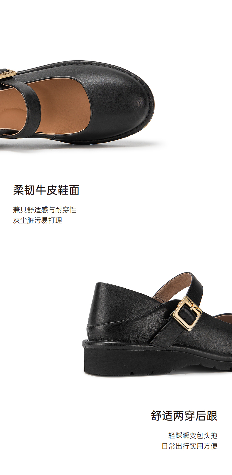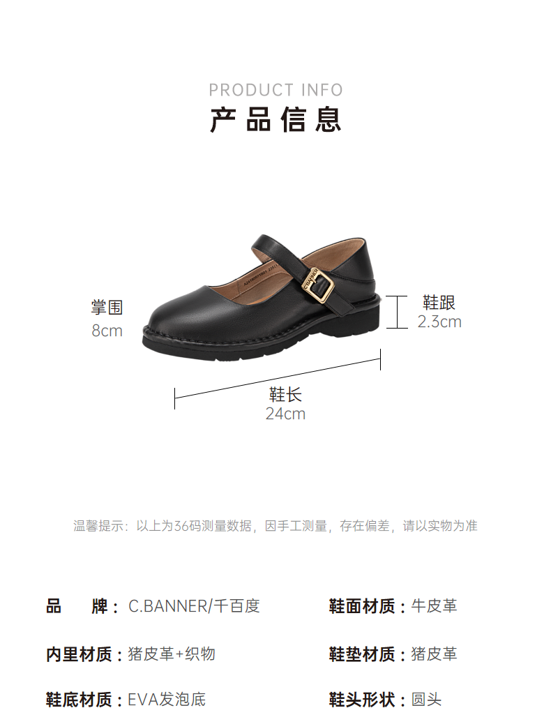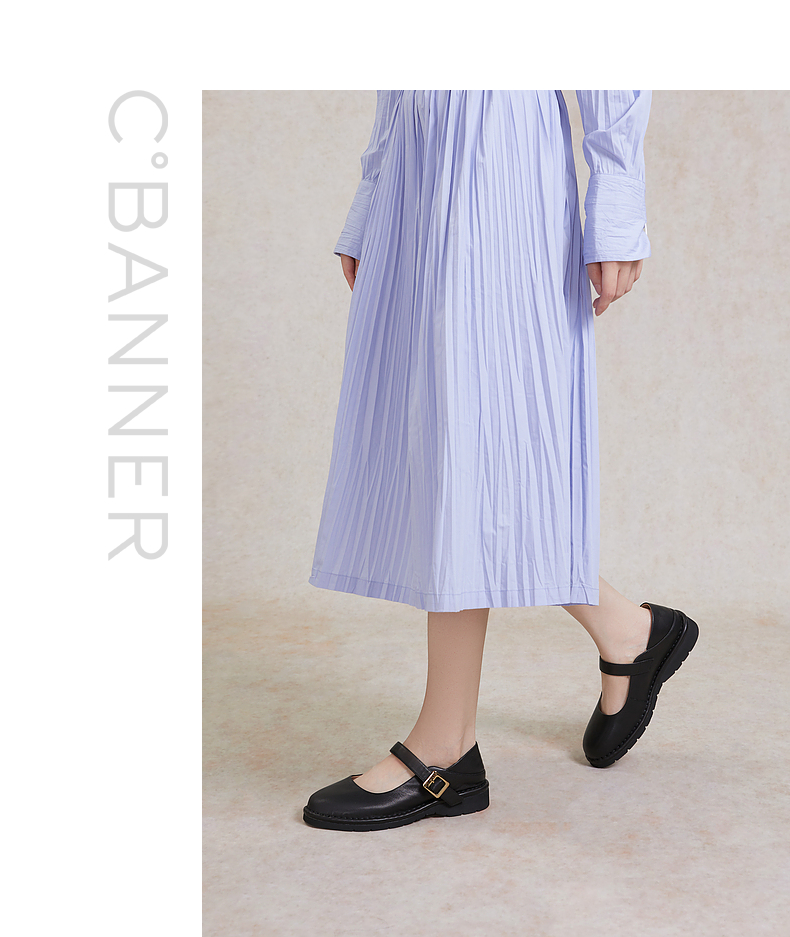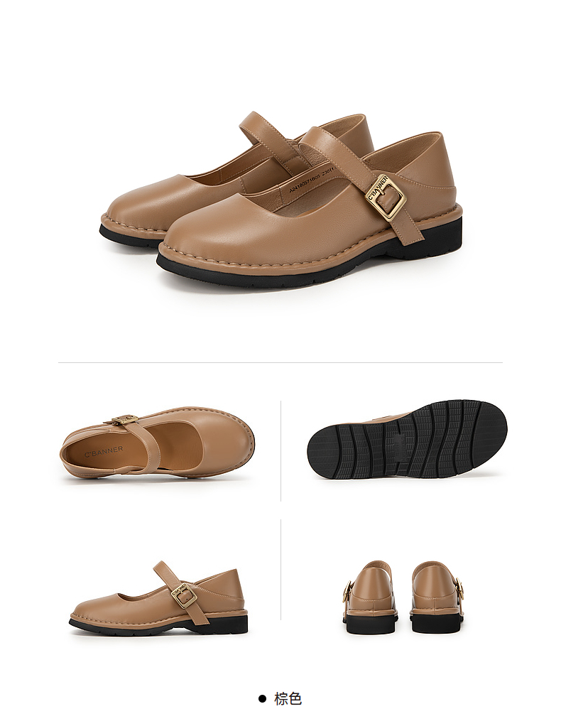千百度小香风玛丽珍鞋女春季晚晚鞋温柔风单鞋真皮两穿A24180571