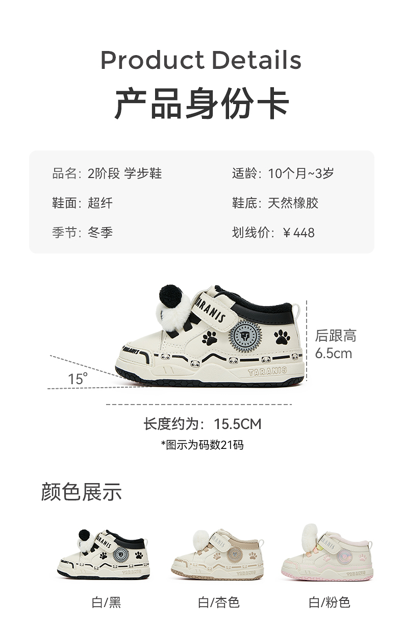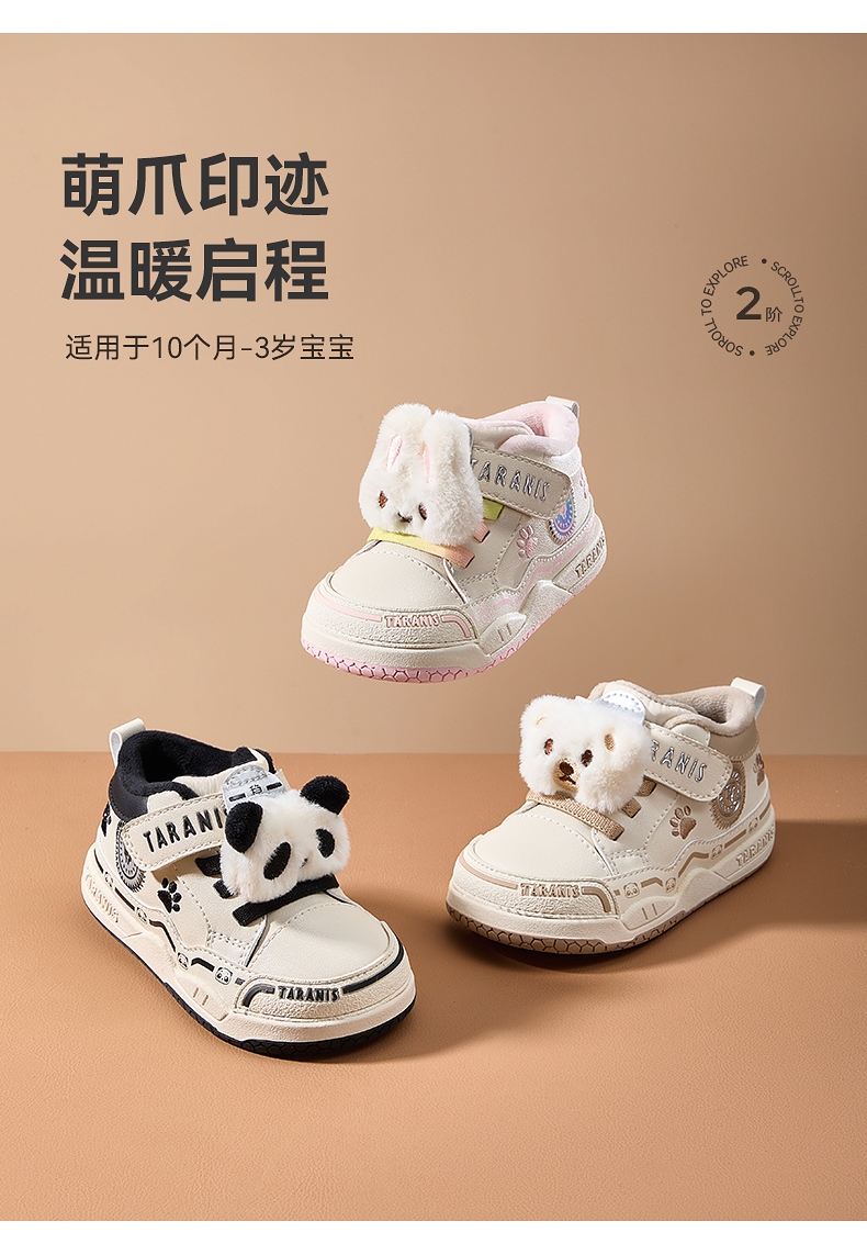 泰兰尼斯211冬季新款童鞋学步鞋男童加绒保暖女童棉鞋防踢机能鞋T25T5D6785