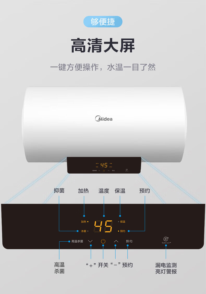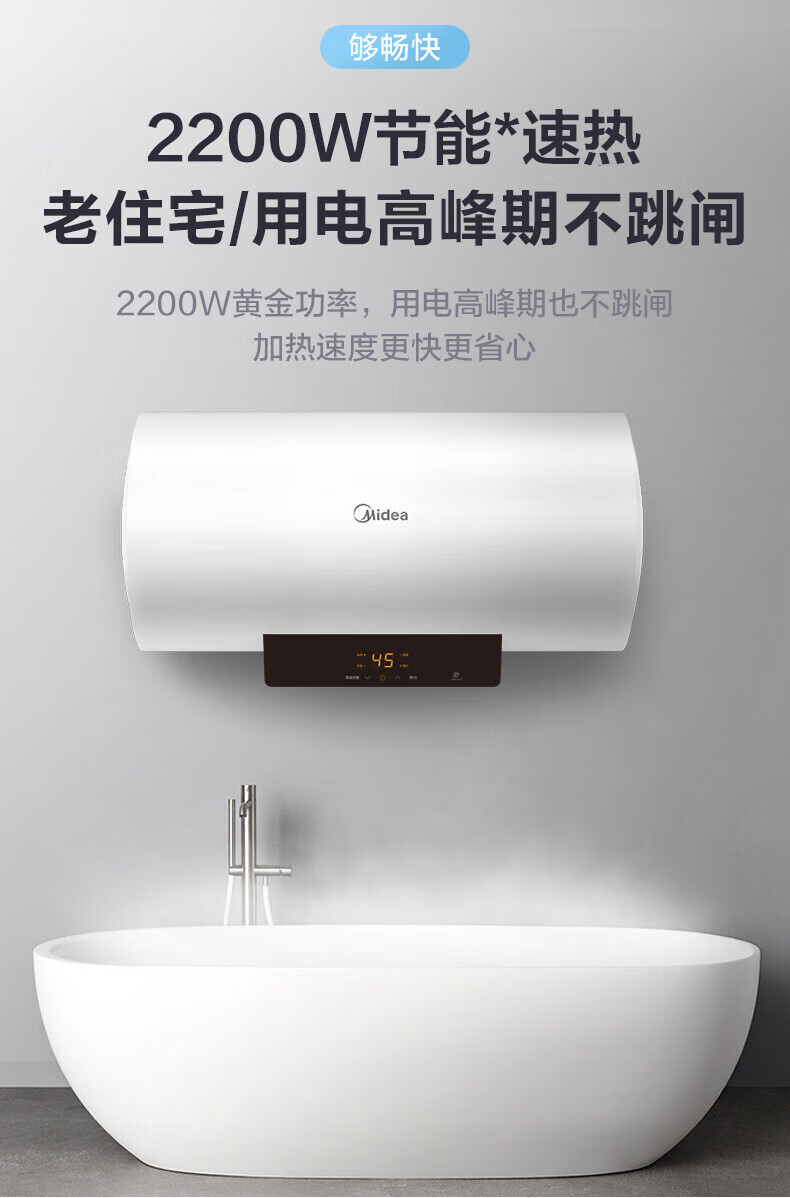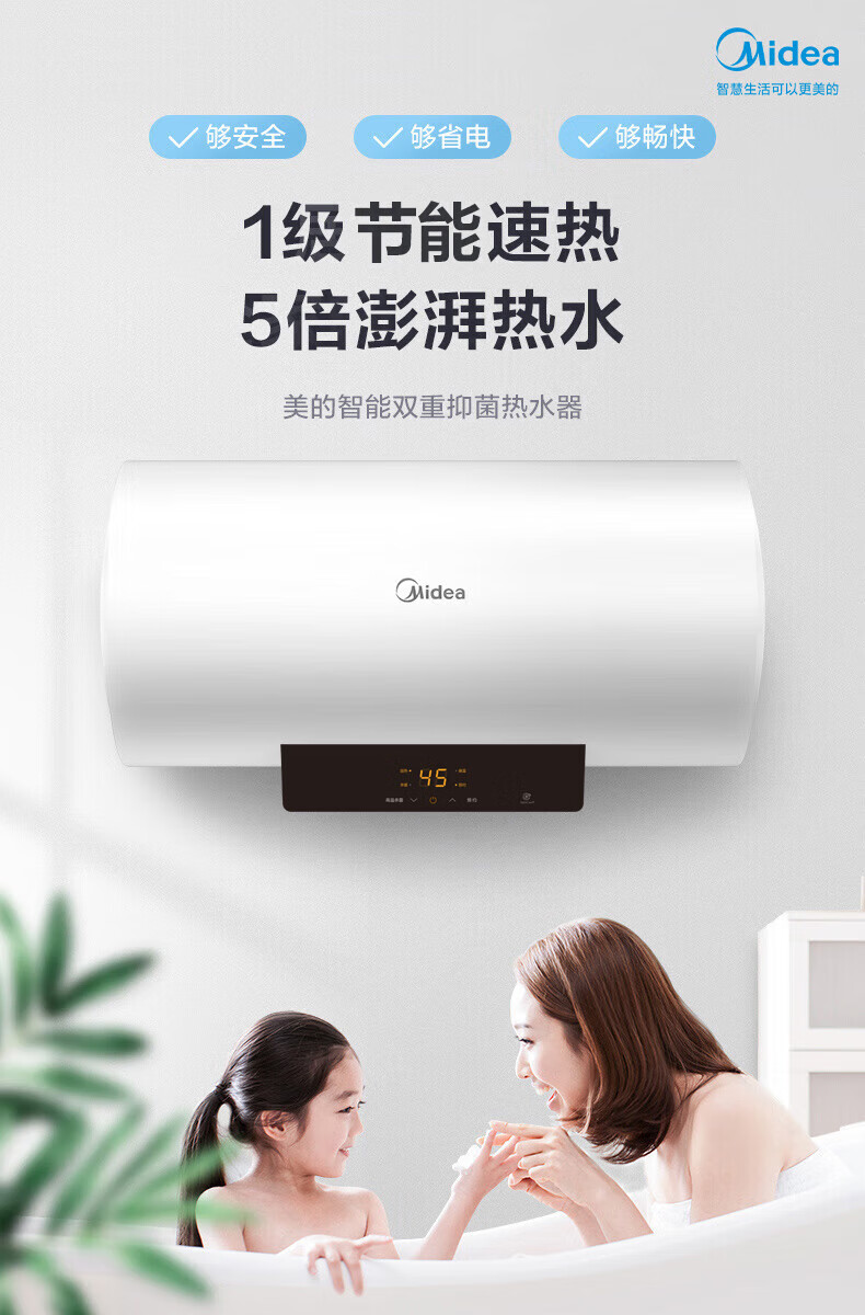 美的(Midea)储水式电热水器电50升大水量智控速热数显一级节能省电安全防电墙智能大屏家电2-3人洗F5021-X1(S)