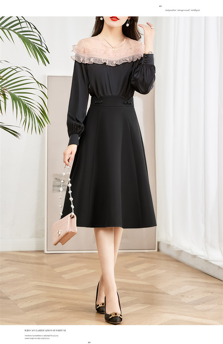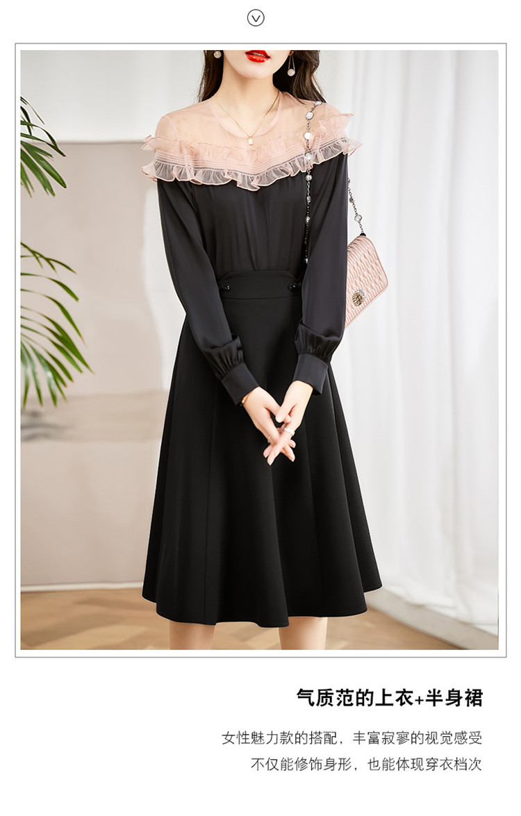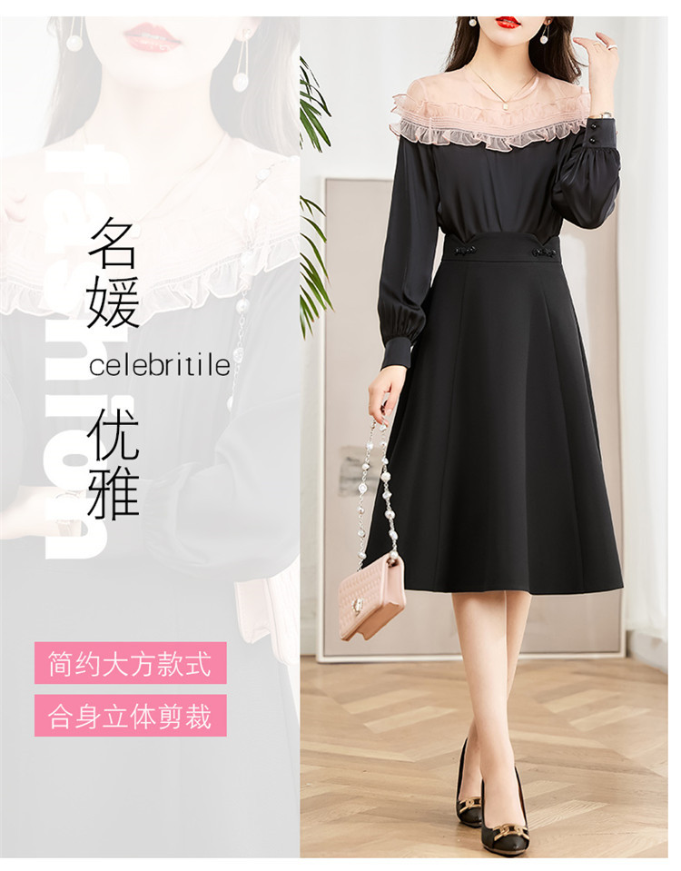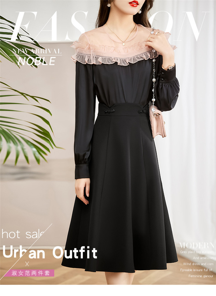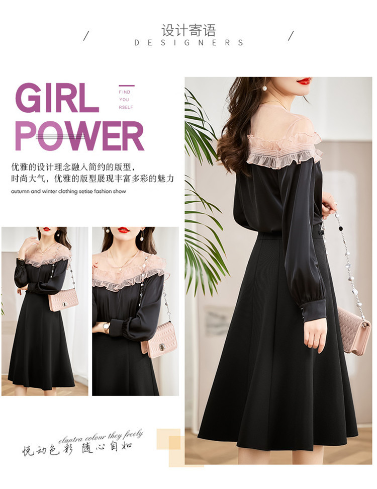 蕾丝拼接时尚休闲舒适名媛气质修身显瘦两件套套裙HR-WM80029