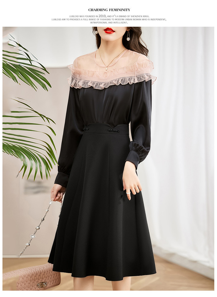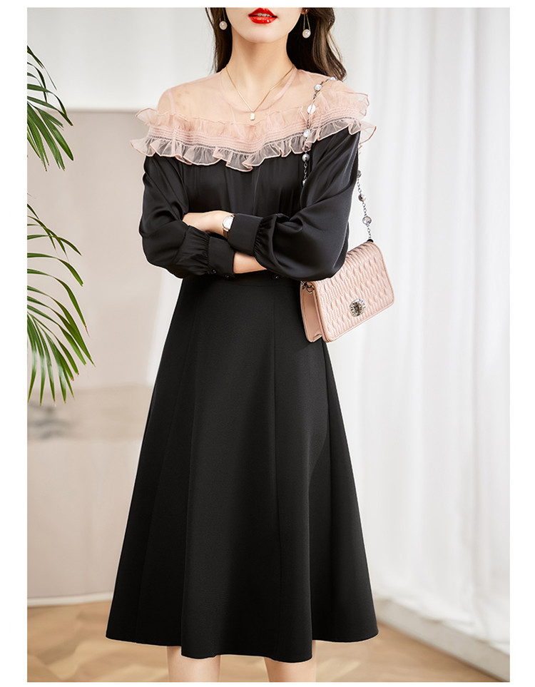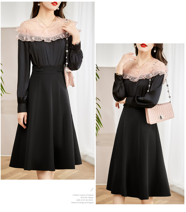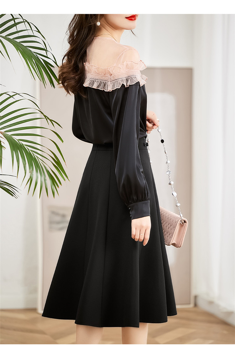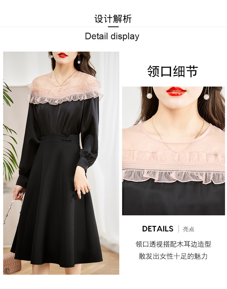 蕾丝拼接时尚休闲舒适名媛气质修身显瘦两件套套裙HR-WM80029