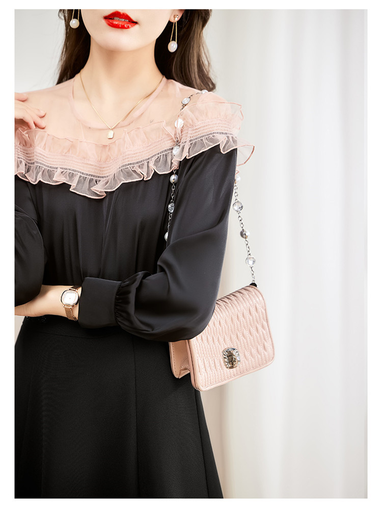 保暖洋气,拼接网纱加绒加厚打底衫KQL-1698
