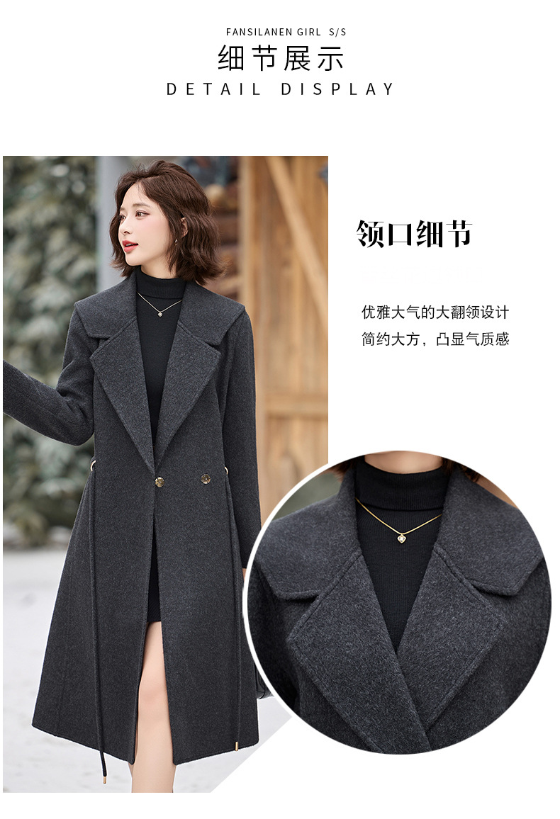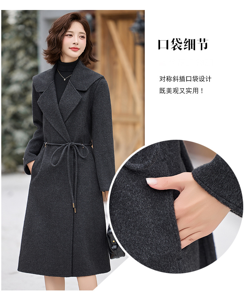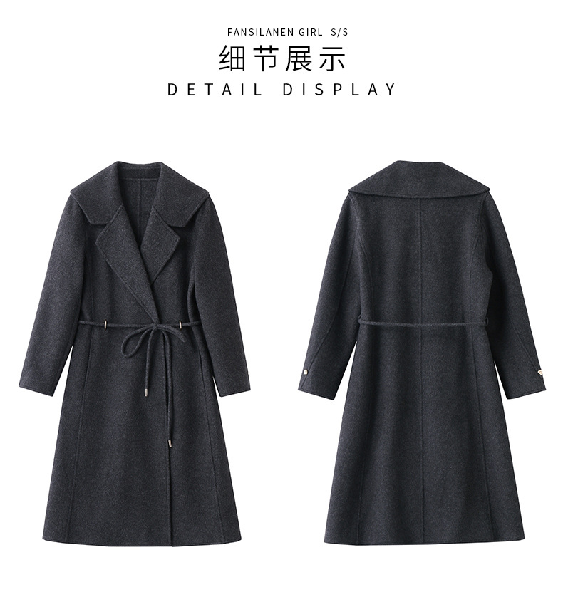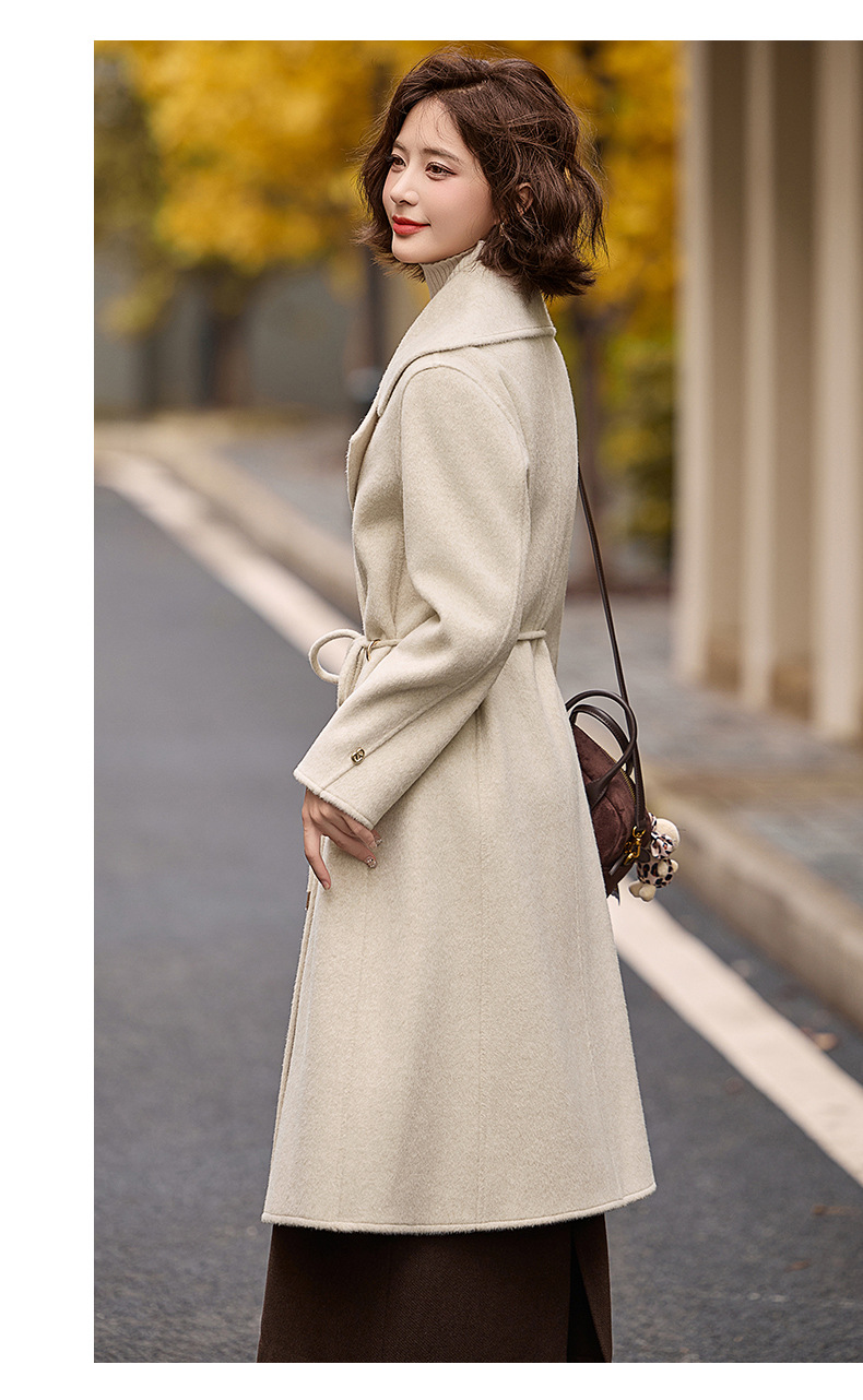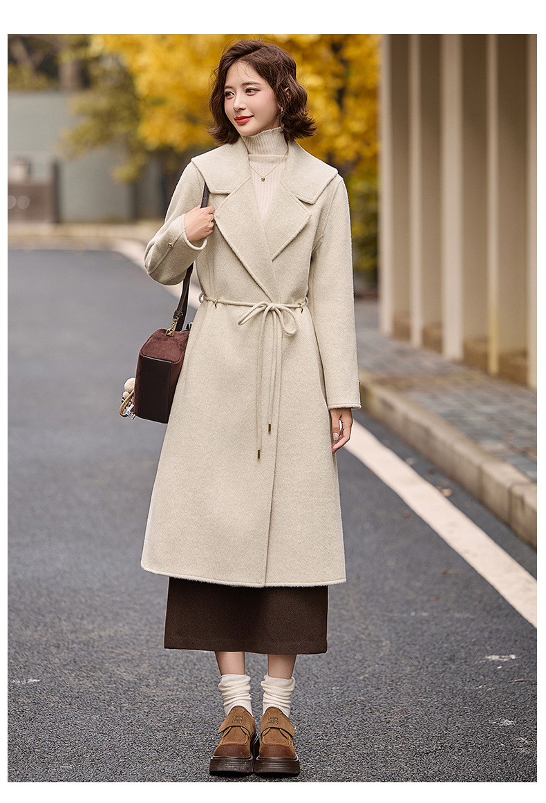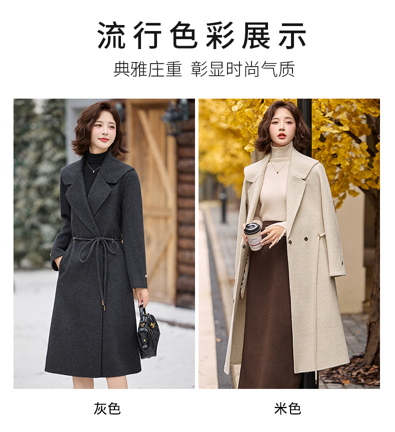 2025秋冬气质大翻领暗扣门襟系绳收腰双面羊绒大衣HR-MLJL16267